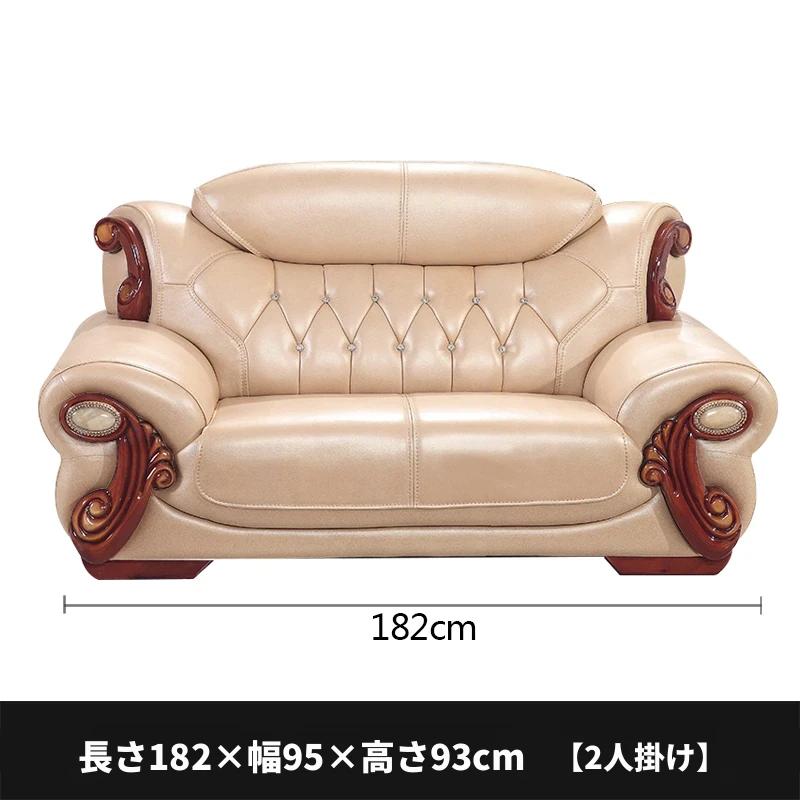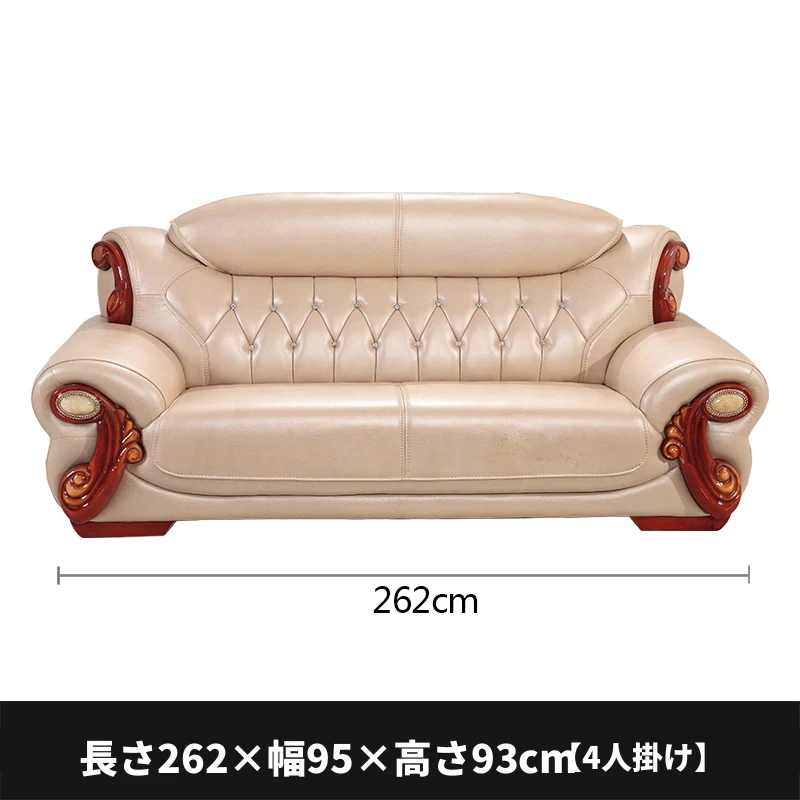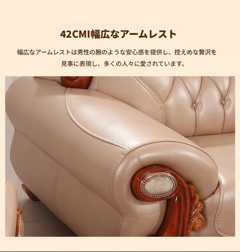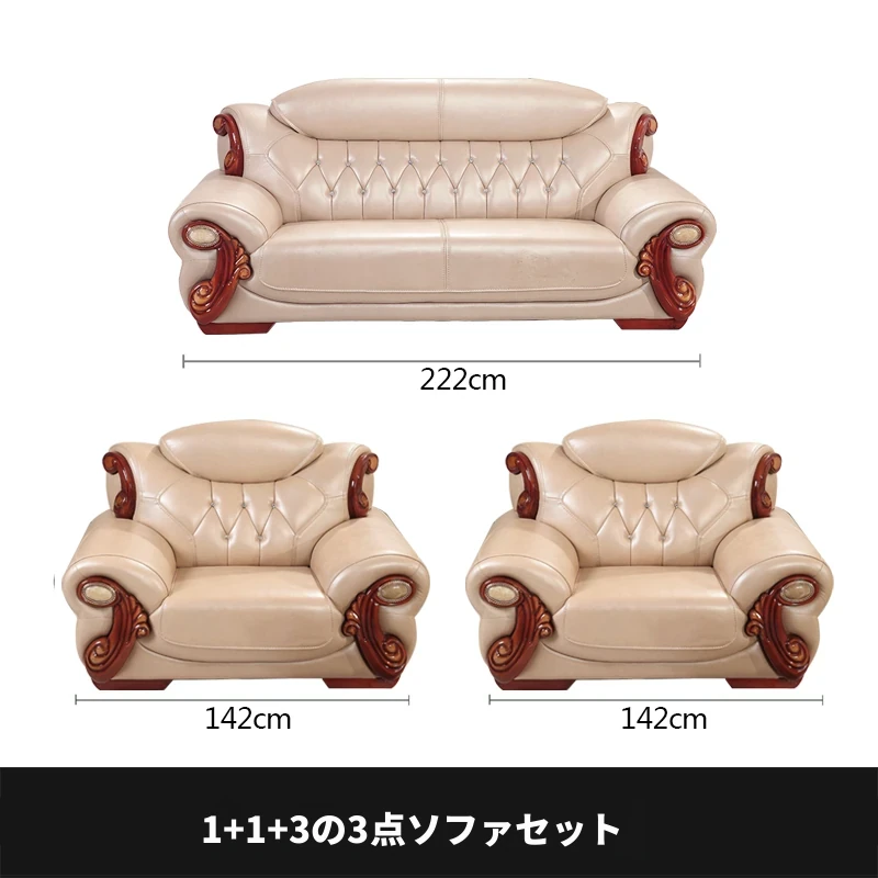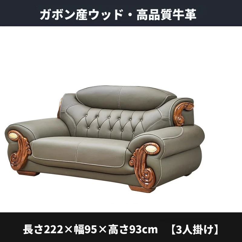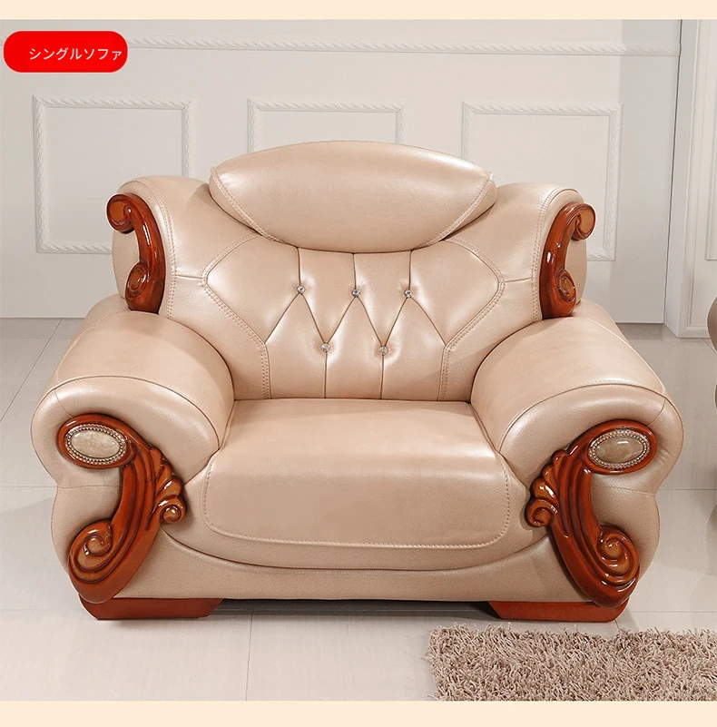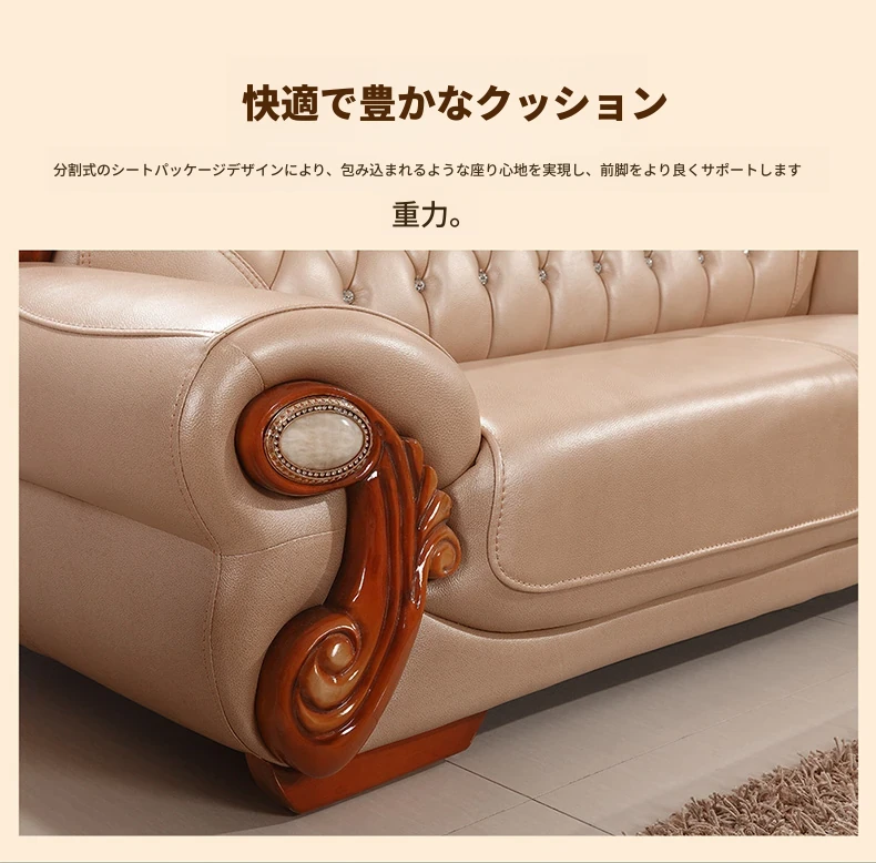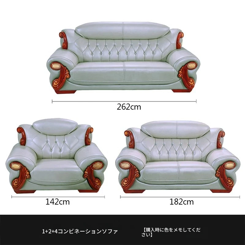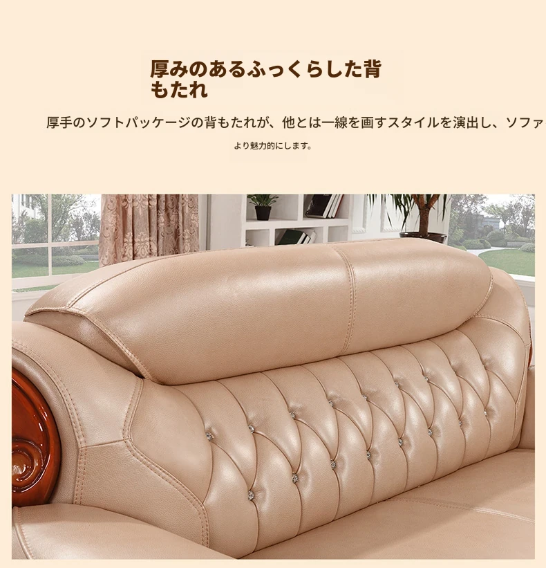 高級感溢れる欧式本革ソファー | 新中式スタイルの実木製リビングルーム用コンビネーション | 大型住宅に最適な豪華なセットで、居心地の良い空間を演出!