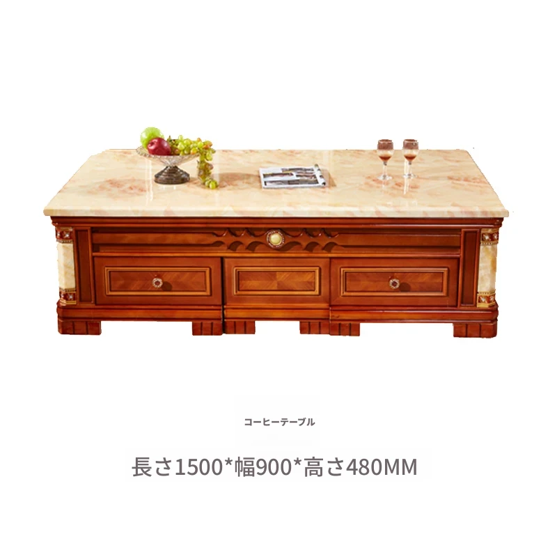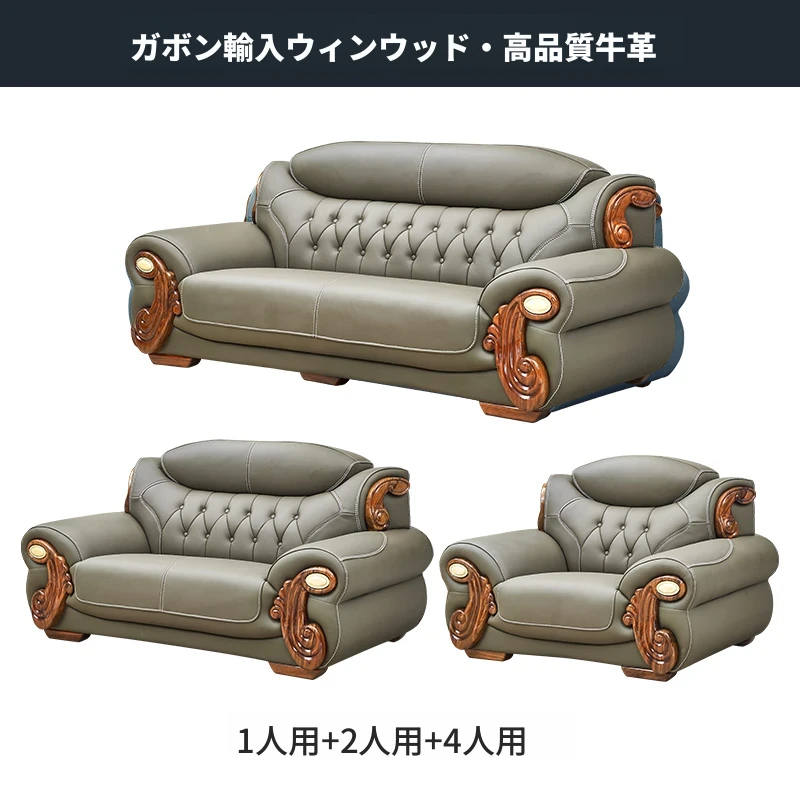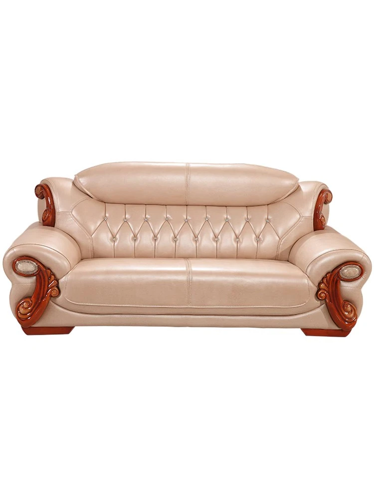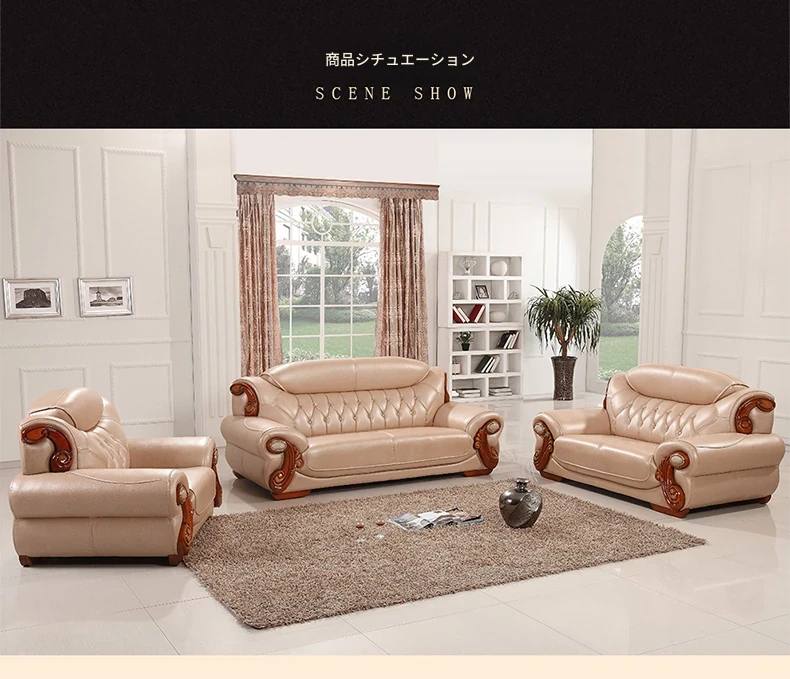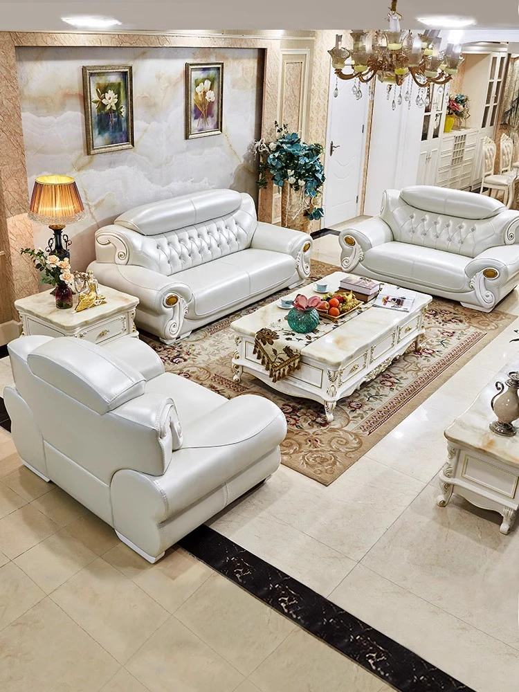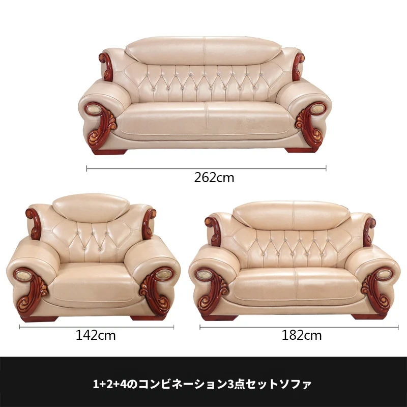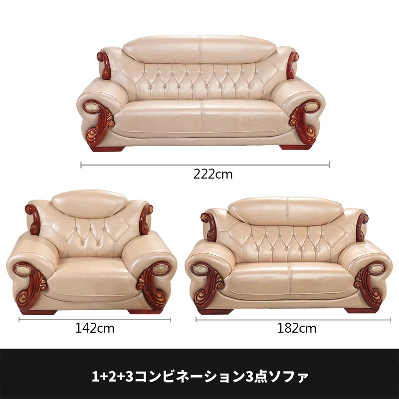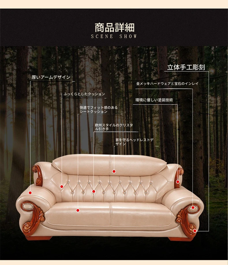 高級感溢れる欧式本革ソファー | 新中式スタイルの実木製リビングルーム用コンビネーション | 大型住宅に最適な豪華なセットで、居心地の良い空間を演出!