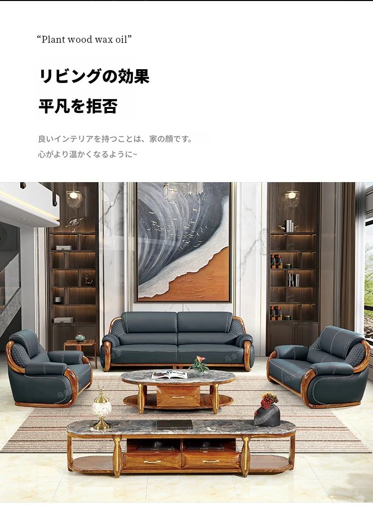 高級新中式ソファー ウーキン材の無垢材使用!リビングにぴったりな広々としたデザインで、別荘や豪邸、クラブハウスにも最適。モダンでシンプルなスタイルが魅力の大空間向けソファーです。