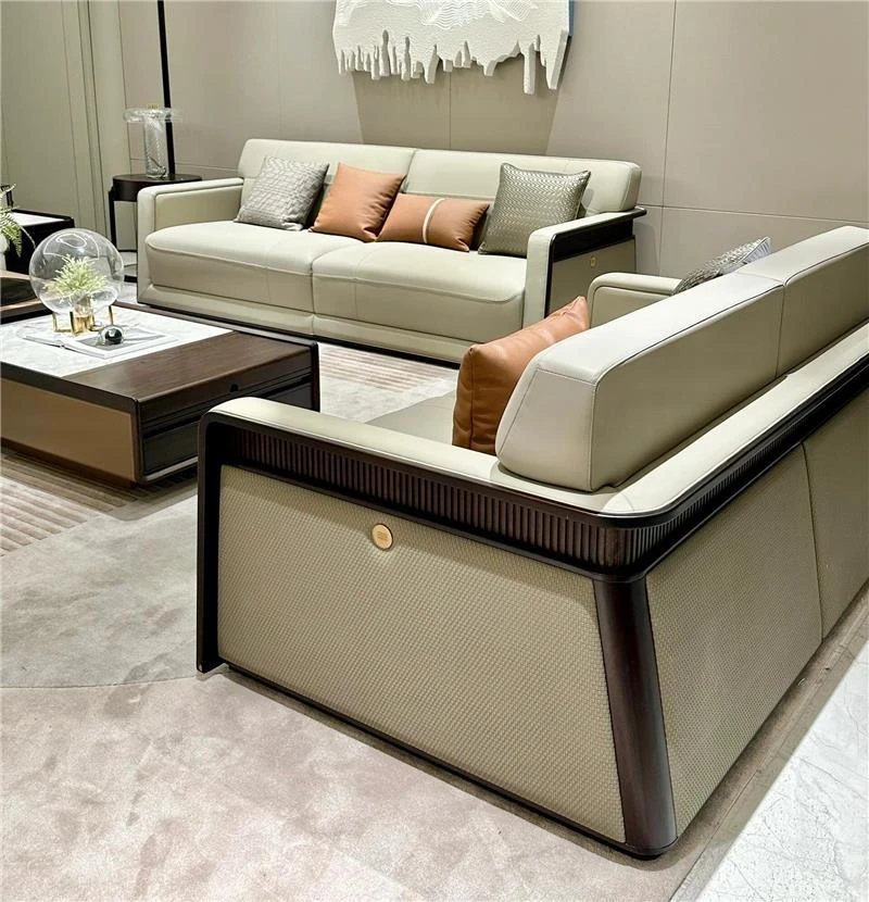 豪華な新中式デザインのウッディなリビングルーム!モダンでシンプルなスタイルの大規模平面別荘、サンプルルームで体験する贅沢なライフスタイル。あなたの理想の住まいがここに!