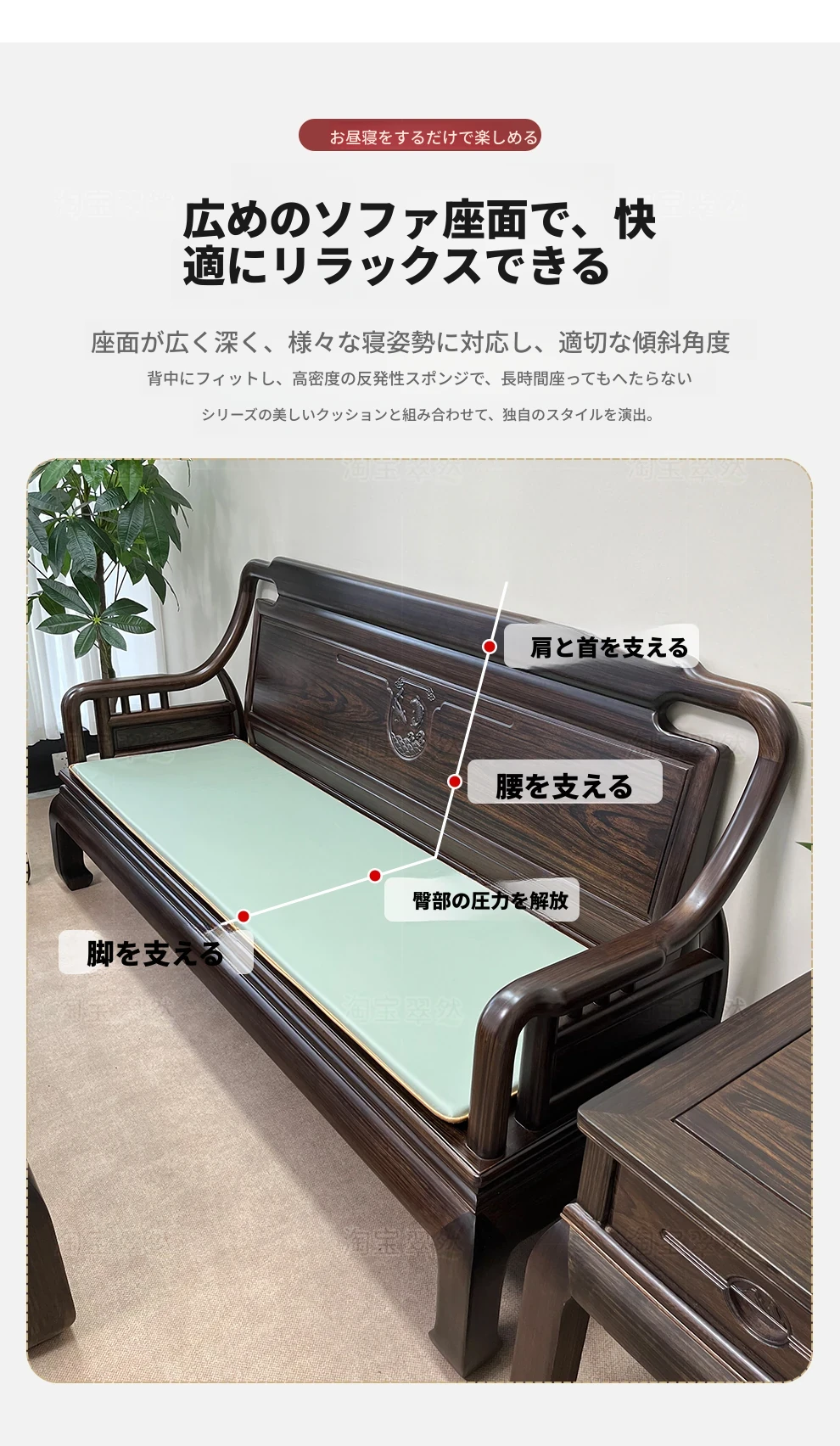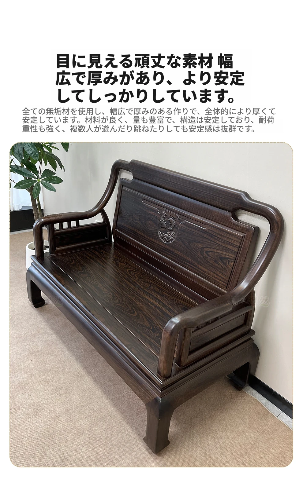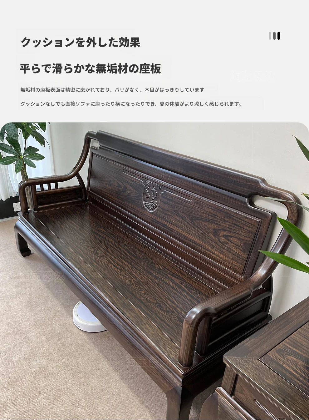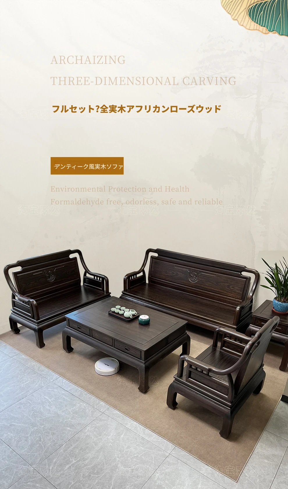 高級アフリカン・ローズウッド製の全木製ソファセット - 冬夏兼用の新中式家具で、リビングルームにぴったりのサイズ!上質なデザインで、どんなお部屋にも調和します。
