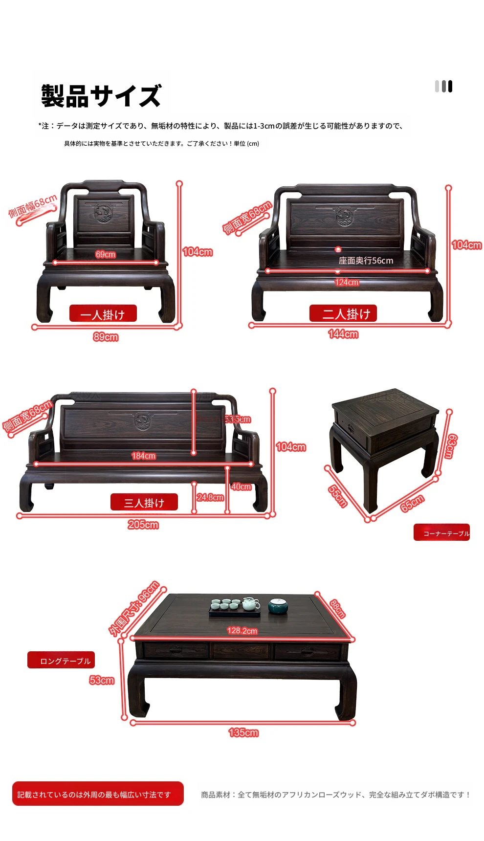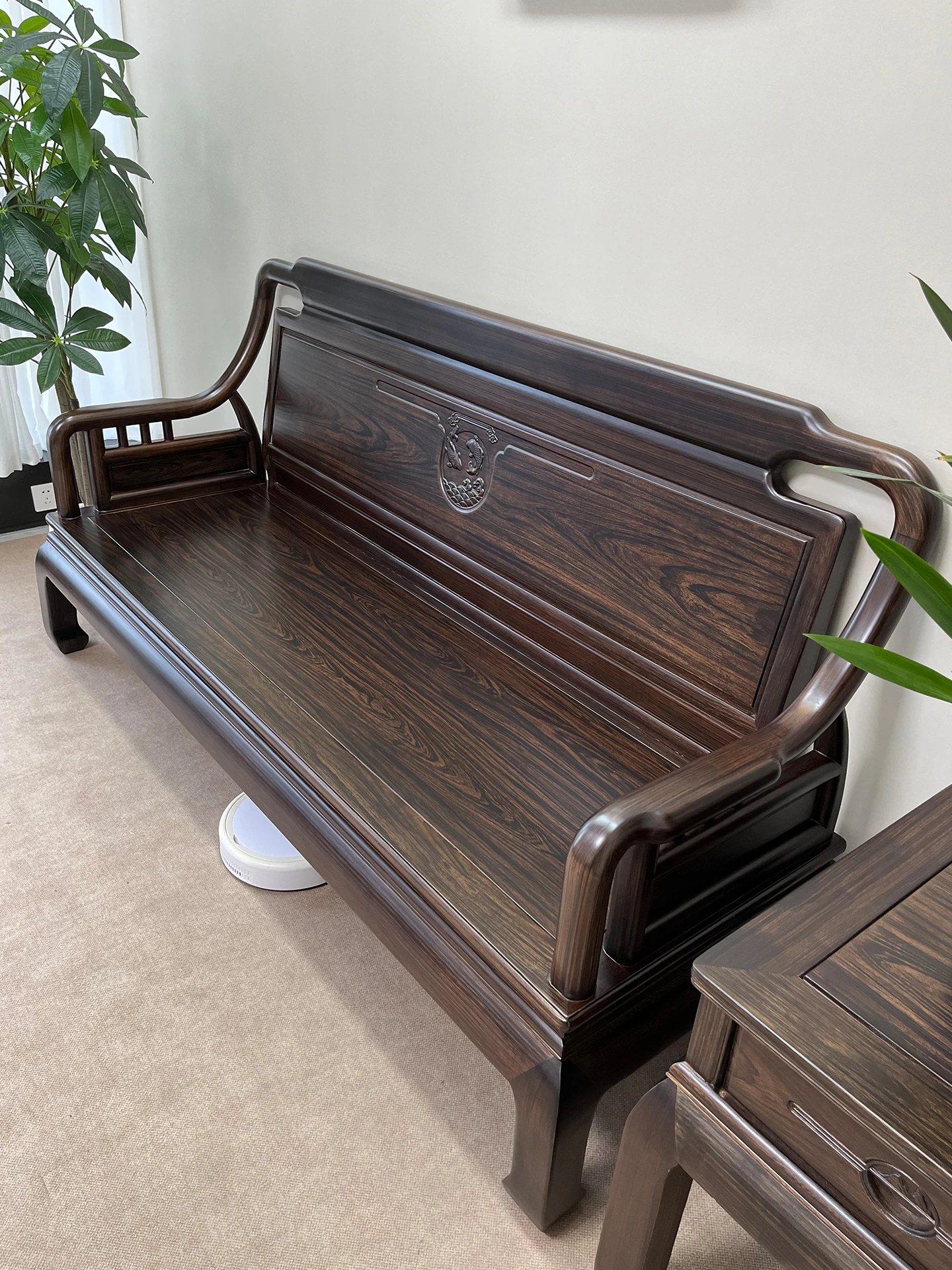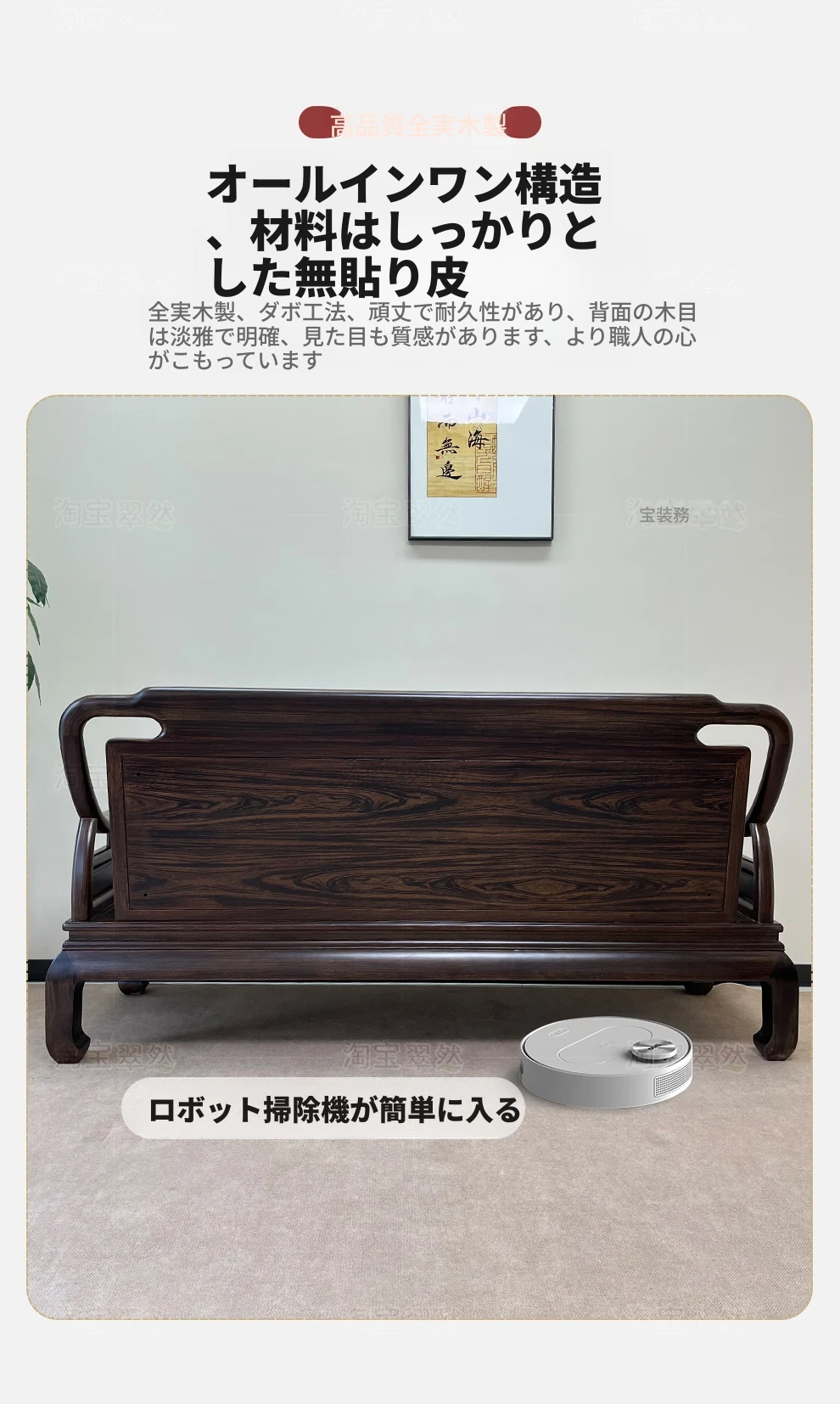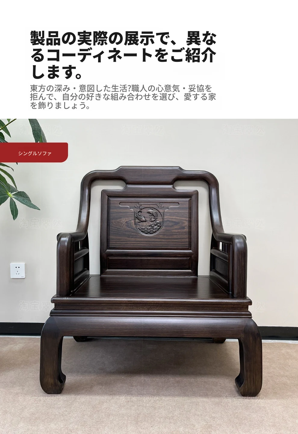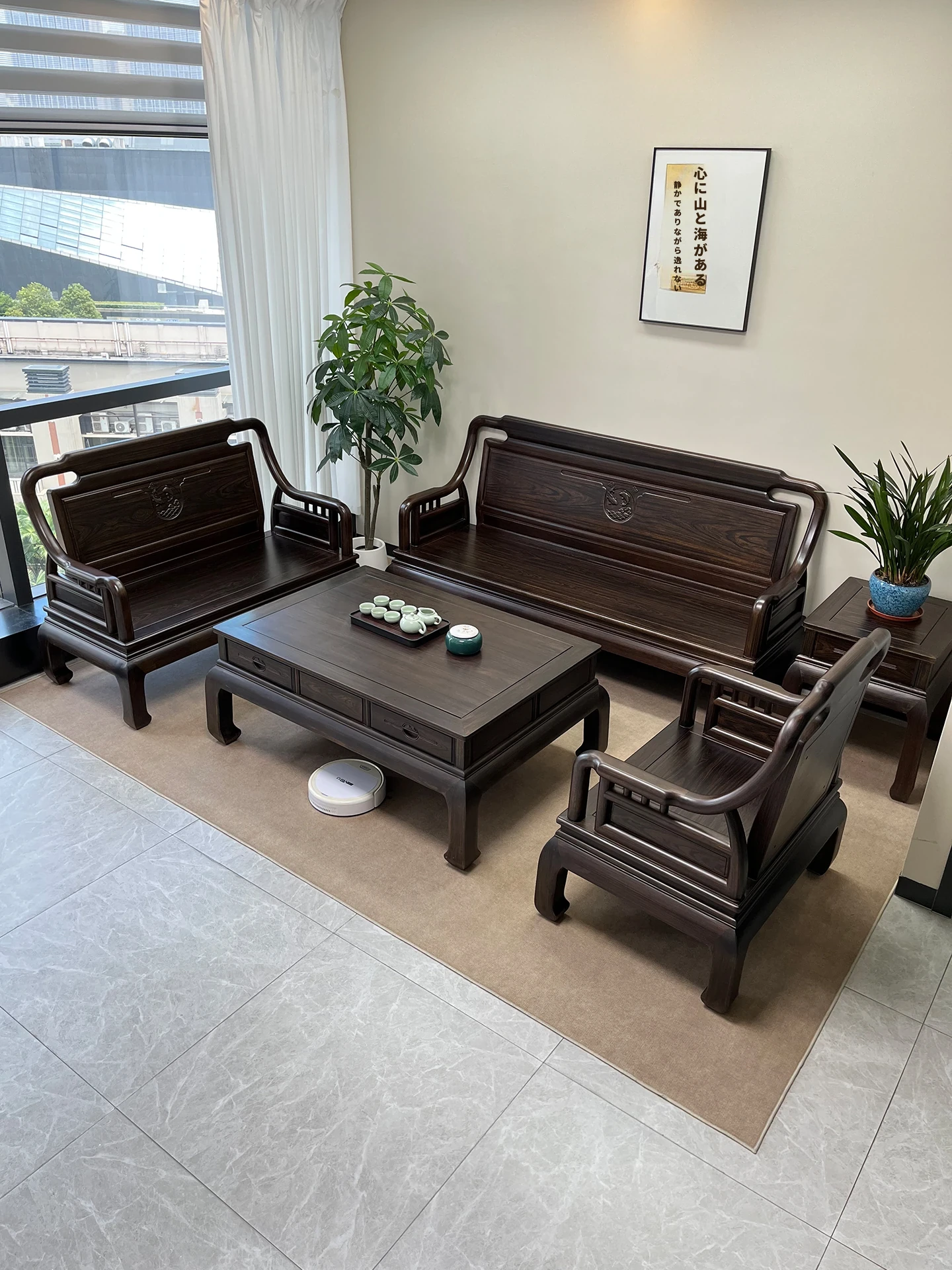 高級アフリカン・ローズウッド製の全木製ソファセット - 冬夏兼用の新中式家具で、リビングルームにぴったりのサイズ!上質なデザインで、どんなお部屋にも調和します。