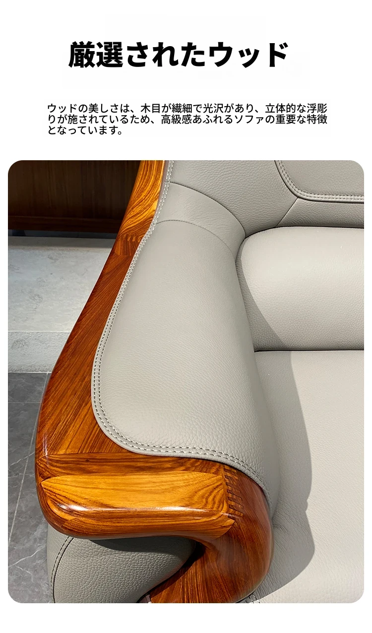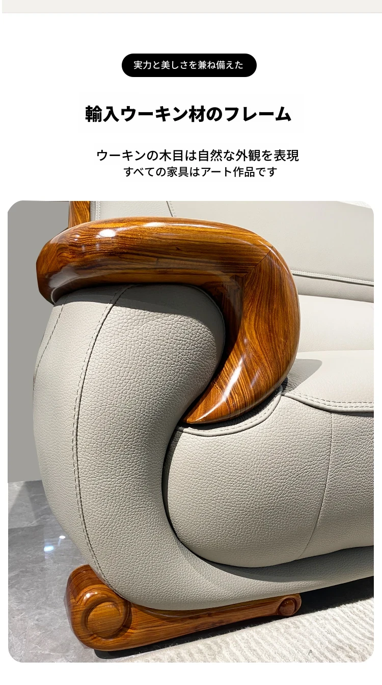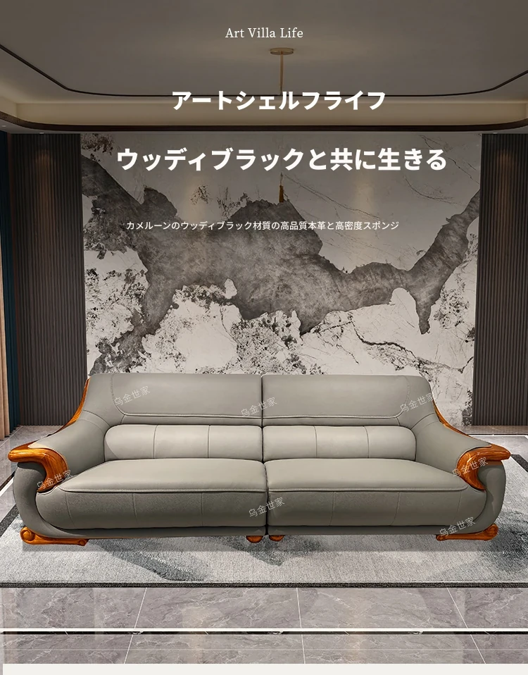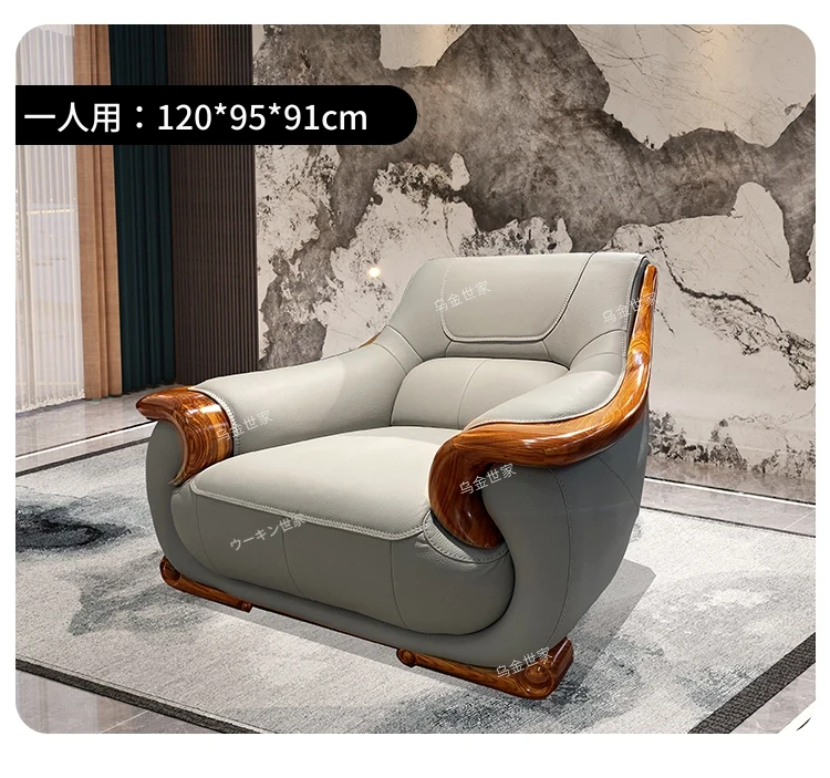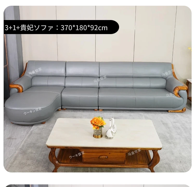 ウッディブラックレザーソファ 軽やかで高級感溢れる別荘向けモダンシンプル123U型リビング用ヨーロッパスタイルの皮革ソファ。優雅な空間を演出し、あなたの生活に特別なひとときを提供します。