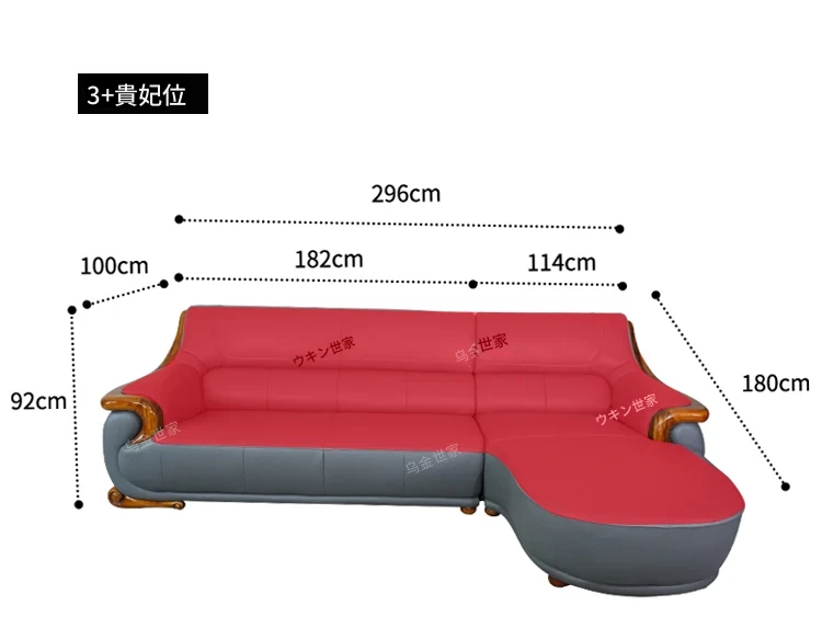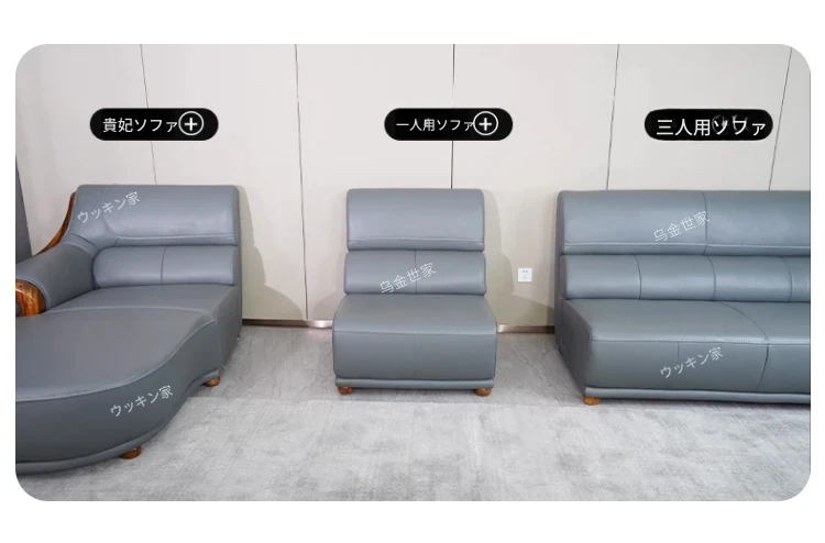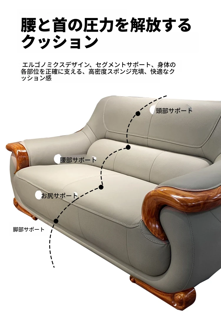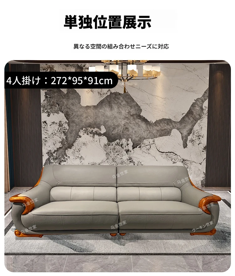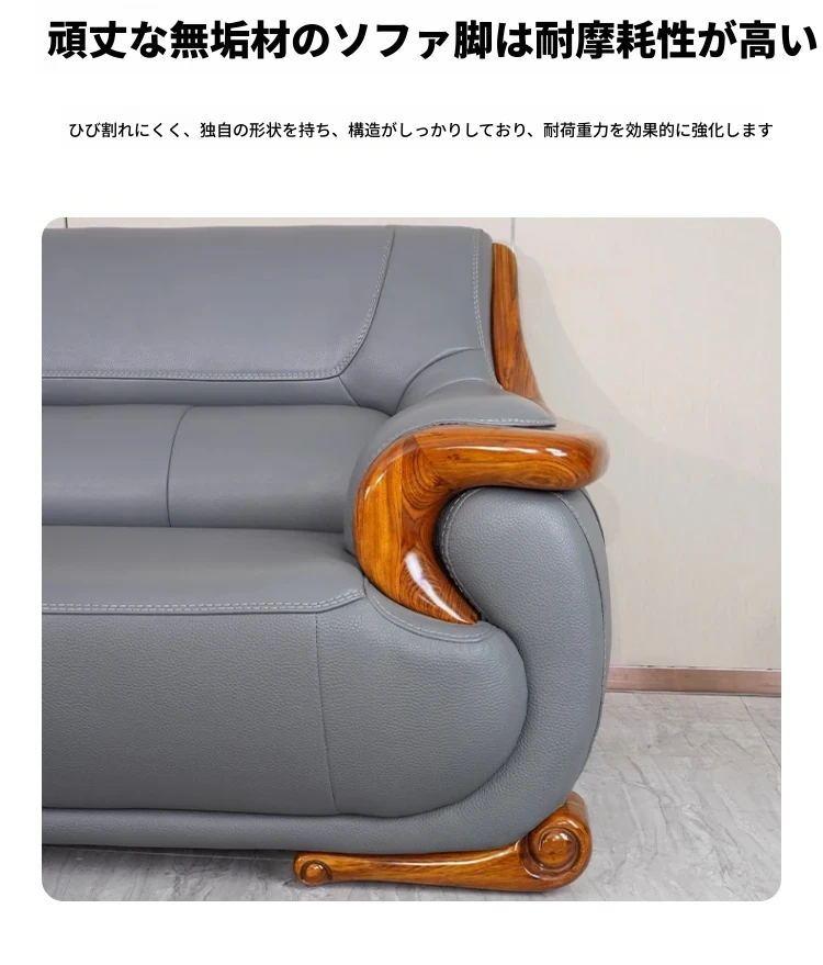 ウッディブラックレザーソファ 軽やかで高級感溢れる別荘向けモダンシンプル123U型リビング用ヨーロッパスタイルの皮革ソファ。優雅な空間を演出し、あなたの生活に特別なひとときを提供します。