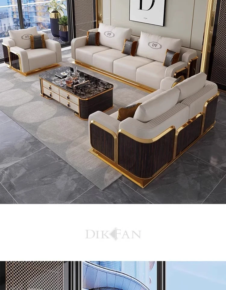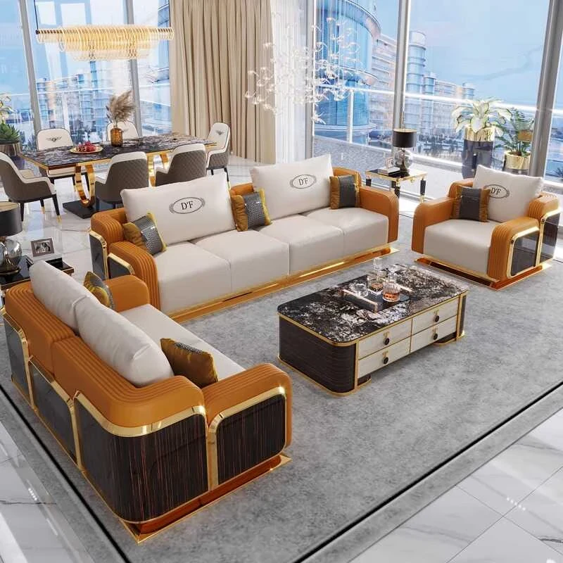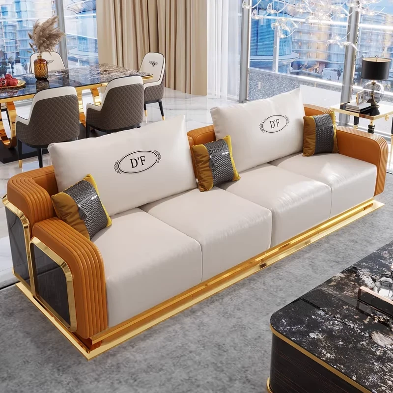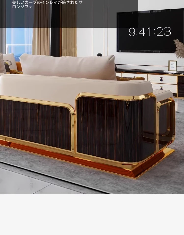 ラグジュアリーな本革ソファ - 高級別荘や大平面向けの洗練されたリビングルーム用家具セット。ベントレーのような豪華さを持つ全室対応の家具コレクションで、贅沢なひとときをお楽しみください。