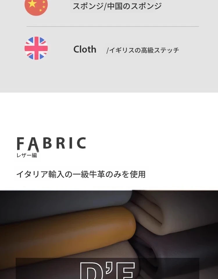 ナノ超細繊維模擬皮革+高密度純海綿【質感は真皮に近い】