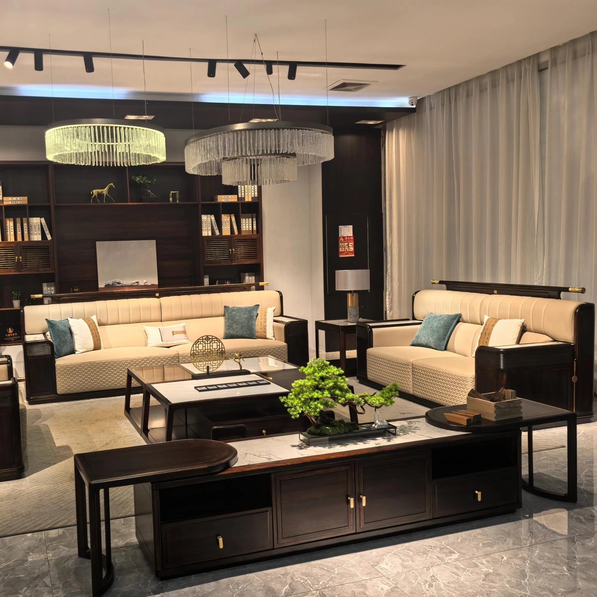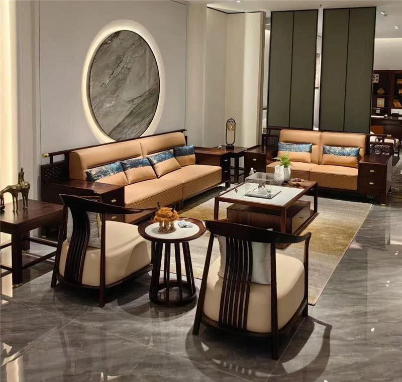 高級新中式ソファー|ウーキン材の無垢材使用|ラグジュアリーなホテルや別荘に最適|広々としたリビングルームにぴったりのデザイン|大規模物件にも対応|上質な空間を演出します!