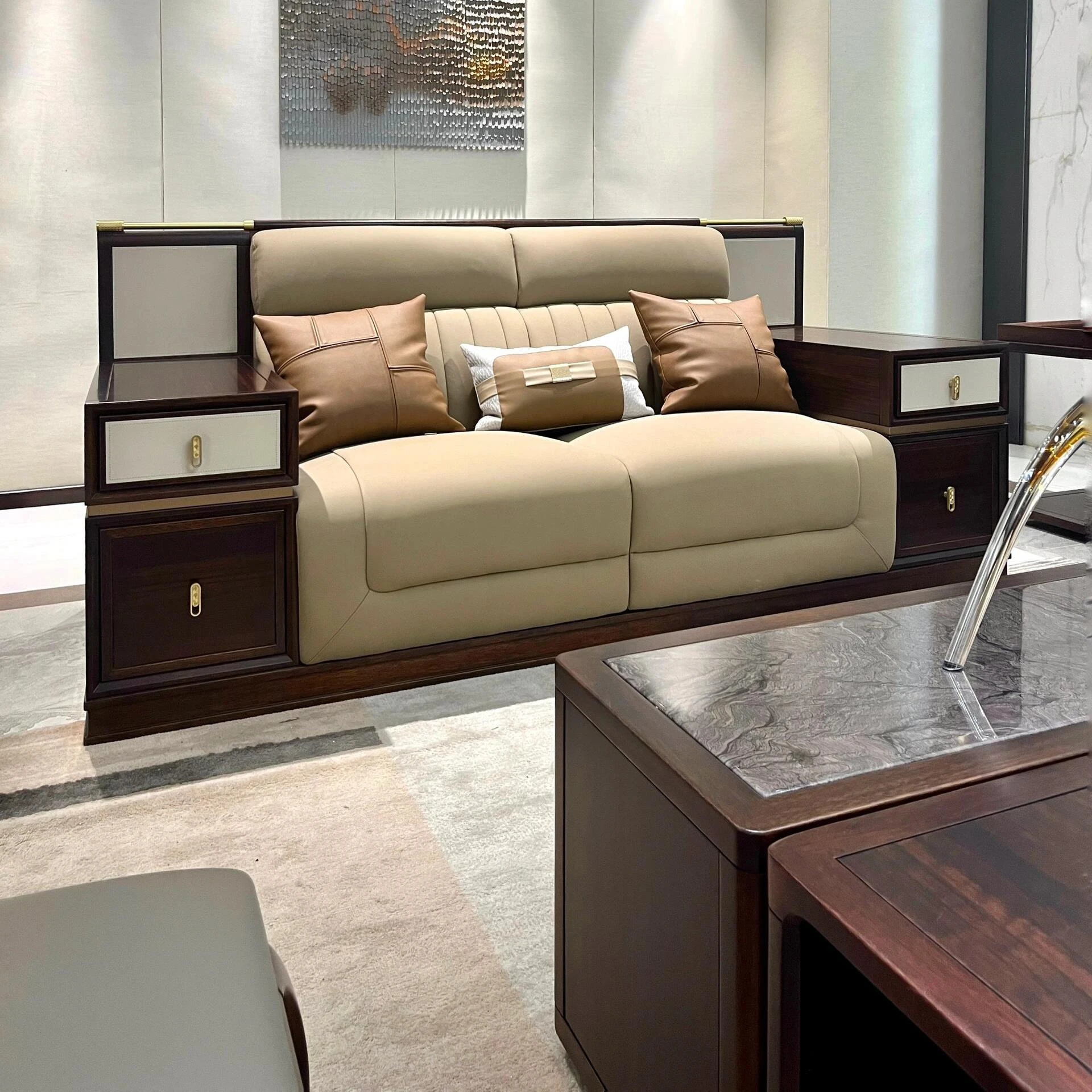 新中式デザインのイタリアンウォールナット製ソファ・カウチ、侘び寂びの風合いを持つローハンベッド。現代的でシンプルな民宿やホテルに最適なアイテム。心地よいひとときを演出します。