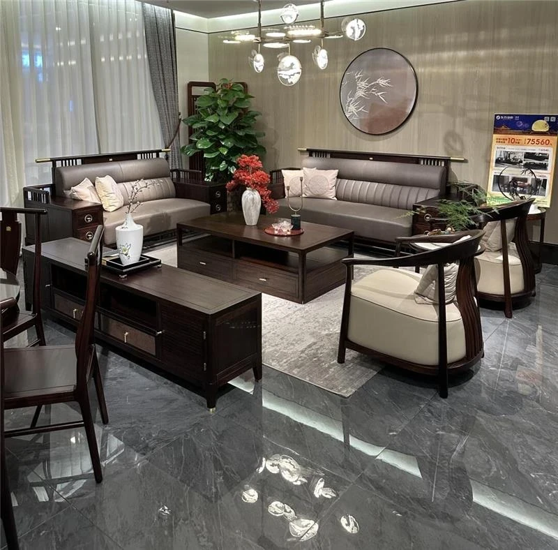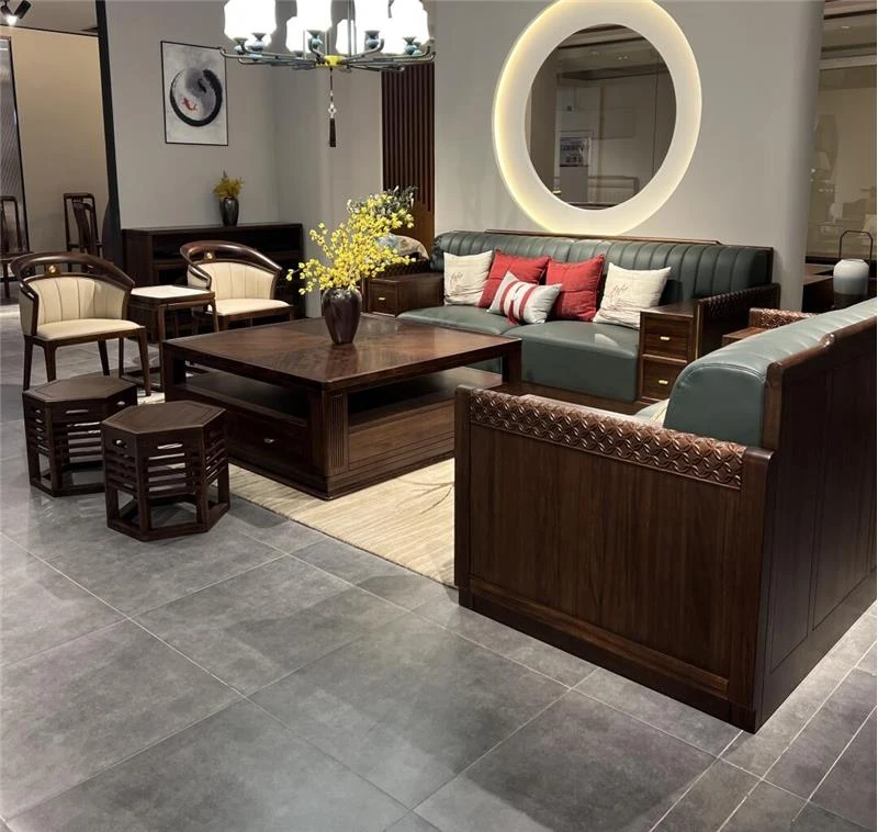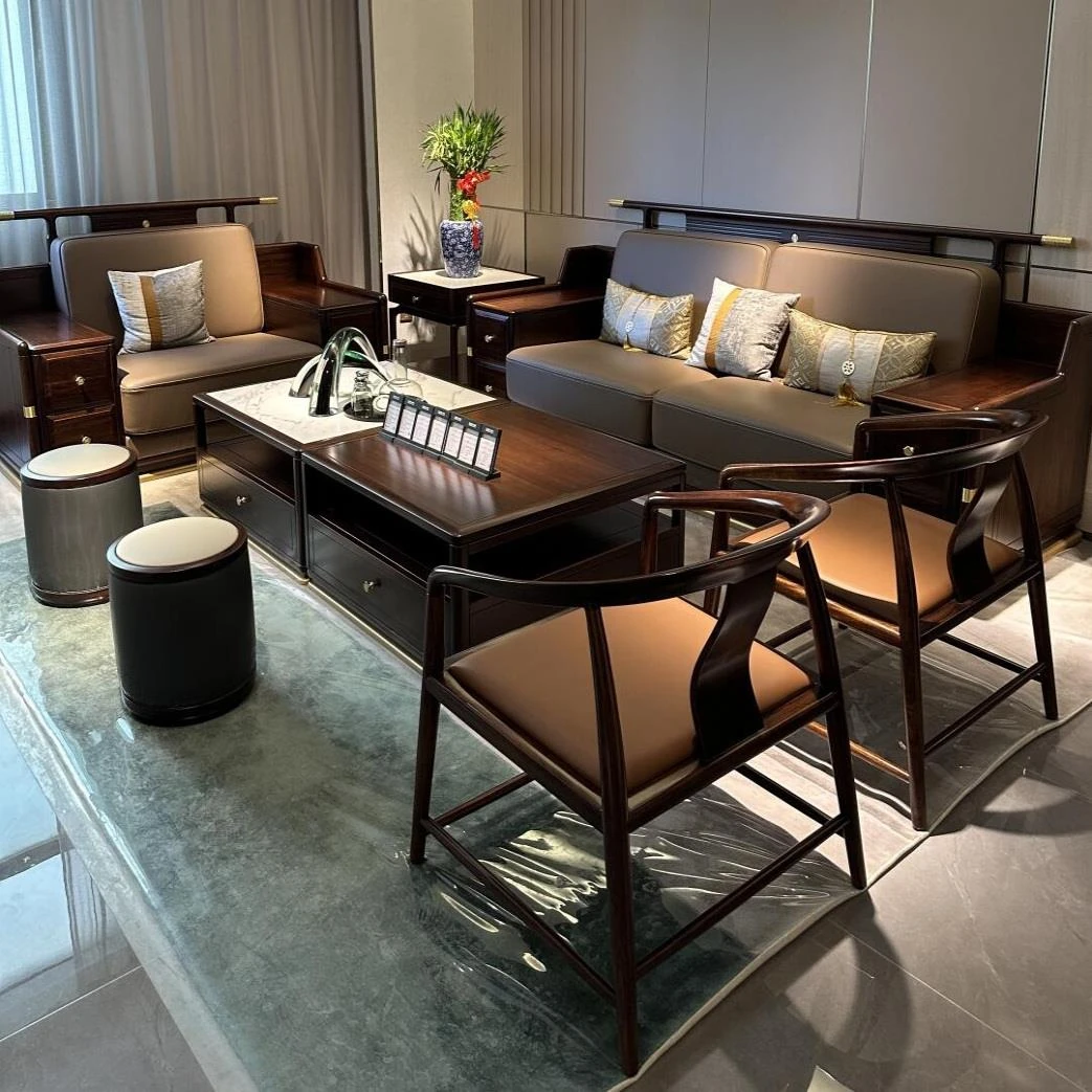 新中式ウッドブラックソファー|高級別荘・ホテルラウンジにぴったりのモダンデザイン|広々としたリビングに最適な贅沢な実木製|高端大户型向けの洗練されたおしゃれ家具