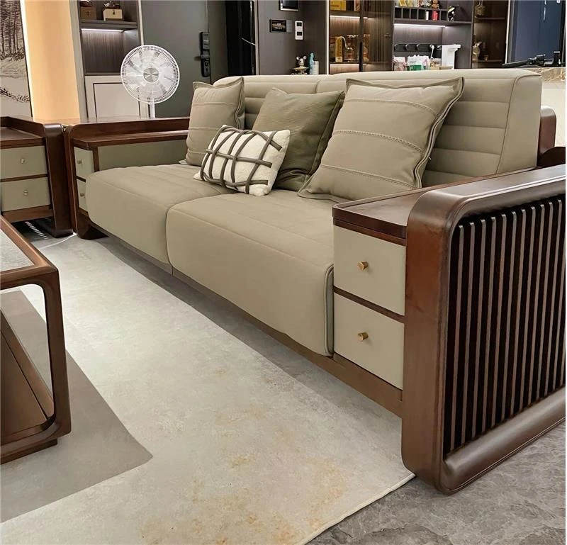 大連華豊公式フラッグシップ店 新中式くるみの木製ソファ 冬夏両用 家庭用リビング彫刻デザインで贅沢なひと時を!