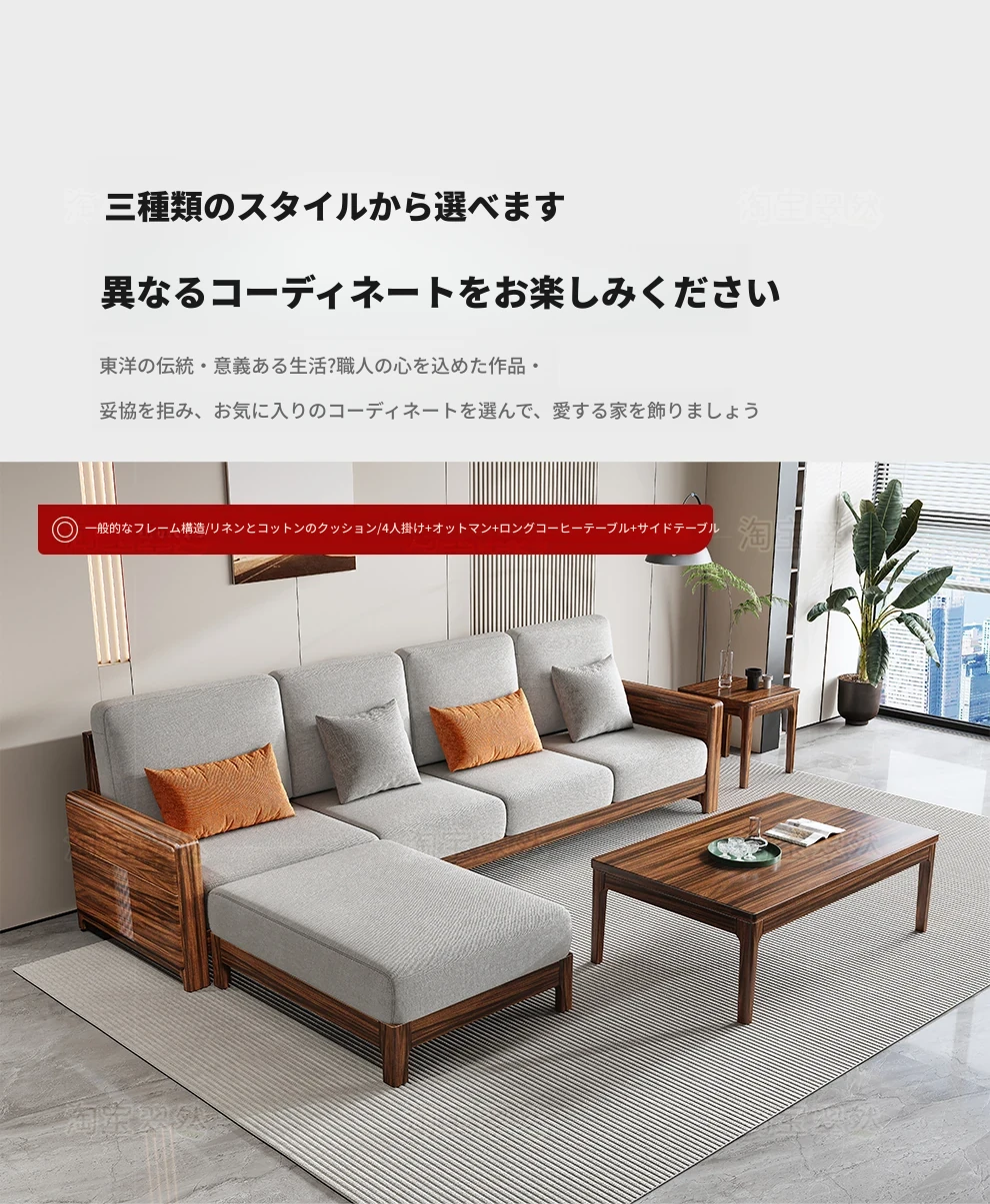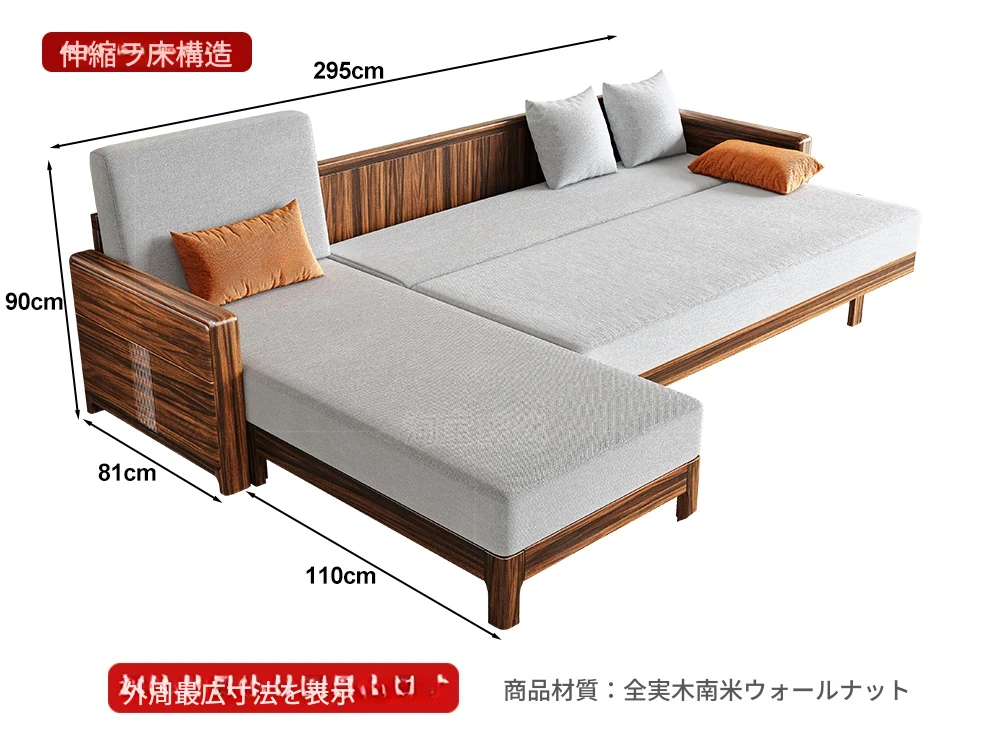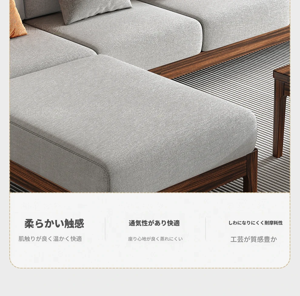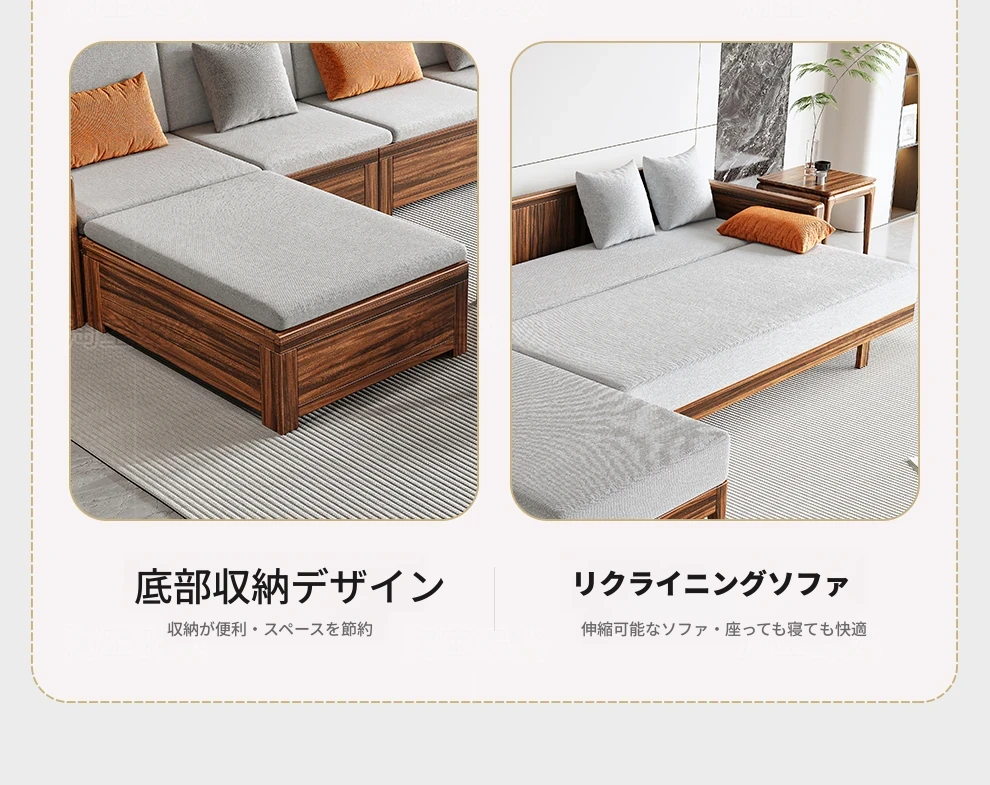 高級南米クルミ無垢材ソファ - リビングに最適な小型デザイン、引き出し付きで便利な収納スペースも!新中式スタイルの上質な家具で快適な空間を演出。