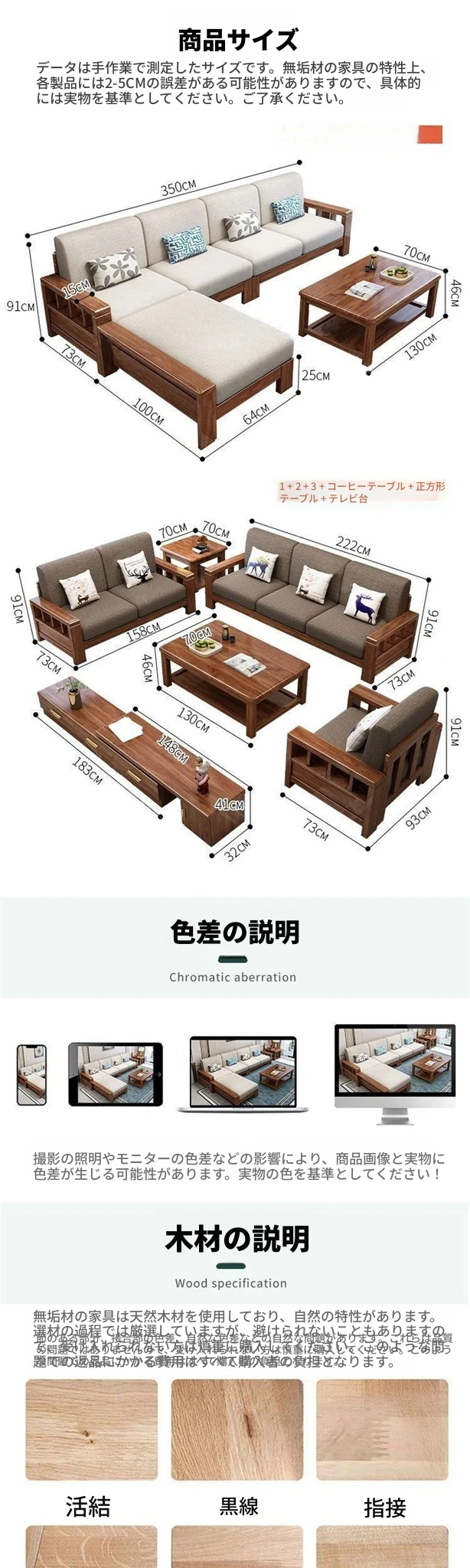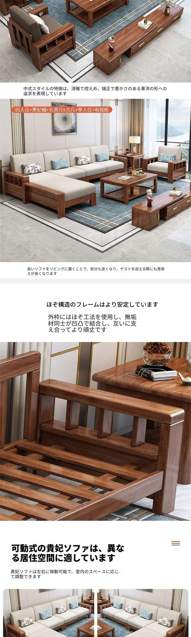 4人掛けソファ+貴妃+テーブル+ティーキャビネット+テレビボード/