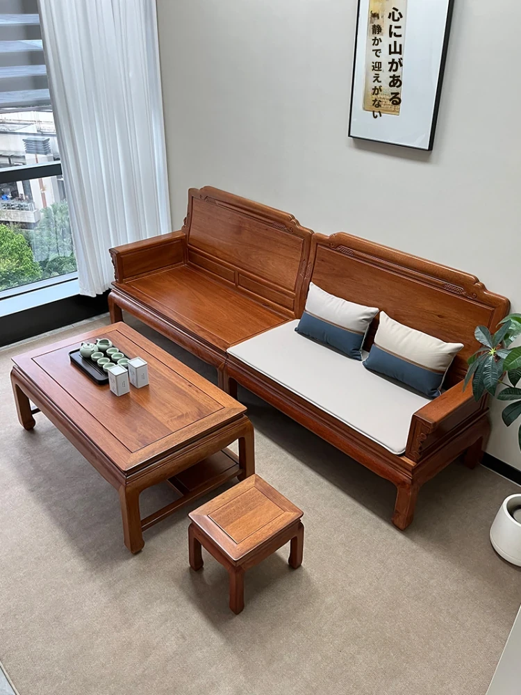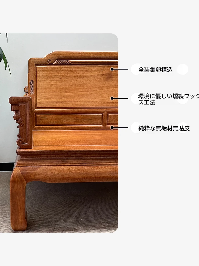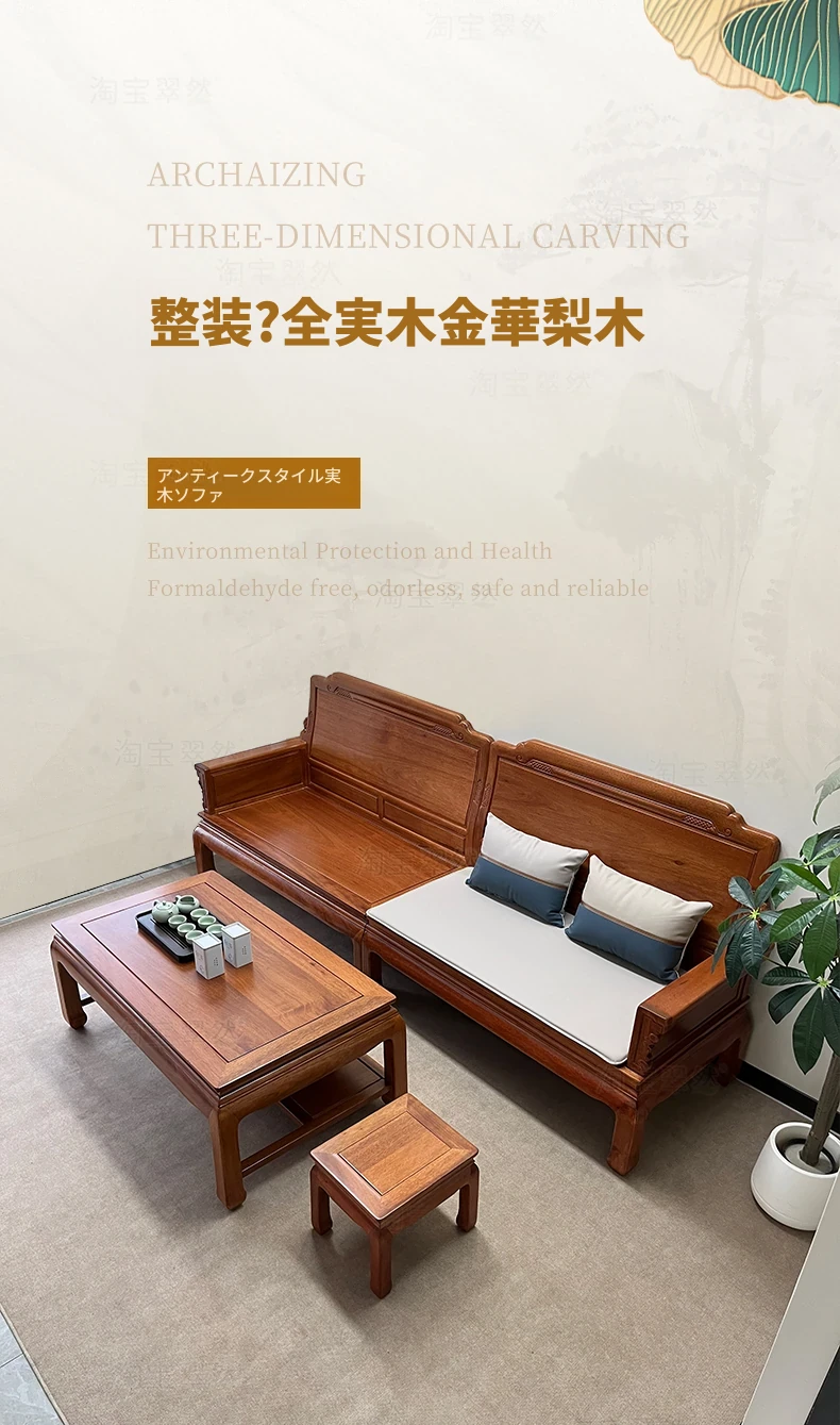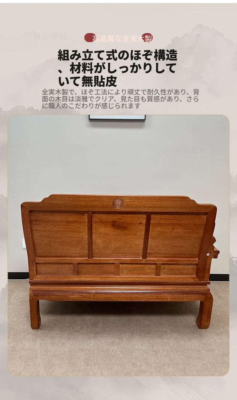 高級金花梨無垢木製ソファ - コンパクトな小型リビングに最適な古典的な全格木製の中華風家具。スタイリッシュで快適、優雅なデザインがあなたの空間を引き立てます!