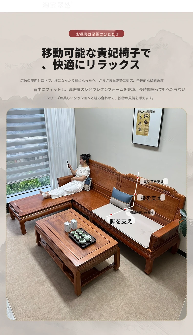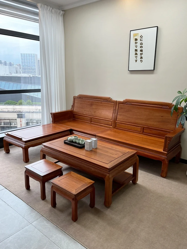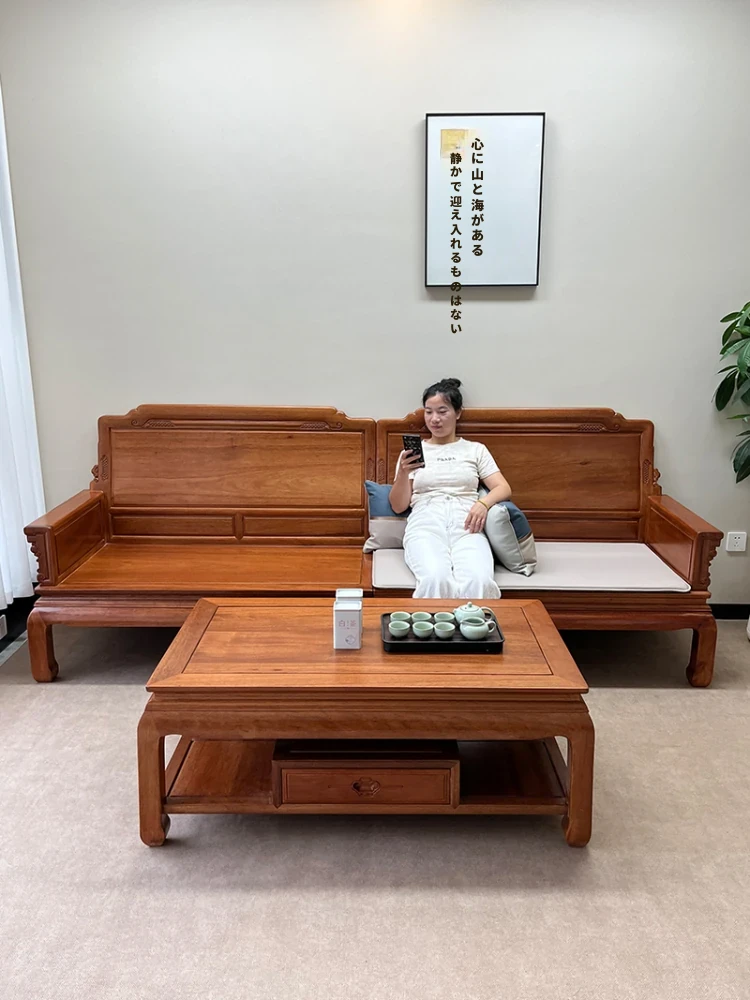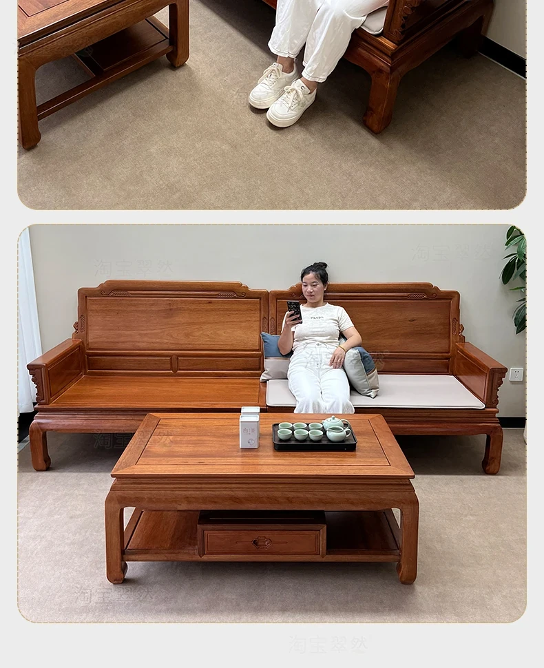 高級金花梨無垢木製ソファ - コンパクトな小型リビングに最適な古典的な全格木製の中華風家具。スタイリッシュで快適、優雅なデザインがあなたの空間を引き立てます!