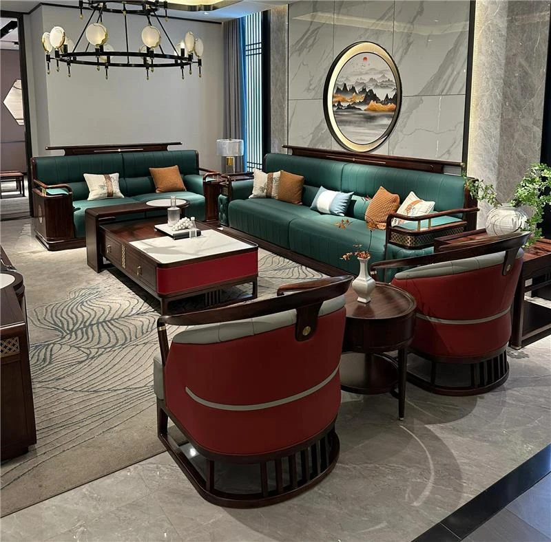 豪華なモデルルーム!新中式ウッド調のウッディなソファで、モダンミニマルな寝室を演出。ビラや豪華なフラットで特別なひとときを。あなたの理想の空間を実現します!
