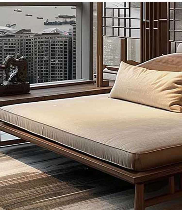 新中式スタイルの黒胡桃とホワイトアッシュの無垢材を使用した禅の雰囲気漂う貴妃ソファチェア。オフィス、ホテル、民宿に最適なリラックス空間を演出します。
