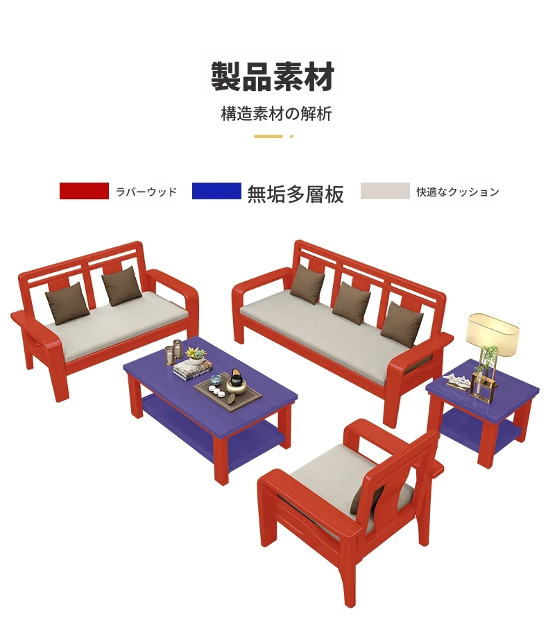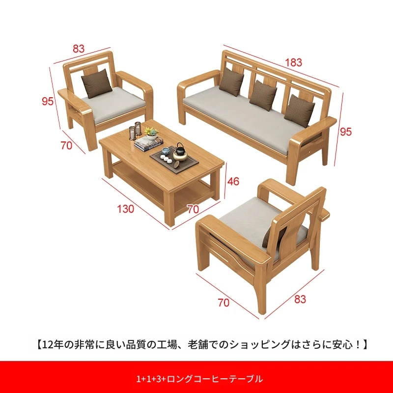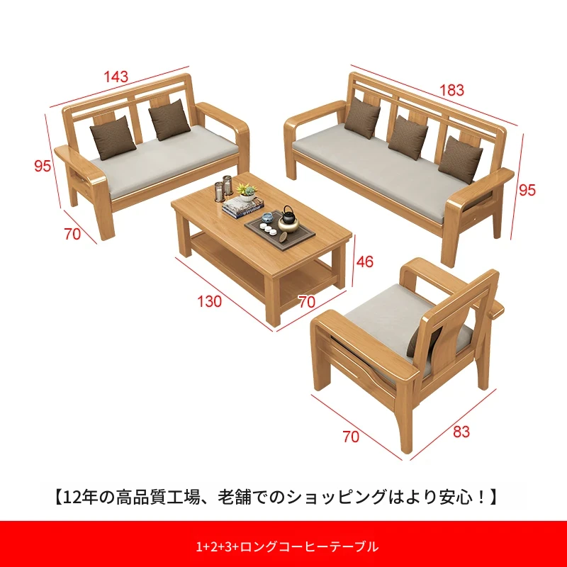 トリプルソファ+ロングコーヒーテーブル(クッションと腰枕付き)