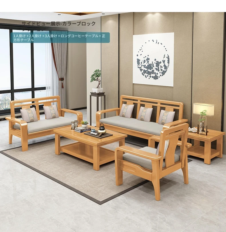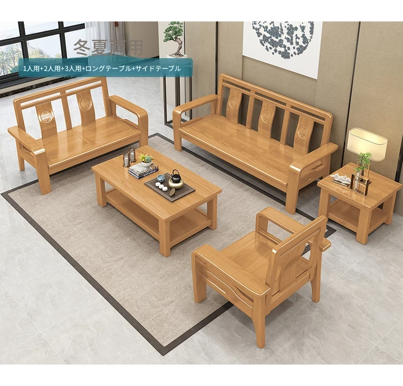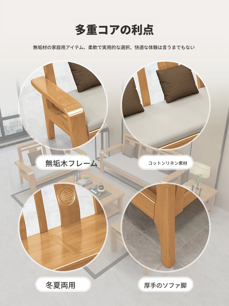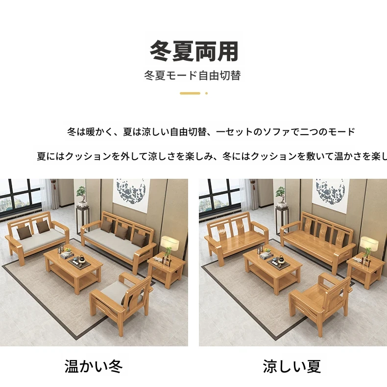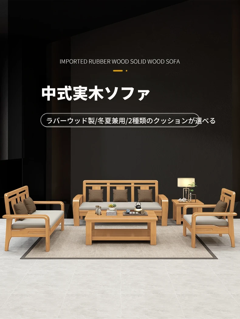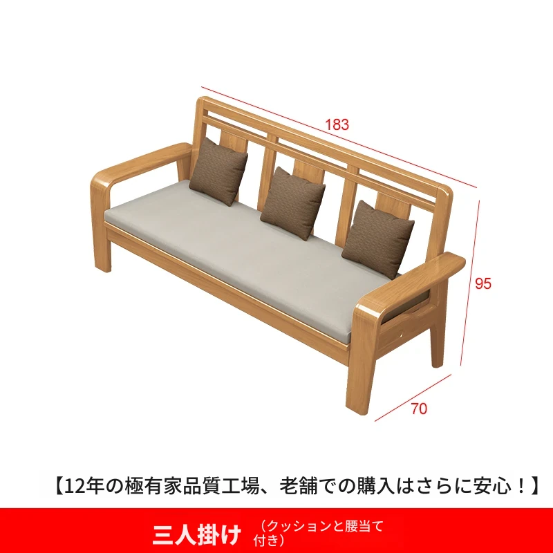 現代中式天然木製ソファー|冬夏兼用・シンプルデザイン・3人掛け|小さな郊外のリビングにぴったりなレトロな硬い座面の家具!快適な空間を演出します。
