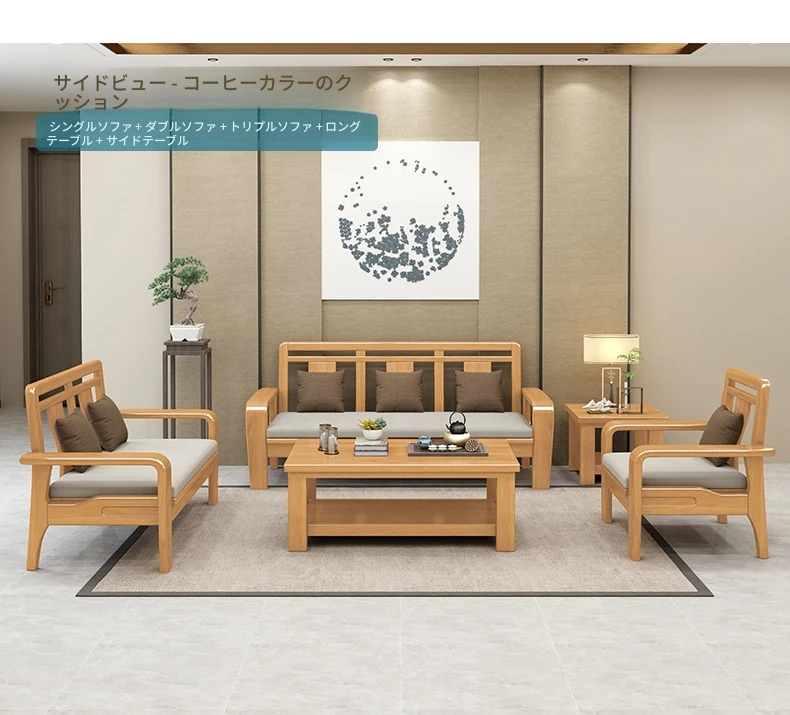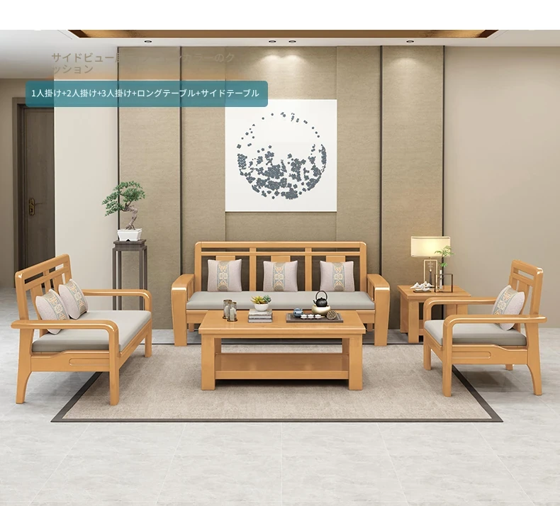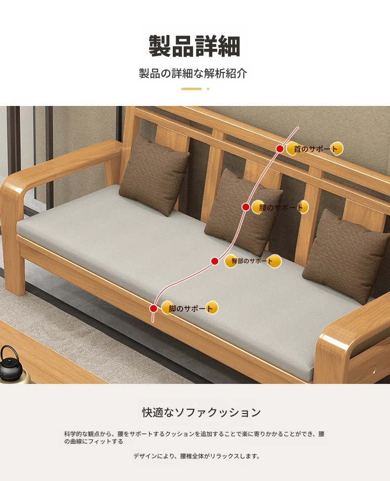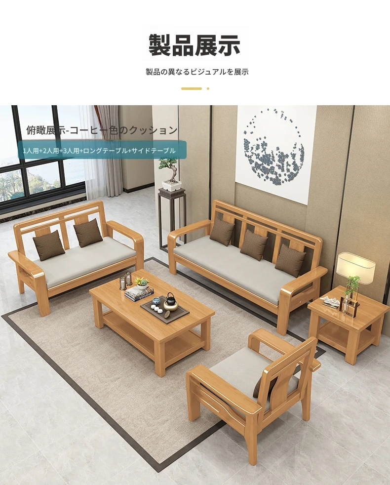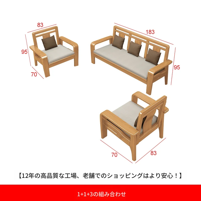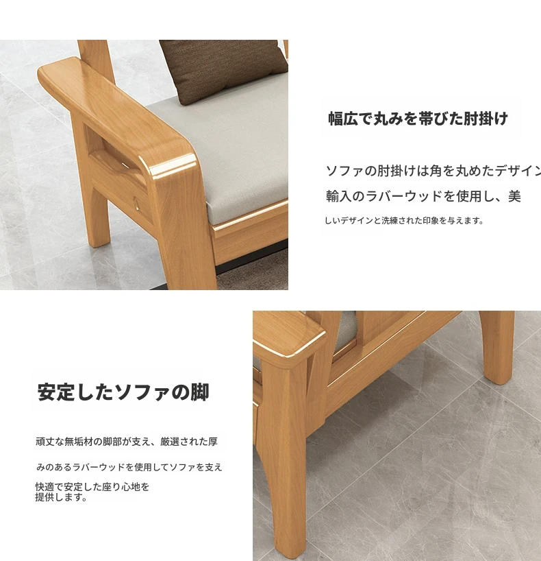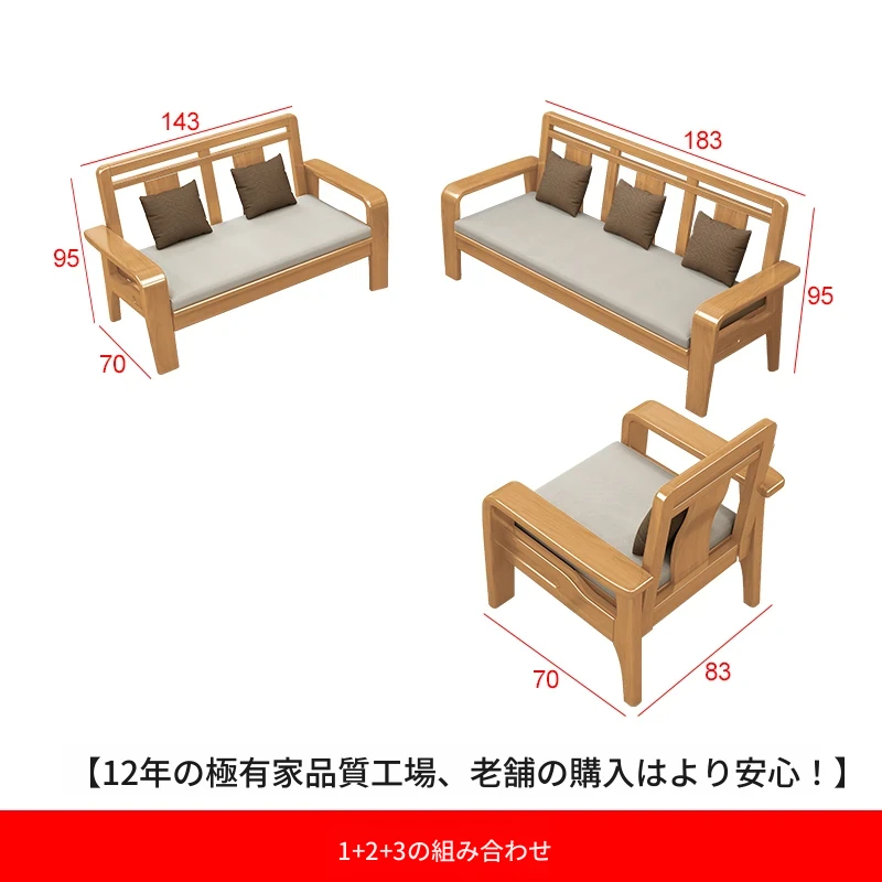 現代中式天然木製ソファー|冬夏兼用・シンプルデザイン・3人掛け|小さな郊外のリビングにぴったりなレトロな硬い座面の家具!快適な空間を演出します。