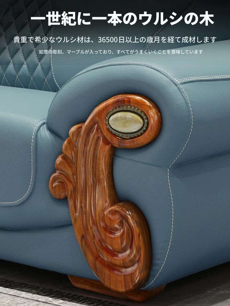 大連華豊公式フラッグシップ店 新中式くるみの木製ソファ 冬夏両用 家庭用リビング彫刻デザインで贅沢なひと時を!
