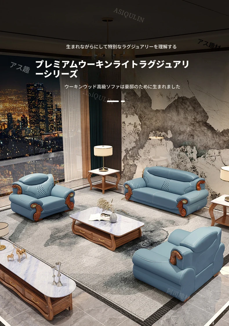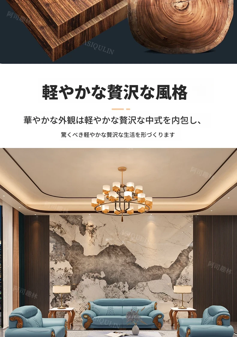 高級新中式ソファー ウーキン材の無垢材使用!リビングにぴったりな広々としたデザインで、別荘や豪邸、クラブハウスにも最適。モダンでシンプルなスタイルが魅力の大空間向けソファーです。