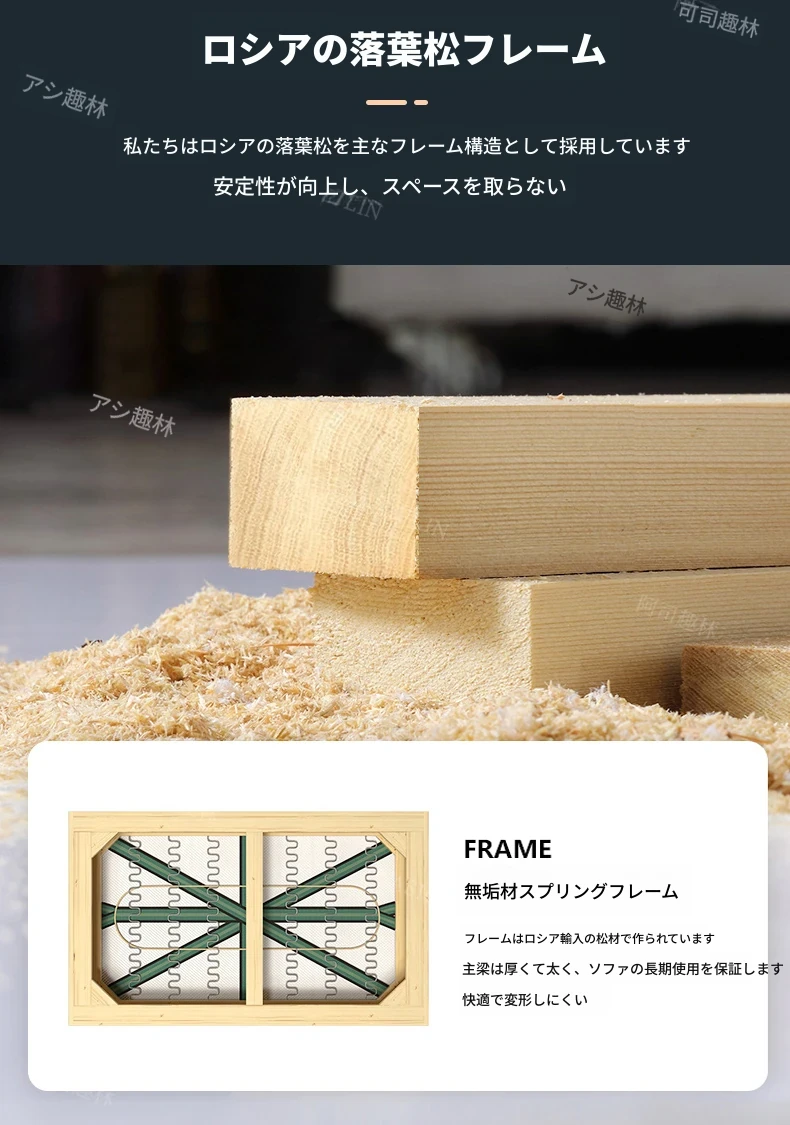 新中式ウッド調のウッディーソファー - ヴィラのリビングに最適!モダンでシンプル、冬夏使える大サイズの禅スタイルソファー。快適なひとときをお届けします。