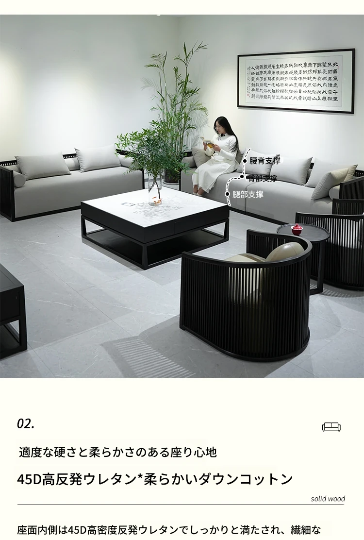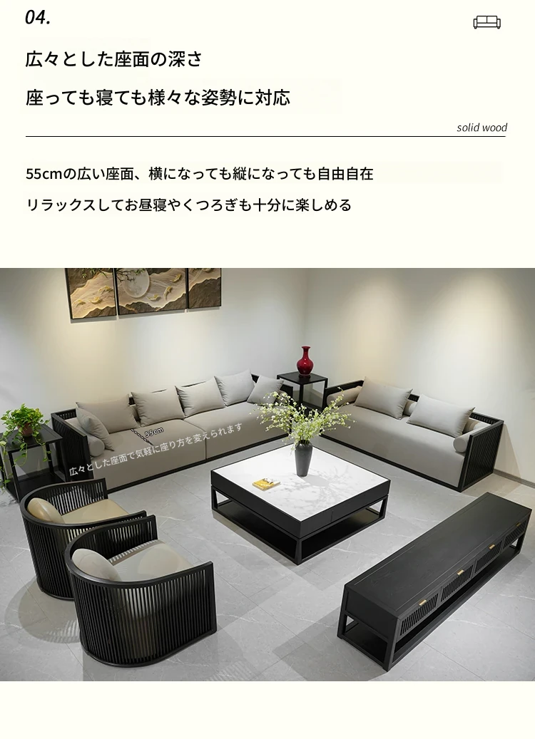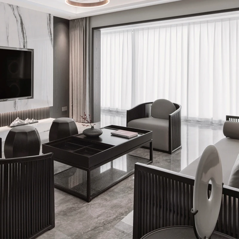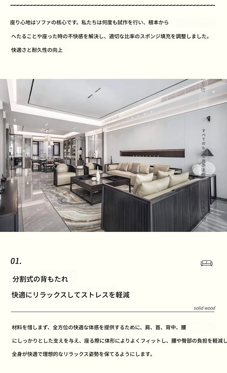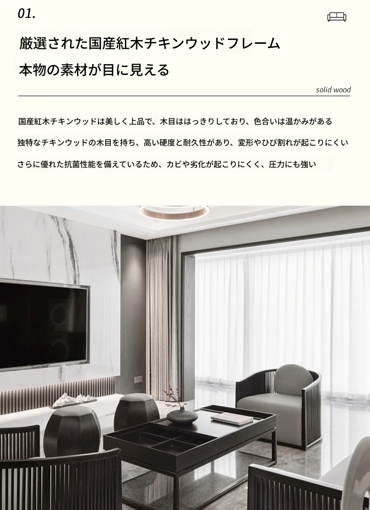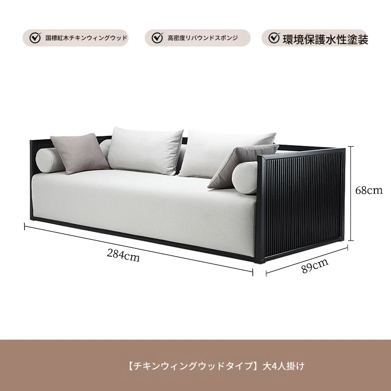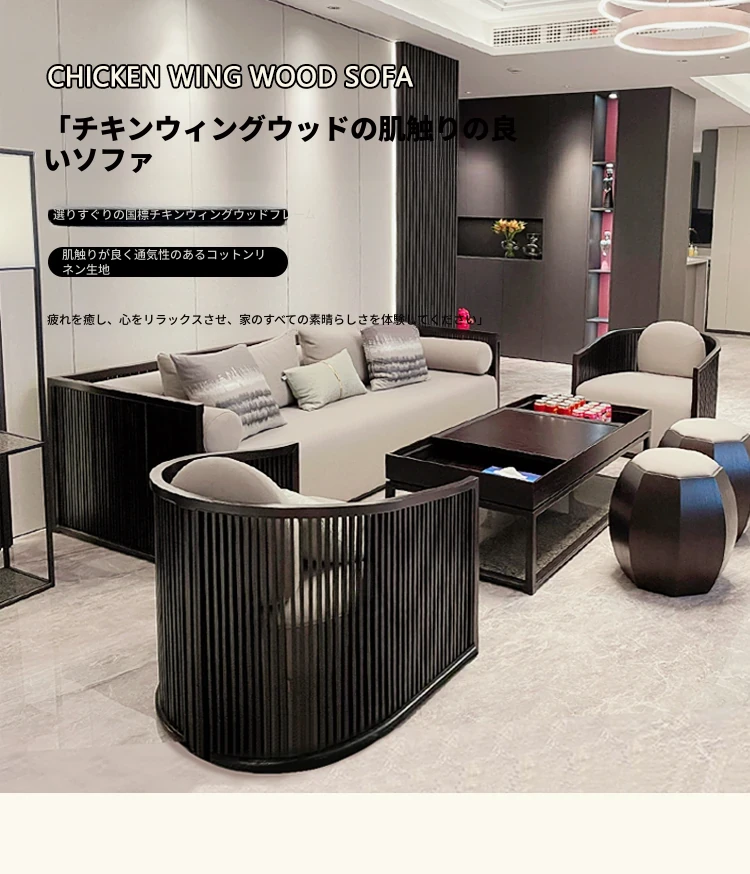 新中式スタイルの高級ソファセット - モダンでシンプルなデザイン、チキンウィングウッド製。別荘や民宿のリビングルームに最適な家具。洗練された雰囲気で、贅沢なひとときを演出します。