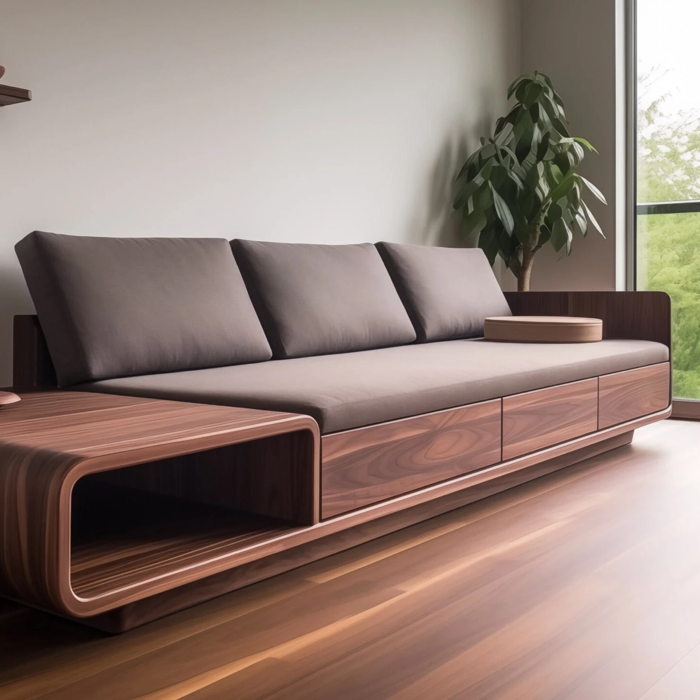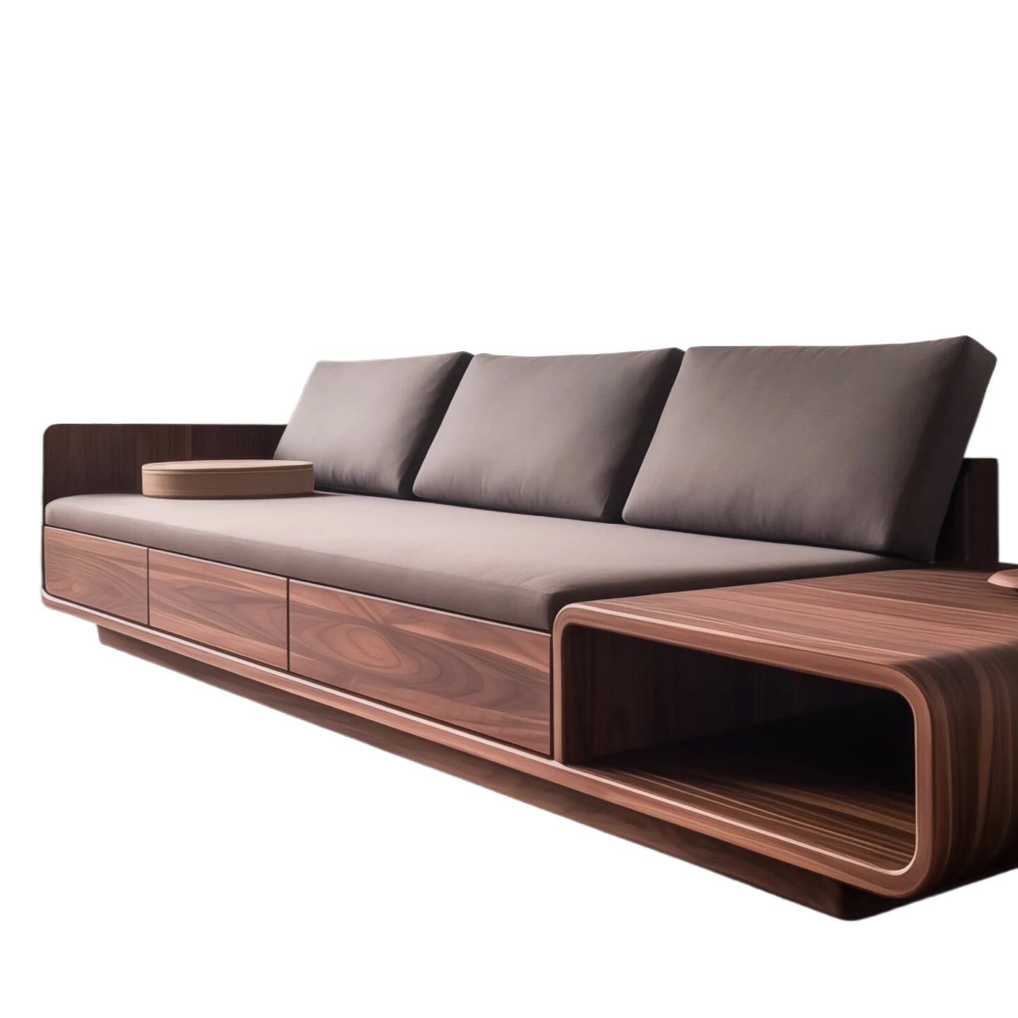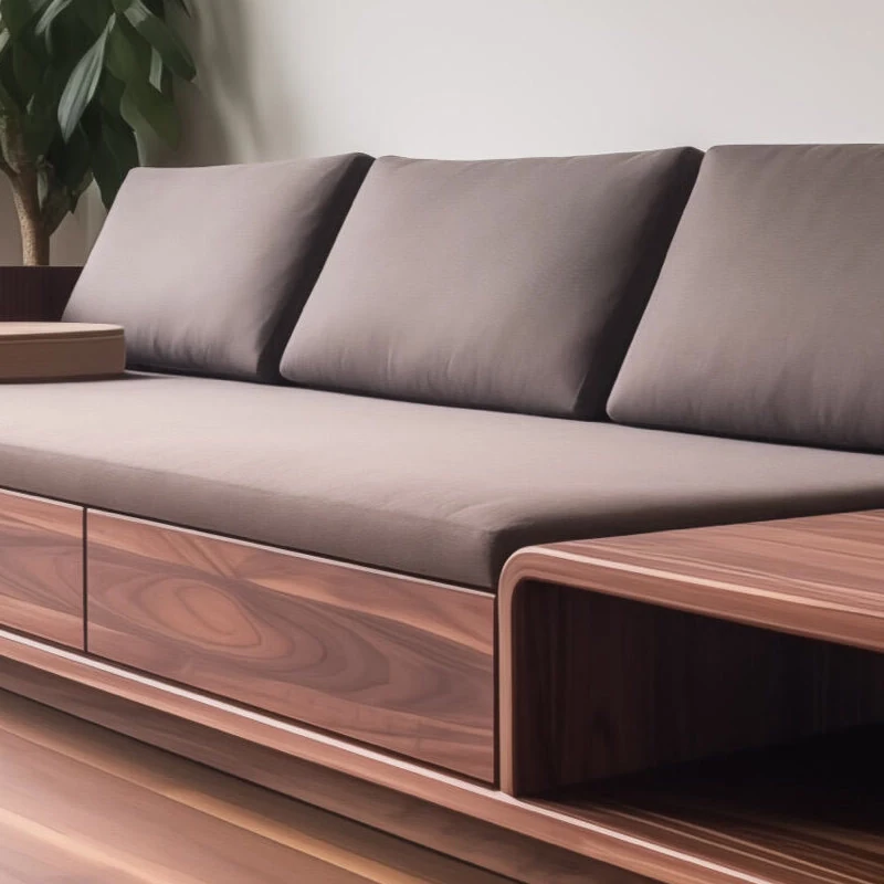 新しい中式デザインのウォールナット無垢材ソファ!現代のラグジュアリーを感じられる、スタイリッシュなオフィス向け直列ソファ。高級感あふれるリビングルームにぴったりの一品です。