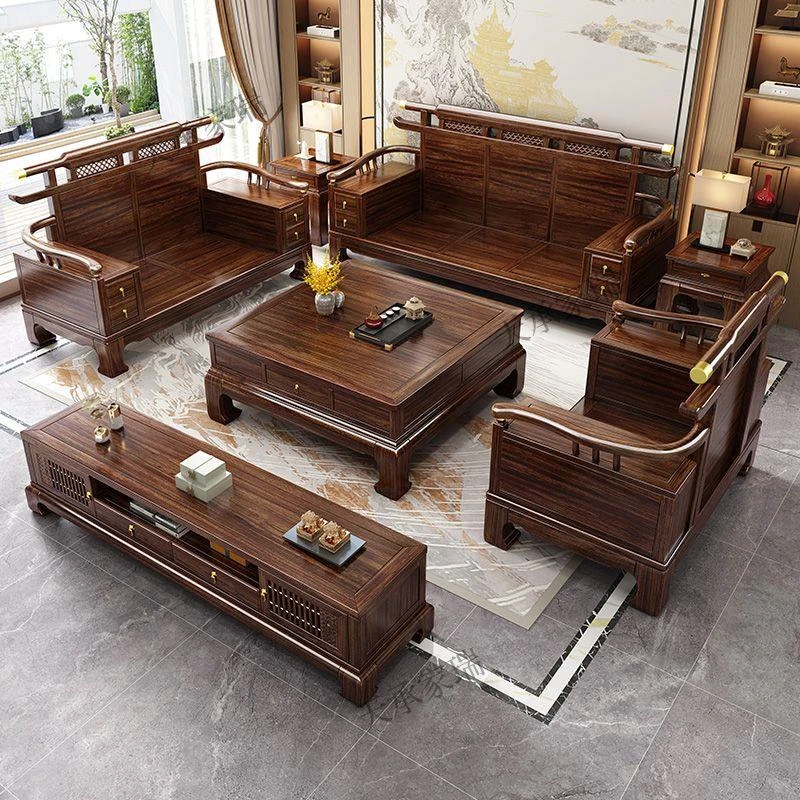 新中式ウッドウールソファセット|冬夏兼用のモダンデザイン|小型住居にも最適なシンプルなリビング家具|ヴィラにぴったりの高級感溢れる一品