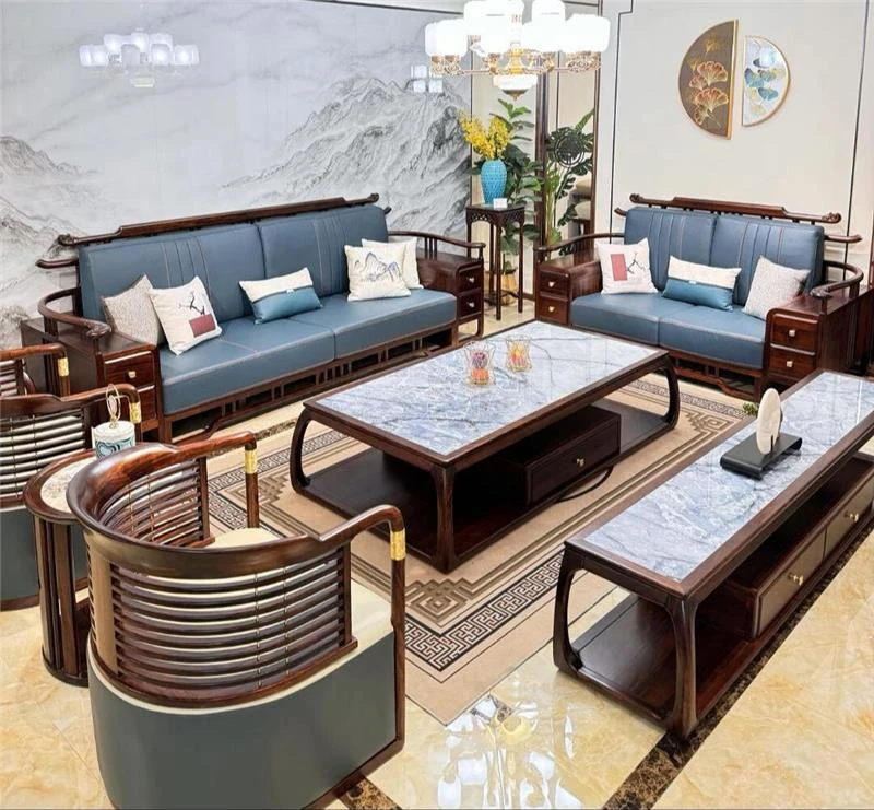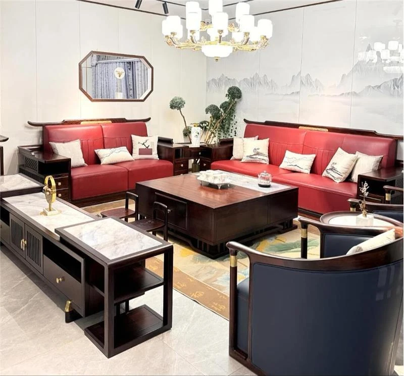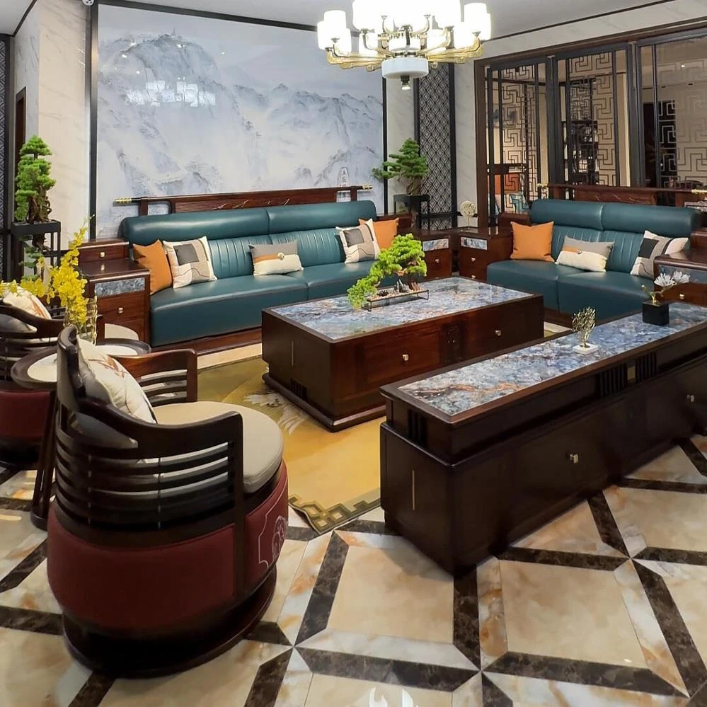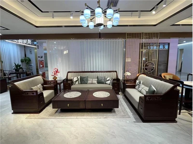 新中式ウッドデザイン!豪華なウルキンウッド製ソファセット - 大平面で広々とした主寝室にぴったりの現代的でシンプルなスタイル、ヴィラや大規模な住居に最適!