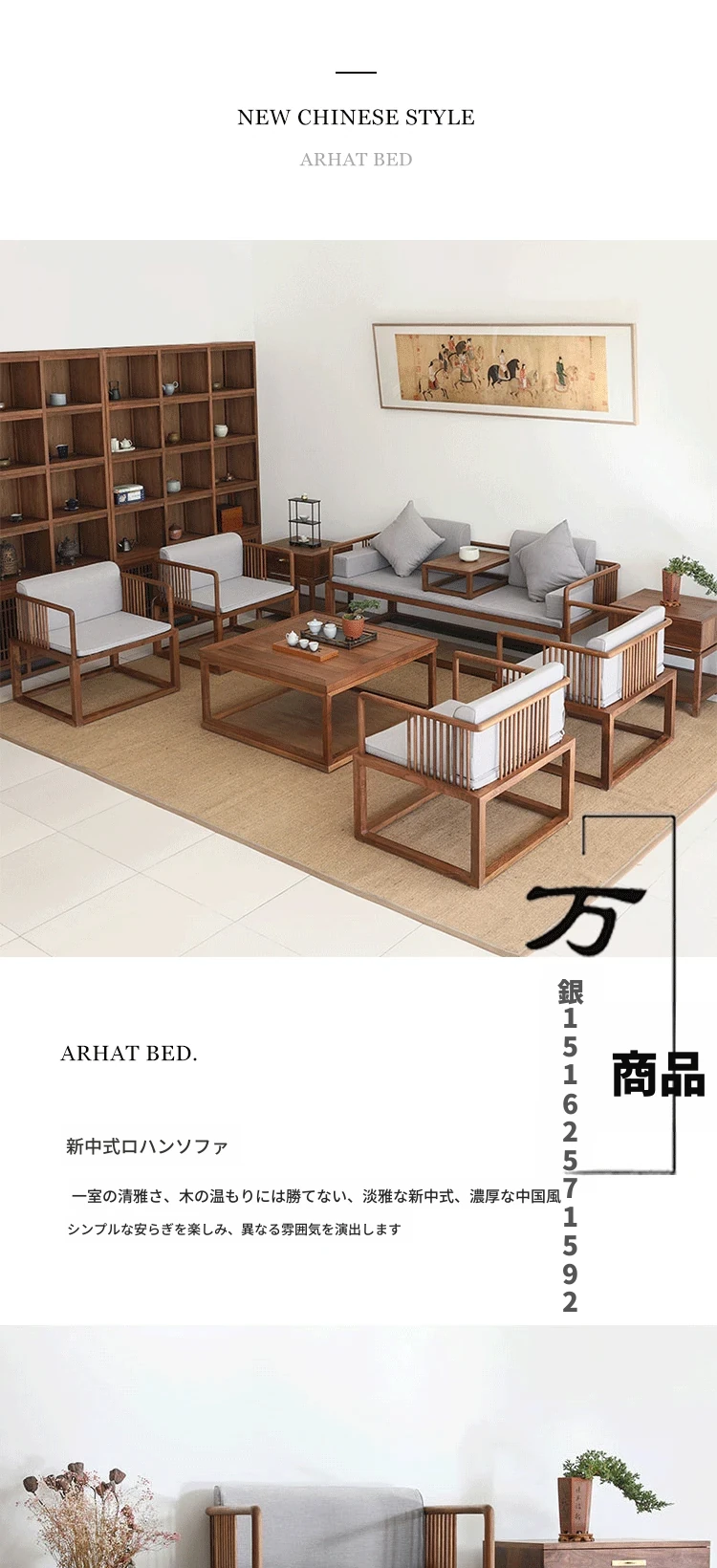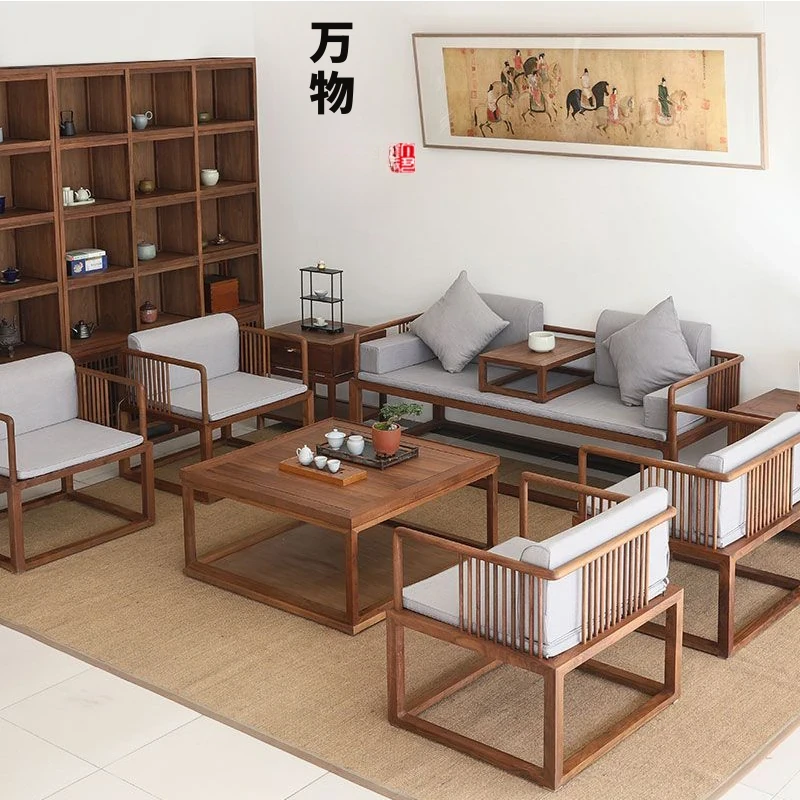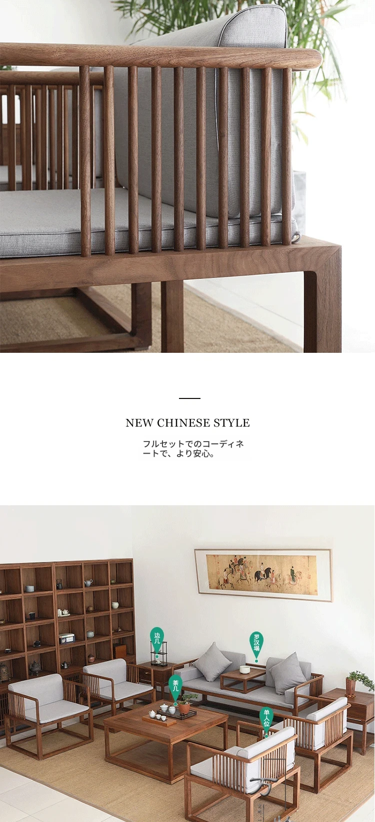 新中式スタイルのウォールナット無垢材ソファ - シンプルで洗練された談話ソファセット、民宿やモデルルーム、別荘、ホテルに最適な家具!高級感あふれるデザインで、心地よい空間を演出します。