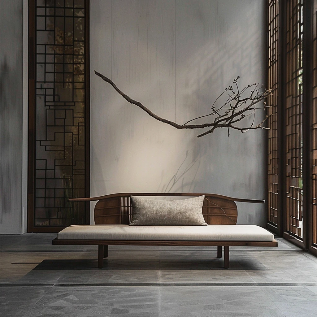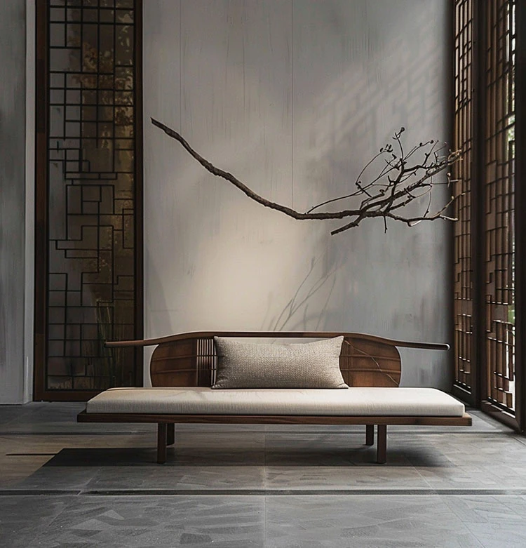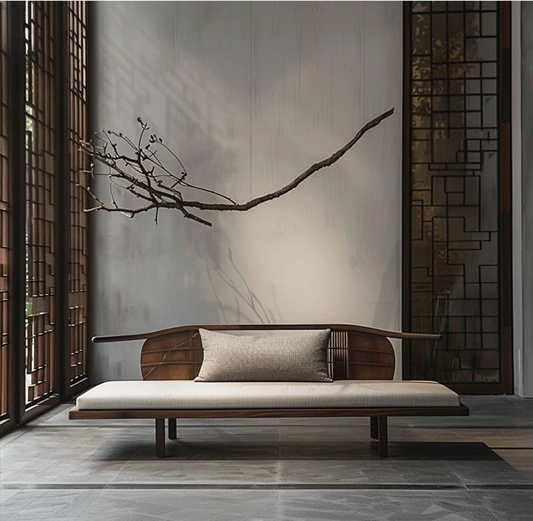 新中式の禅の雰囲気を持つウォールナットとアッシュ材の貴妃椅子 - モダンでシンプル、高級感漂うデザイン。ホテルのリビングや寝室にぴったりの洗練されたアイテムです。