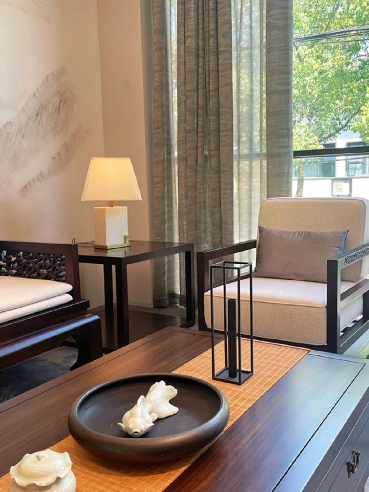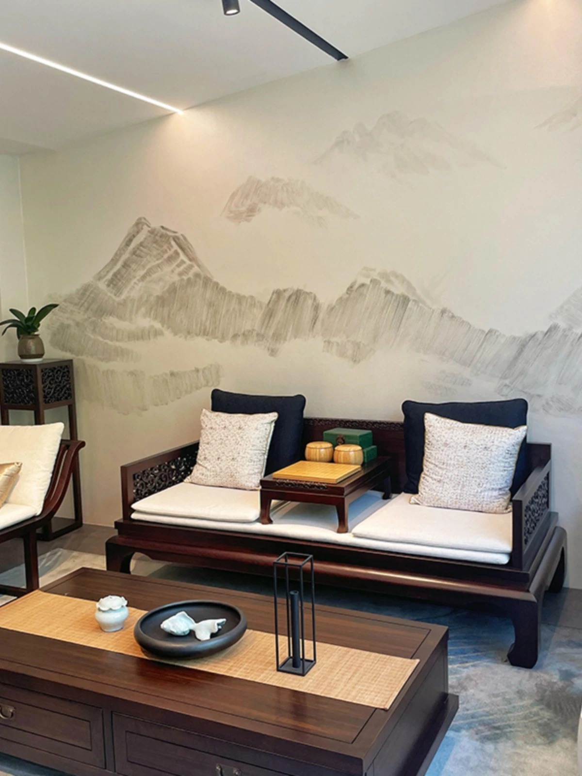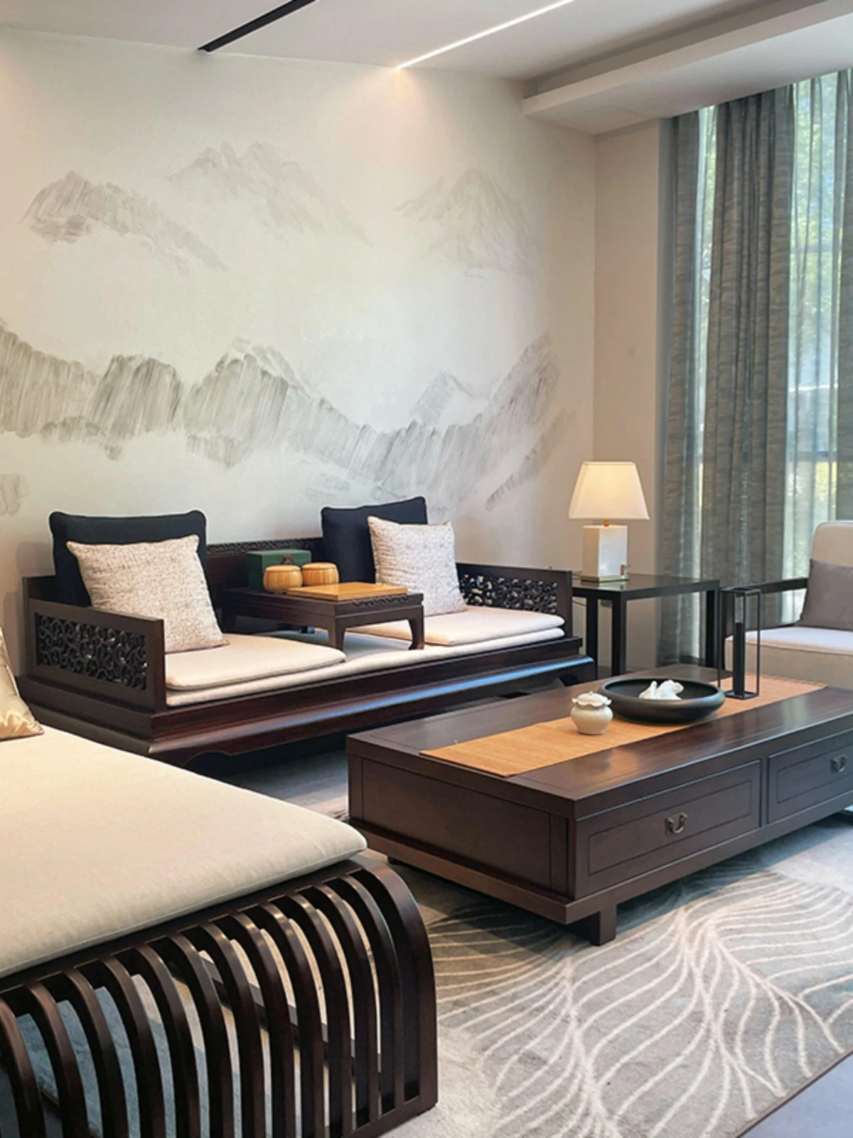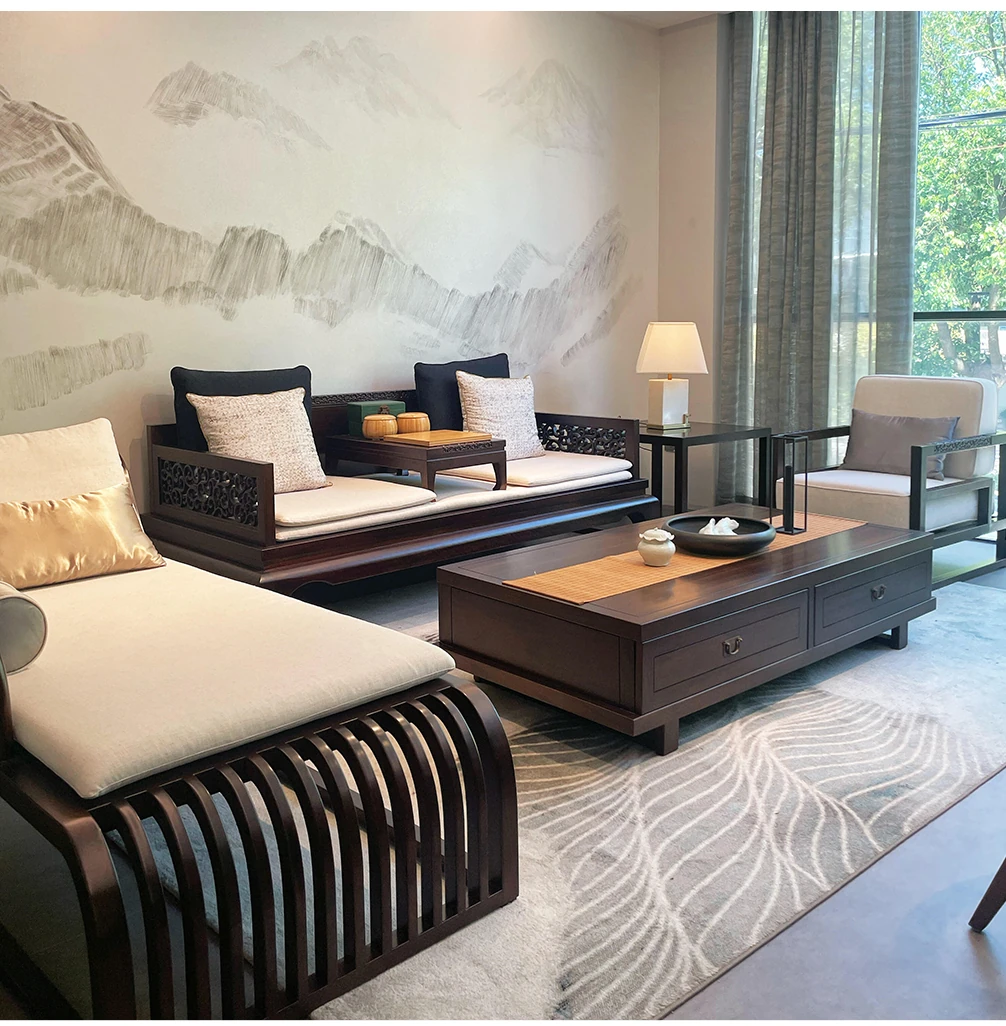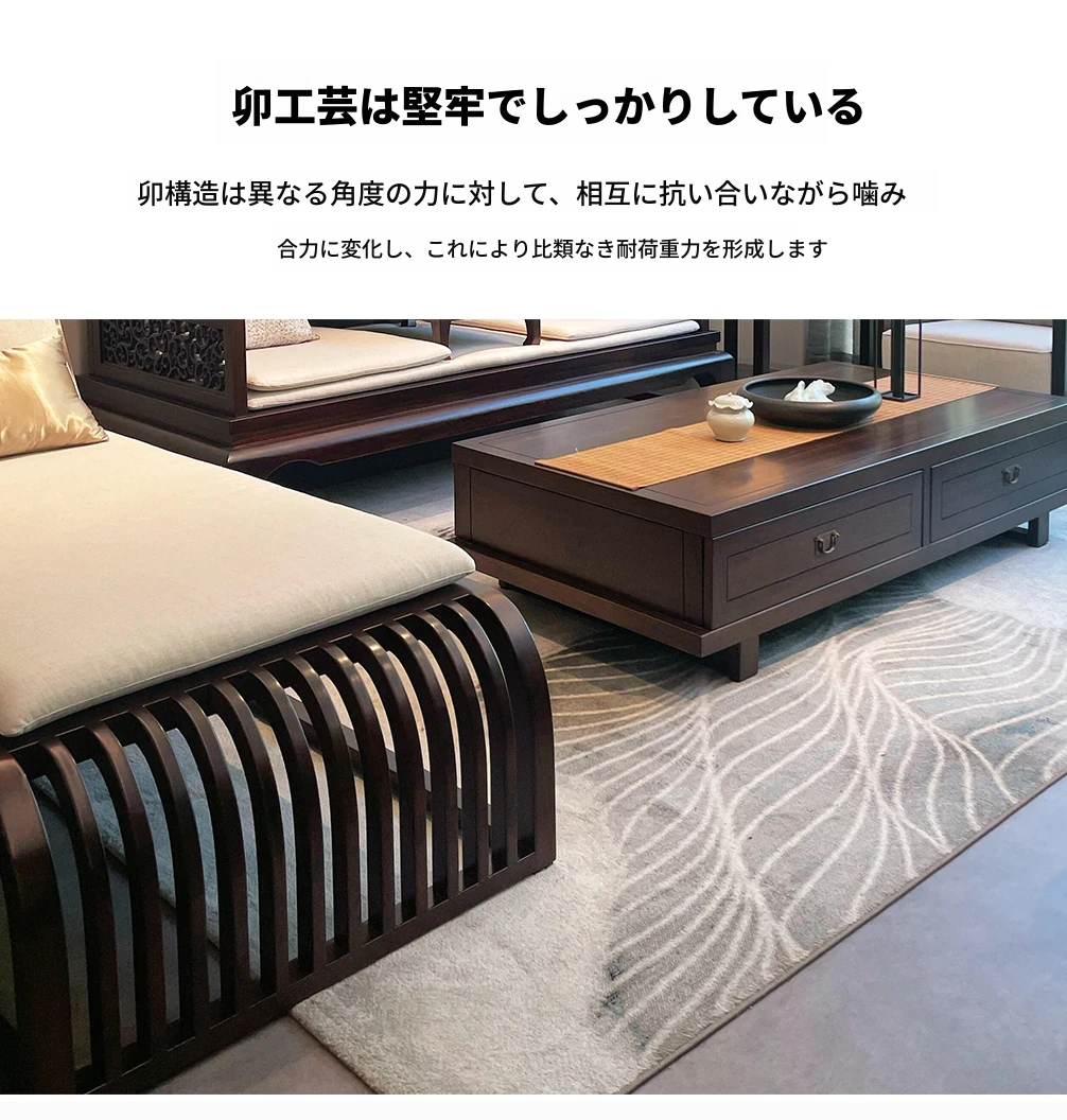 新中式ロハンソファセット - 禅の雰囲気を感じるウッディ&ファブリックの美しさ。モダンでシンプルなデザイン、別荘のリビングに最適!