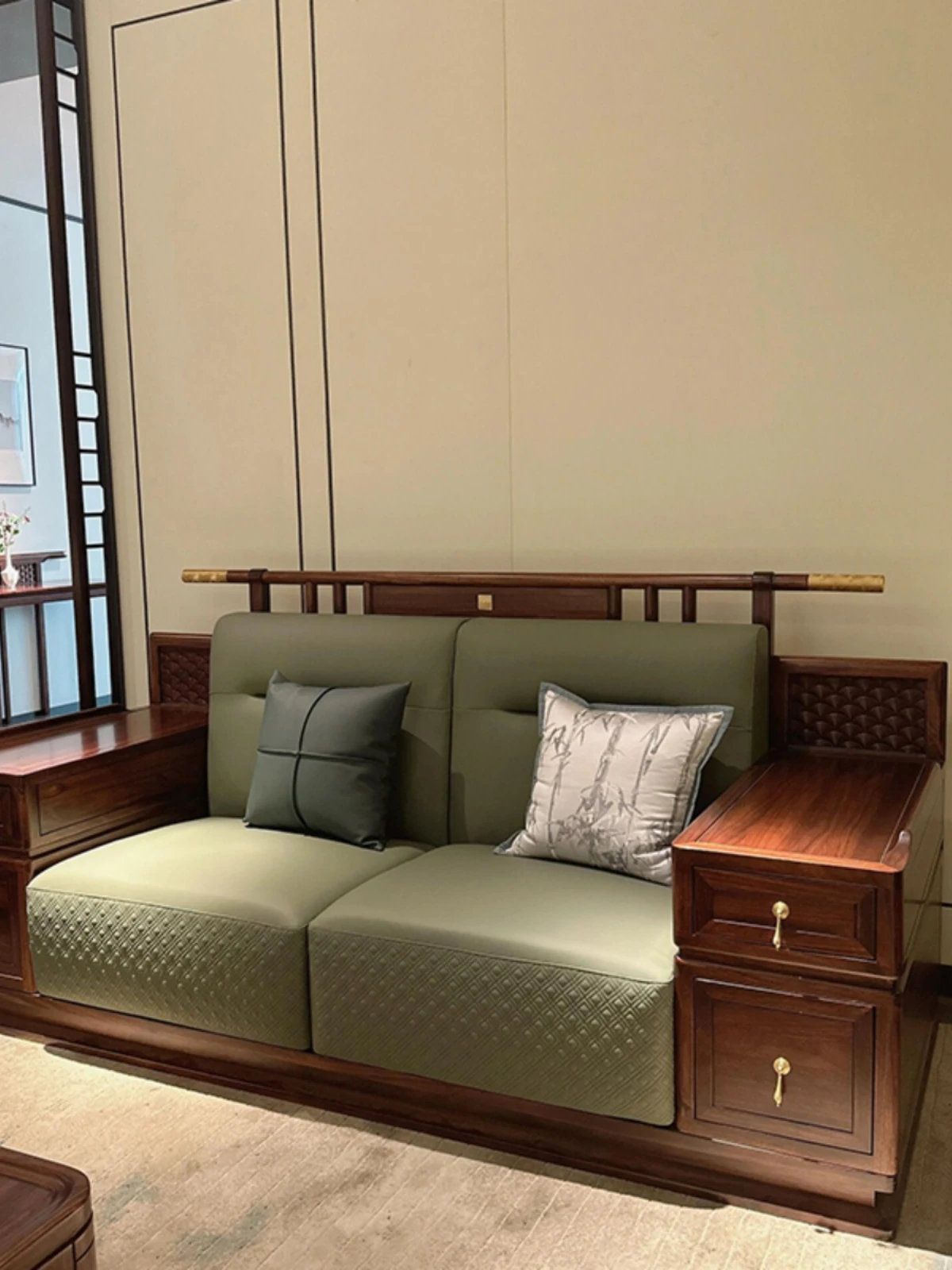 新中式ウッド調のウッディーソファー - ヴィラのリビングに最適!モダンでシンプル、冬夏使える大サイズの禅スタイルソファー。快適なひとときをお届けします。