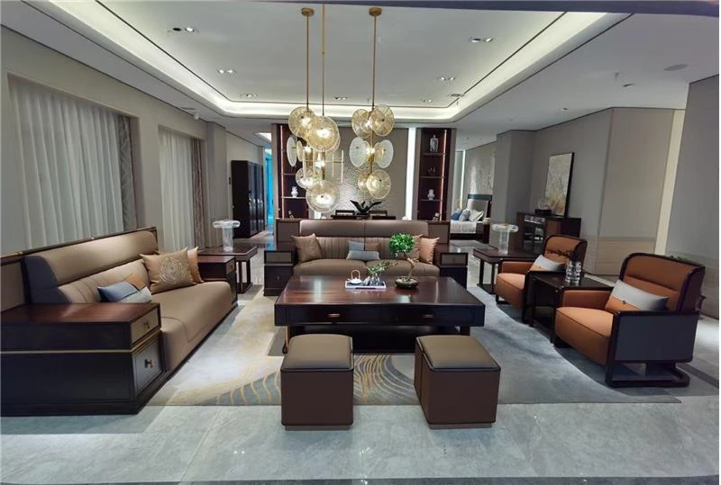 新中式デザインのウッディソファ - 大平層向けのモダンでシンプルなリビング用、豪華な実木製の別荘スタイル。心地よい空間を演出し、家族や友人との特別なひとときを。