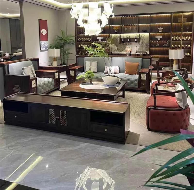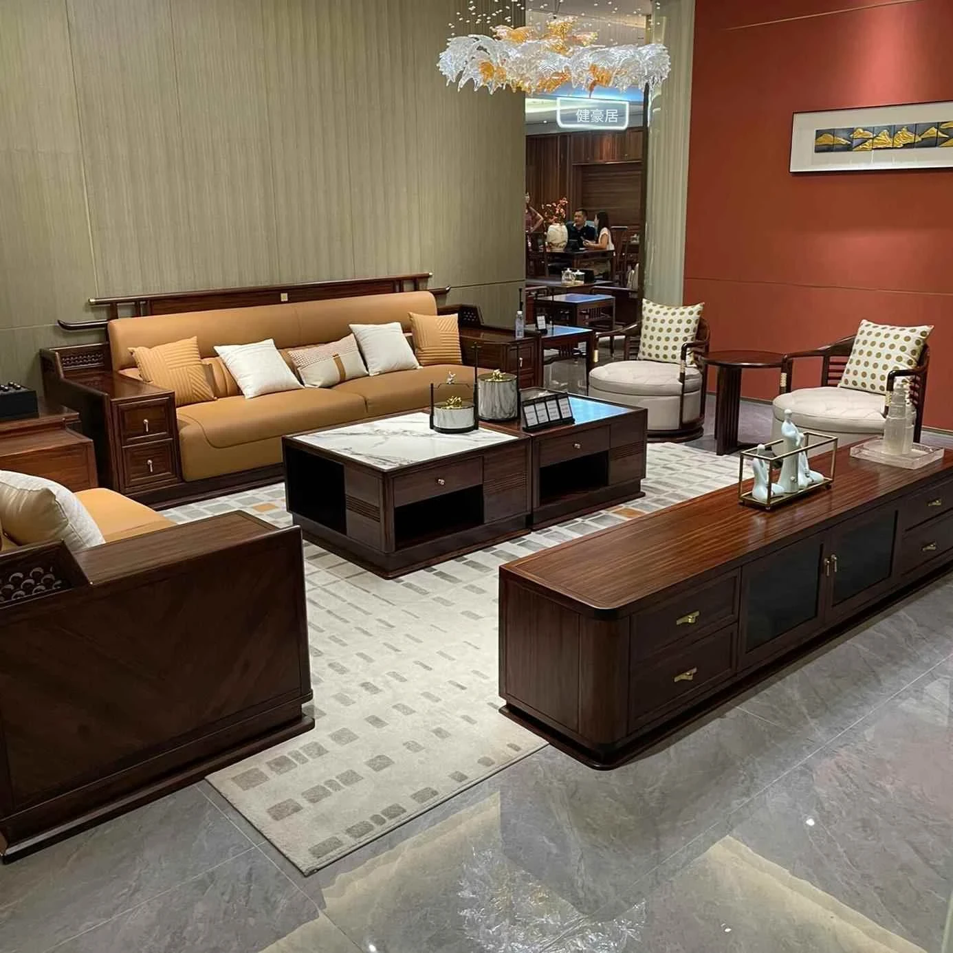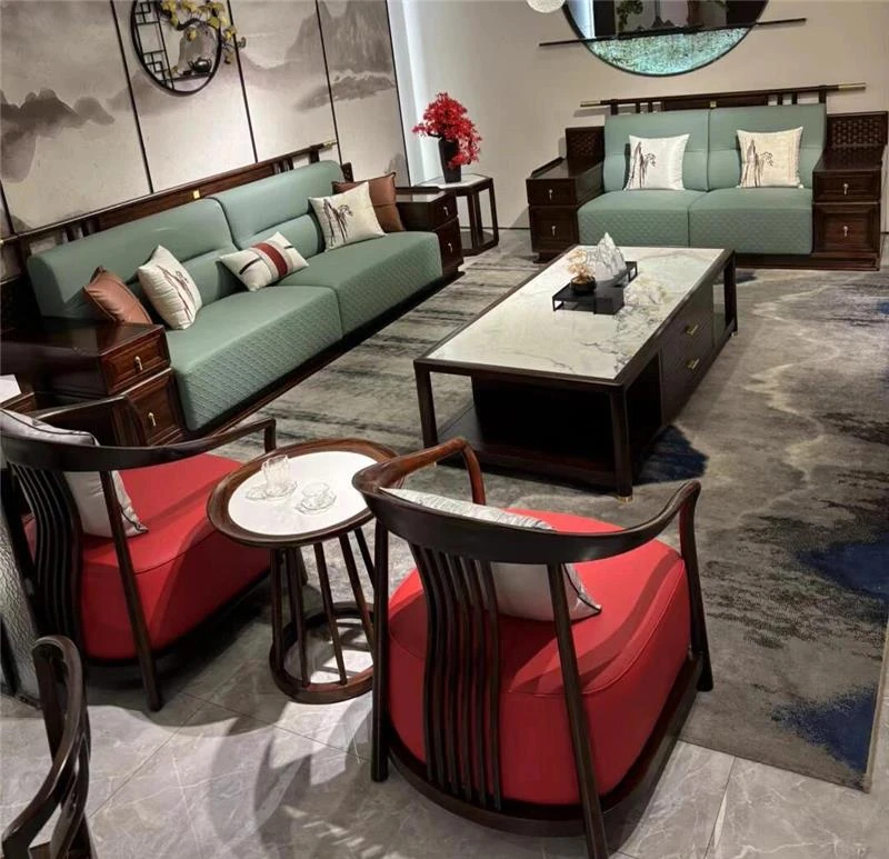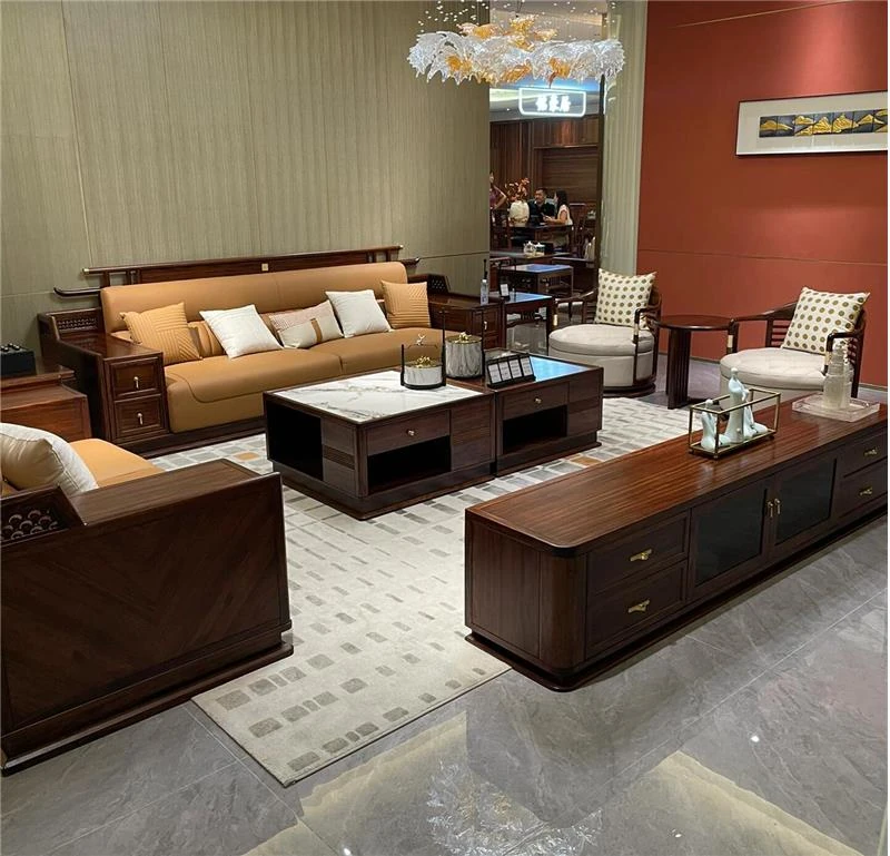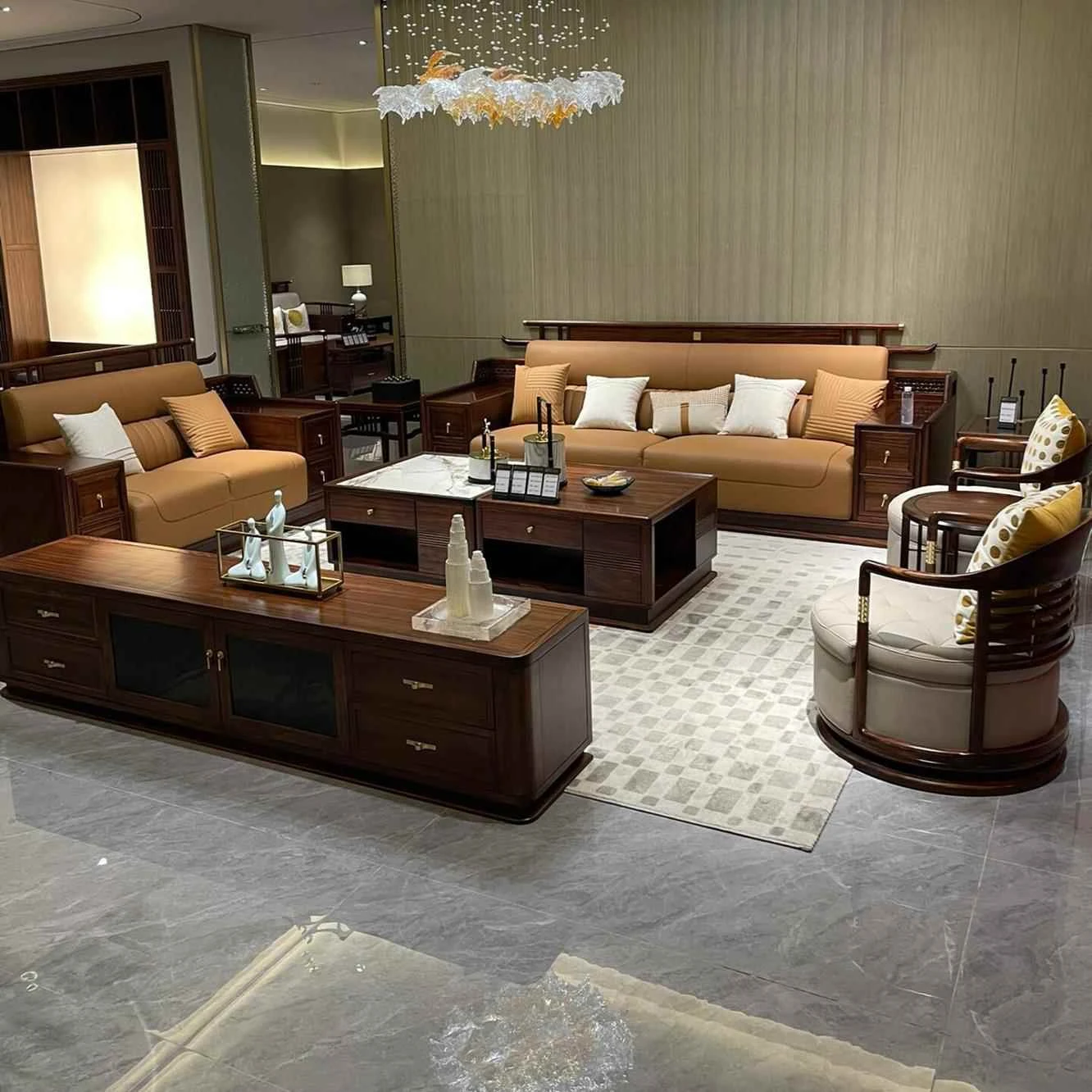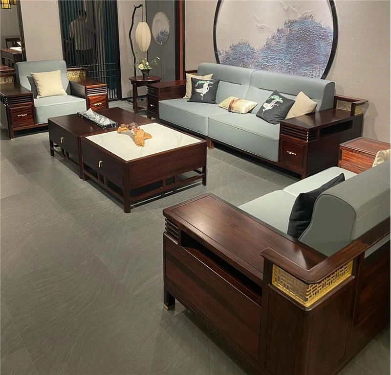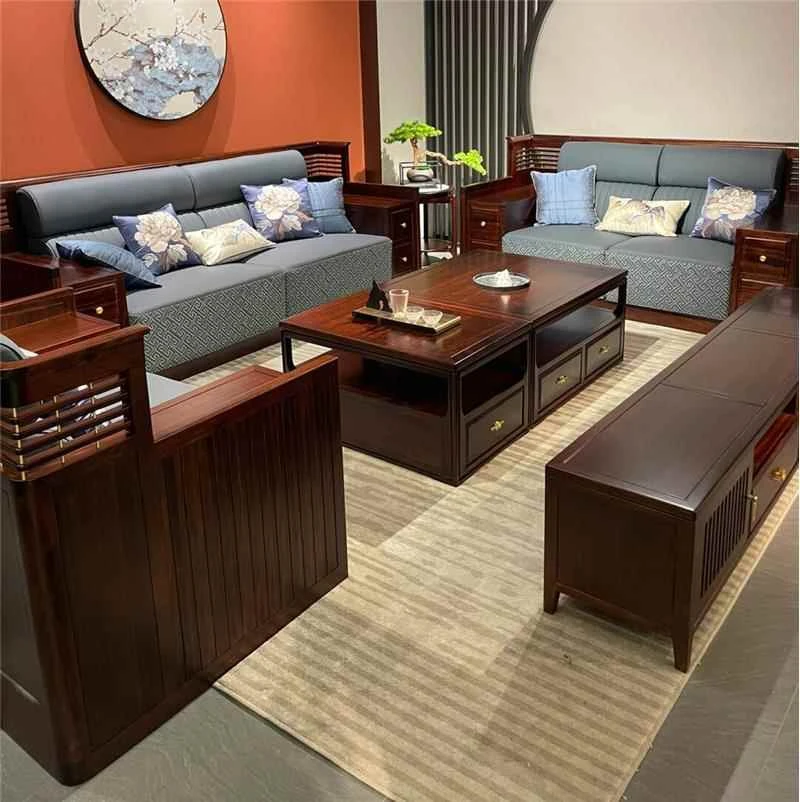 新中式ウ金木製ソファセット|現代的でシンプルなデザイン|広々とした高級別荘やマンションに最適|エレガントな主寝室にぴったりの実木製家具
