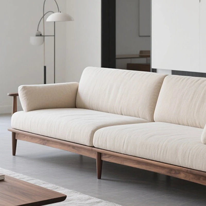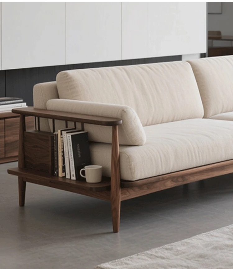 現代的シンプルなブラックウォールナットソファ - 新中式の禅の雰囲気を楽しむ高級本革オフィス・ホテル・民宿用家具。洗練されたデザインで、心地よい空間を演出します!