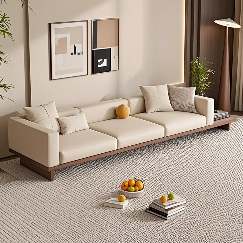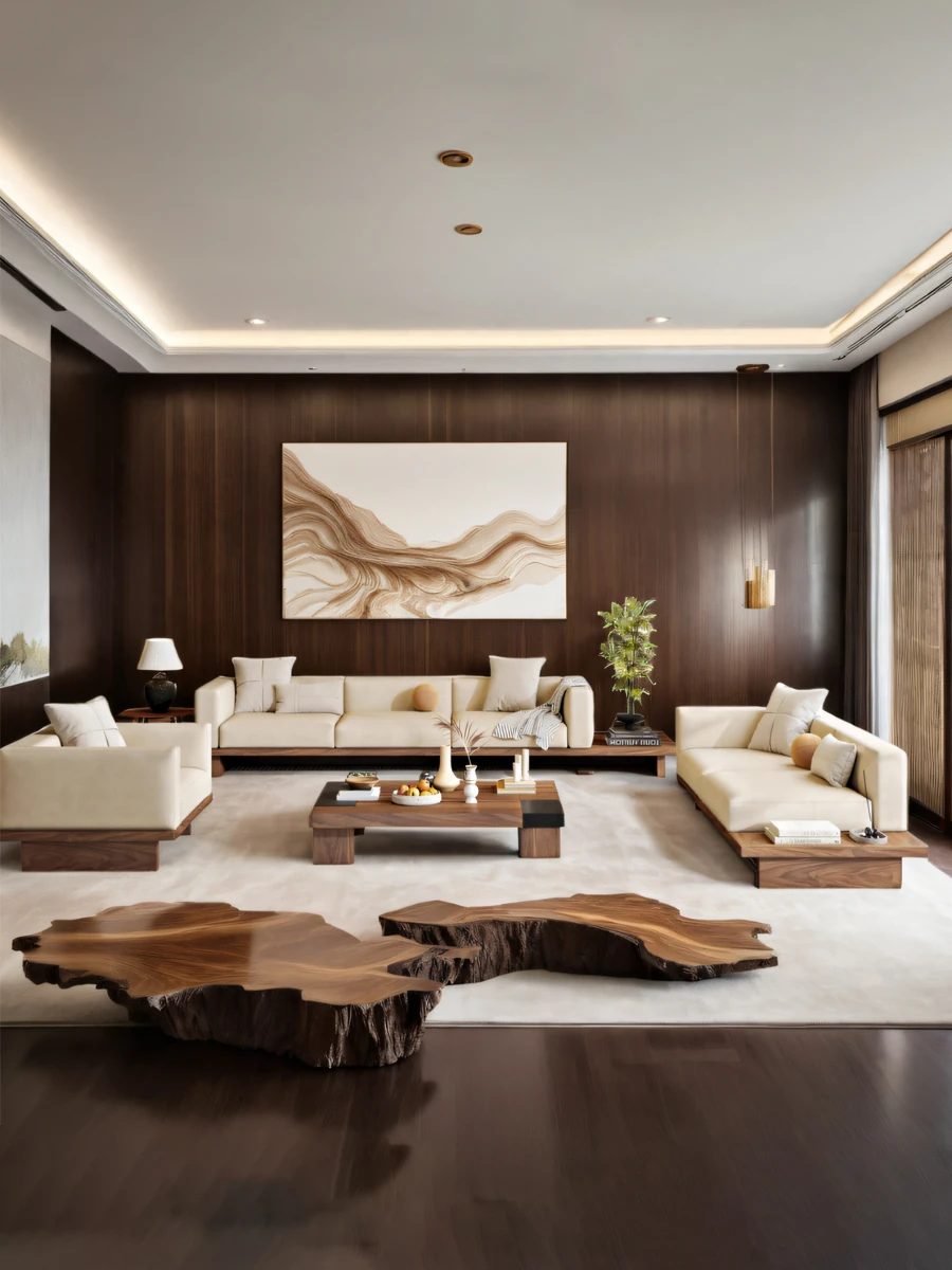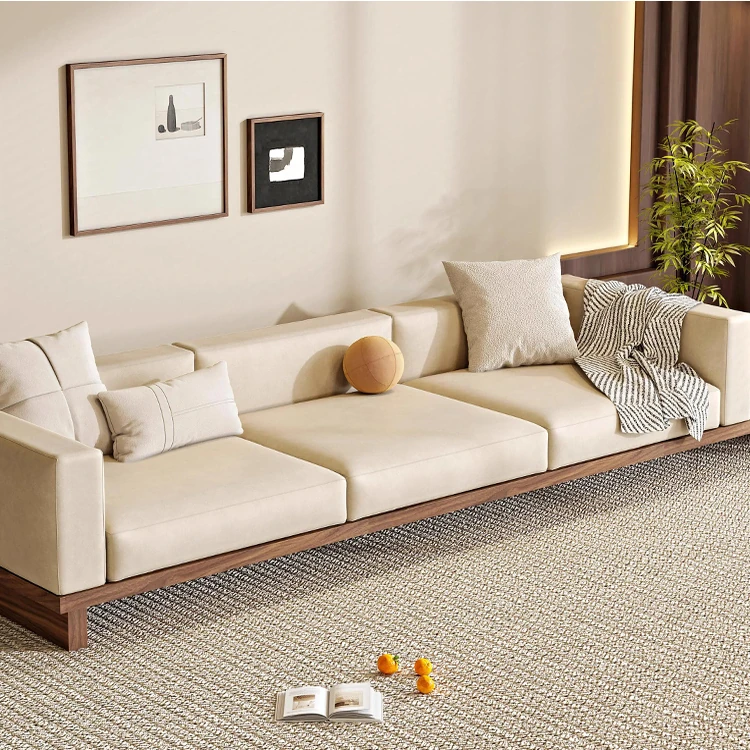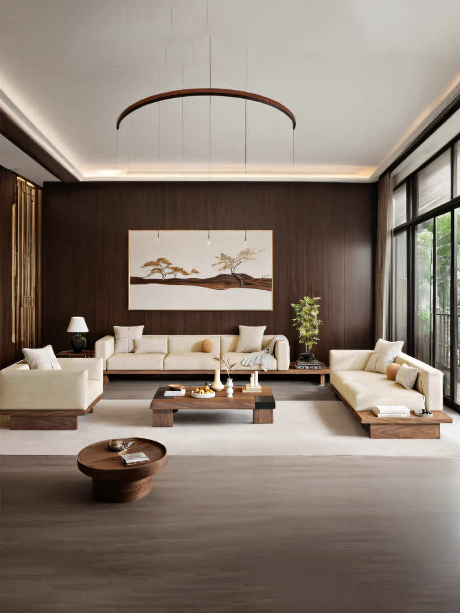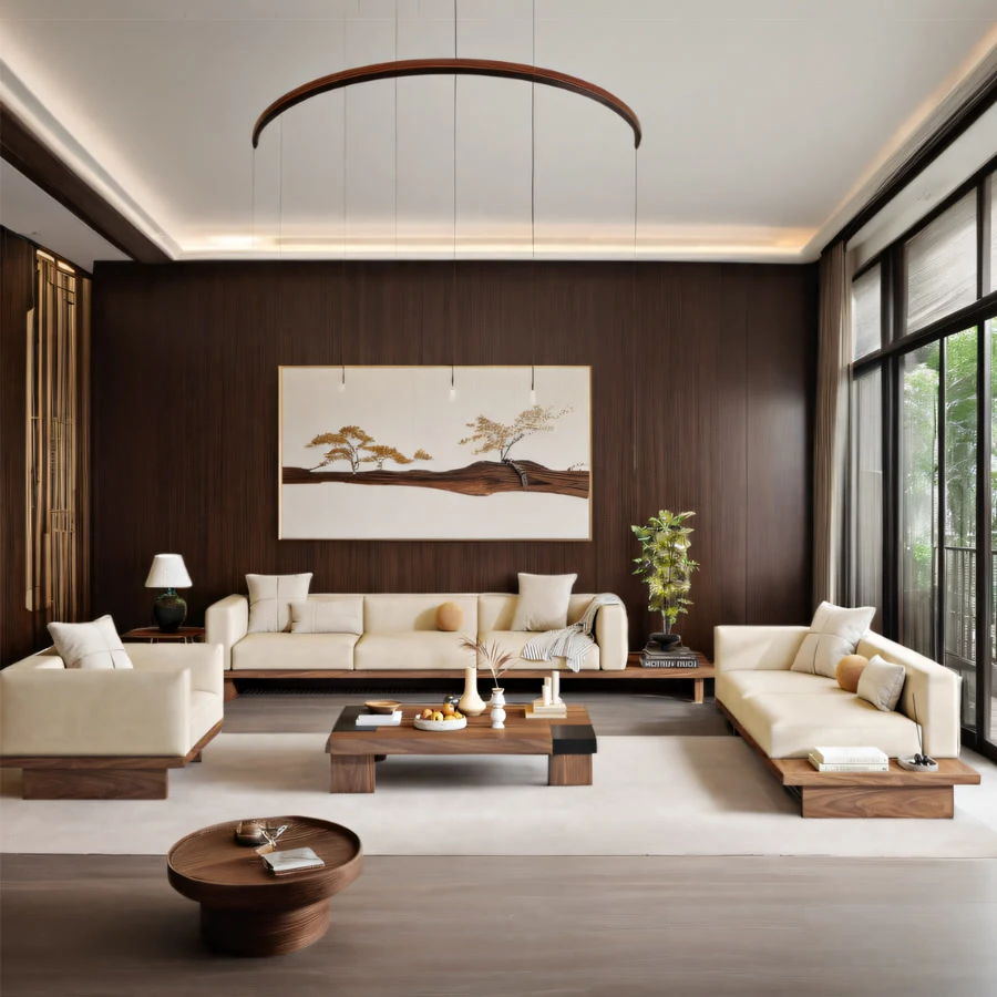 新中式モダンミニマリストのブラックウォールナット無垢材ソファセット2025年別荘用、宋風美学のリビングソファで贅沢な空間を演出!