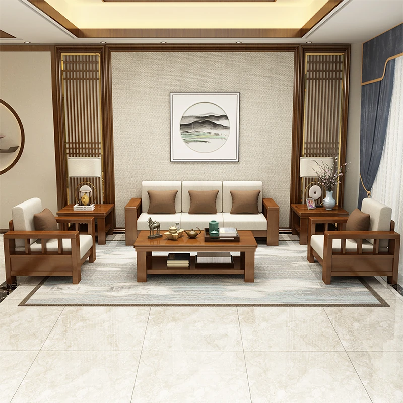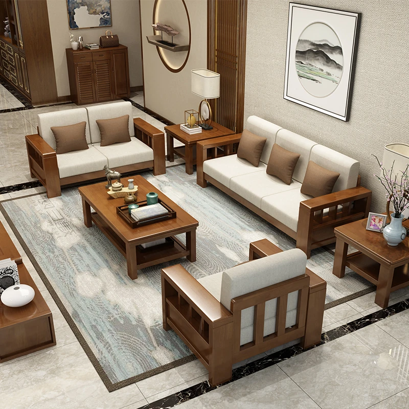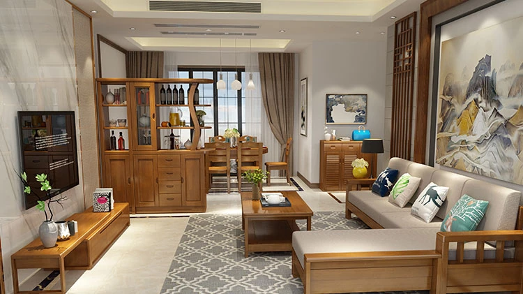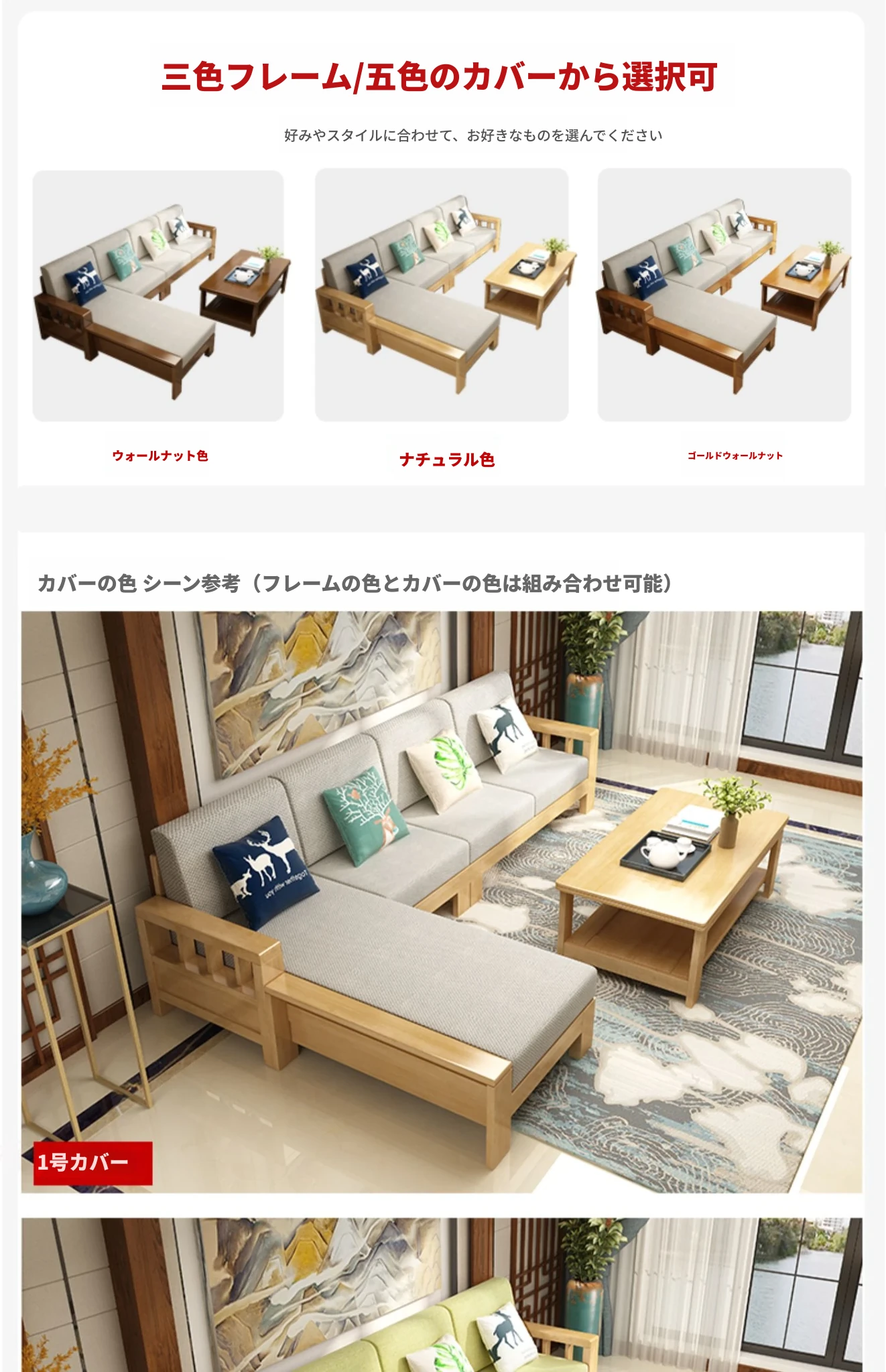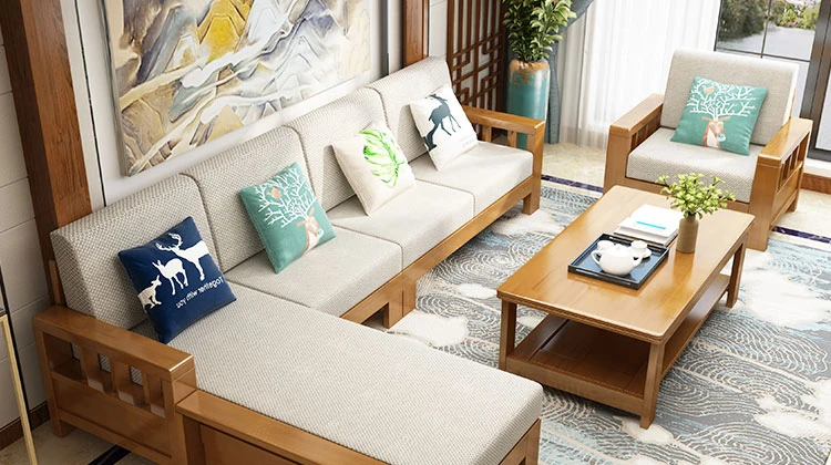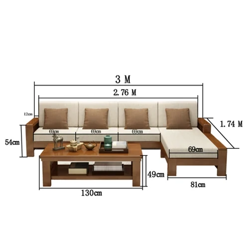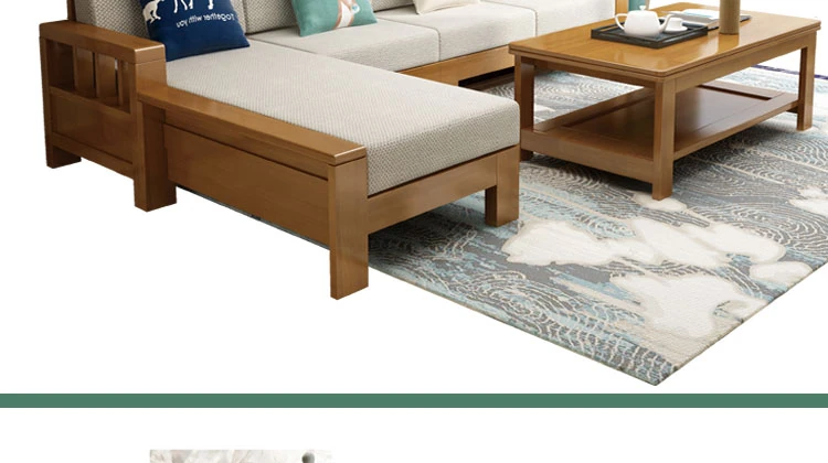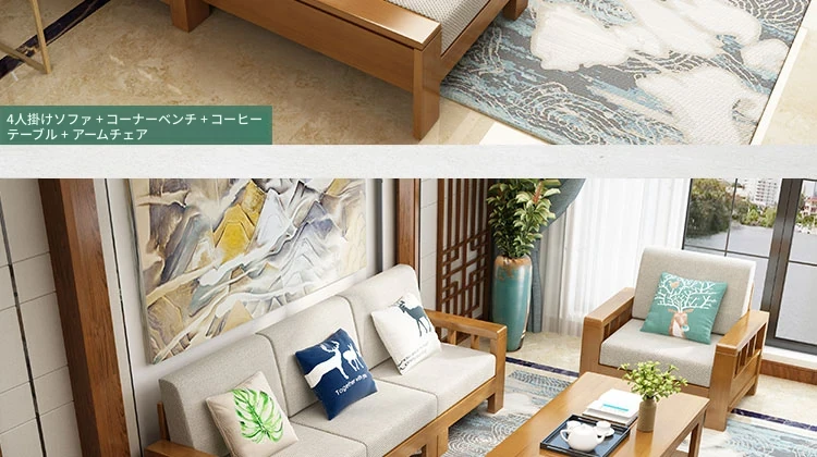 大四人位+貴妃+茶几【ラ床タイプ】(総長3.00M) 【原木色/胡桃色/金胡桃色】
