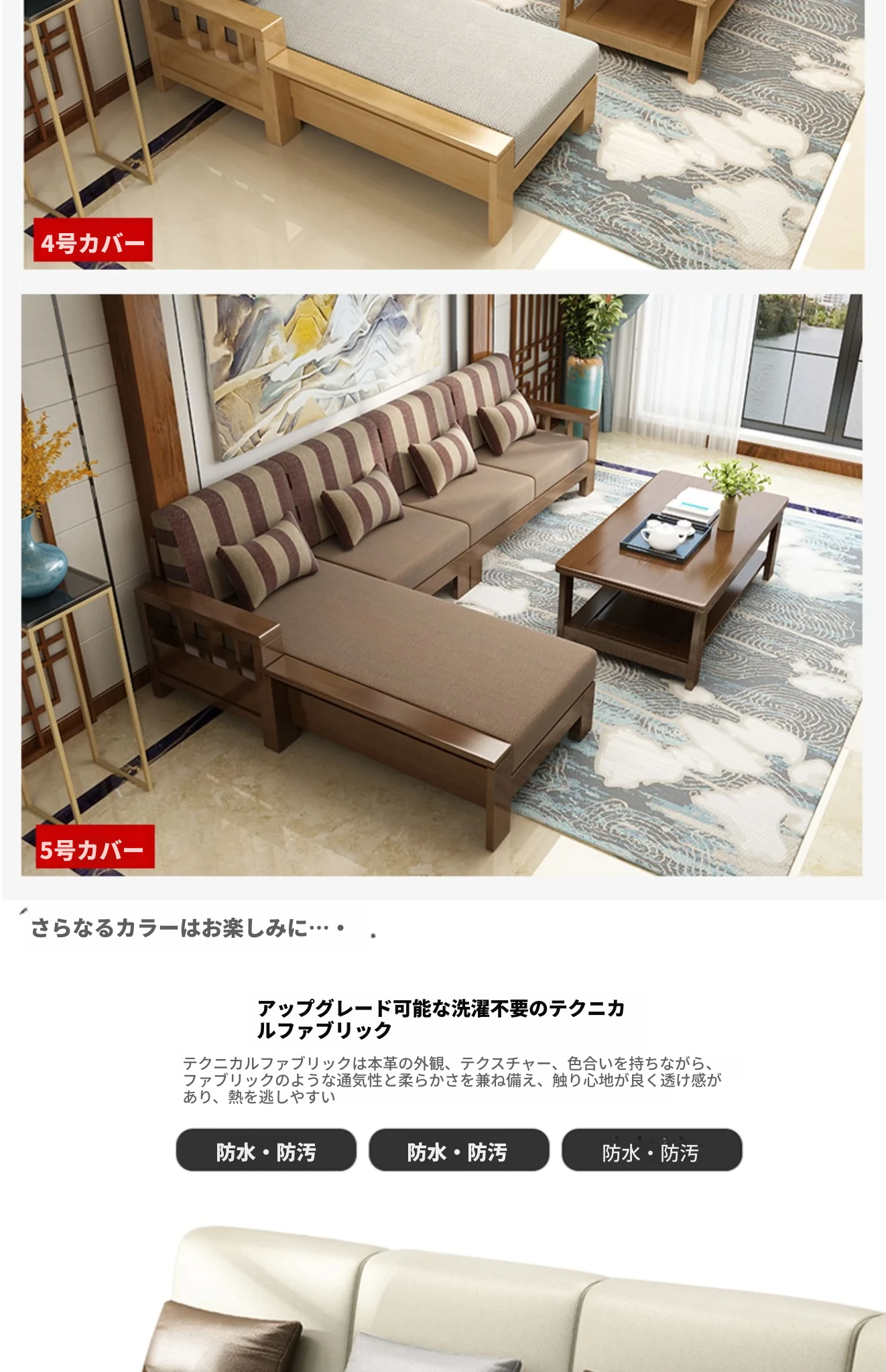 大四+貴+几(標準タイプ)【テクノファブリックカバー】(総長3.00M) 【金胡桃色】