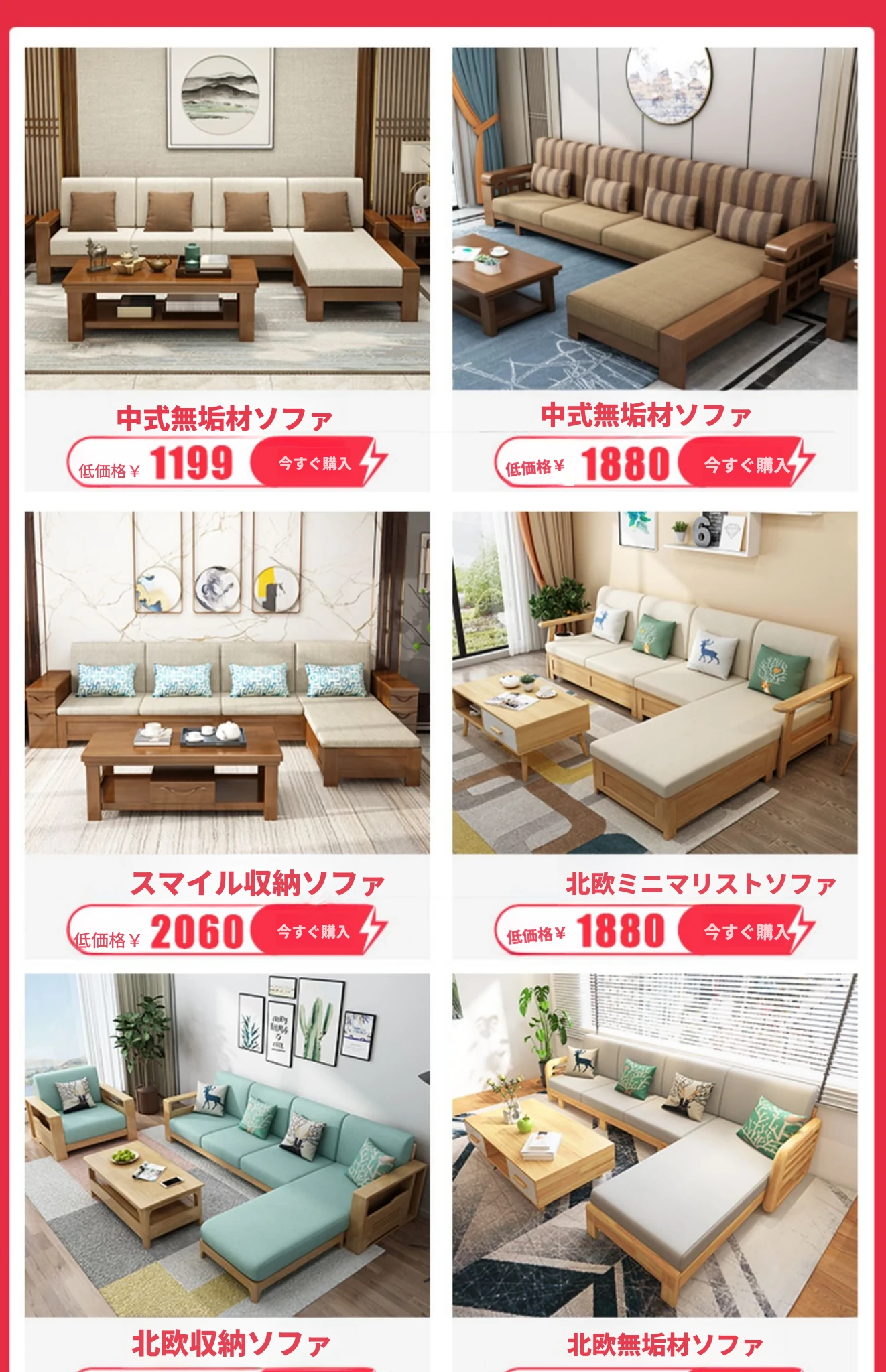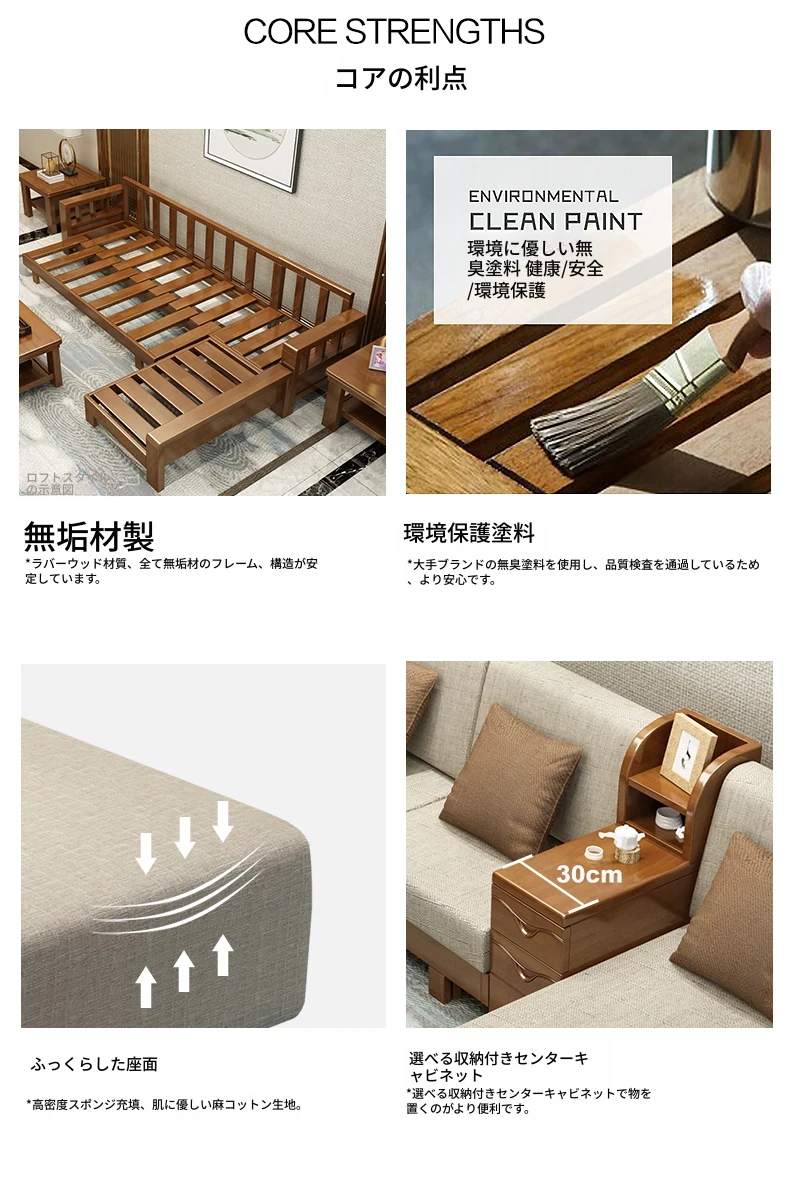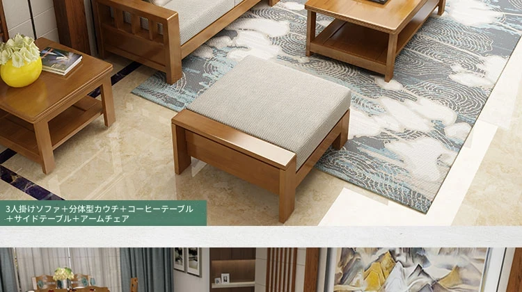 大四人位+貴妃+茶几【収納タイプ】(総長3.00M) 【原木色】