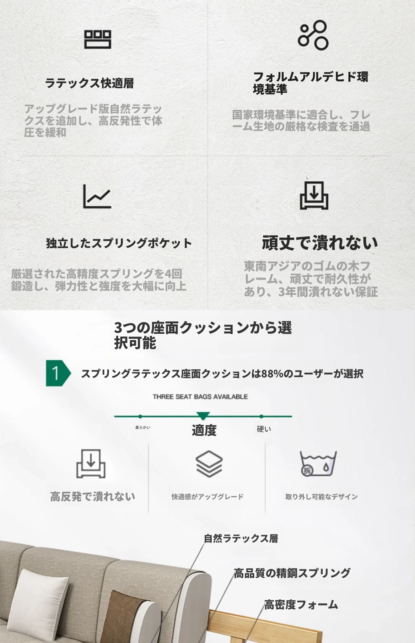 大四+貴+几(標準タイプ)【ラテックススプリングクッション】(総長3.00M) 【金胡桃色】