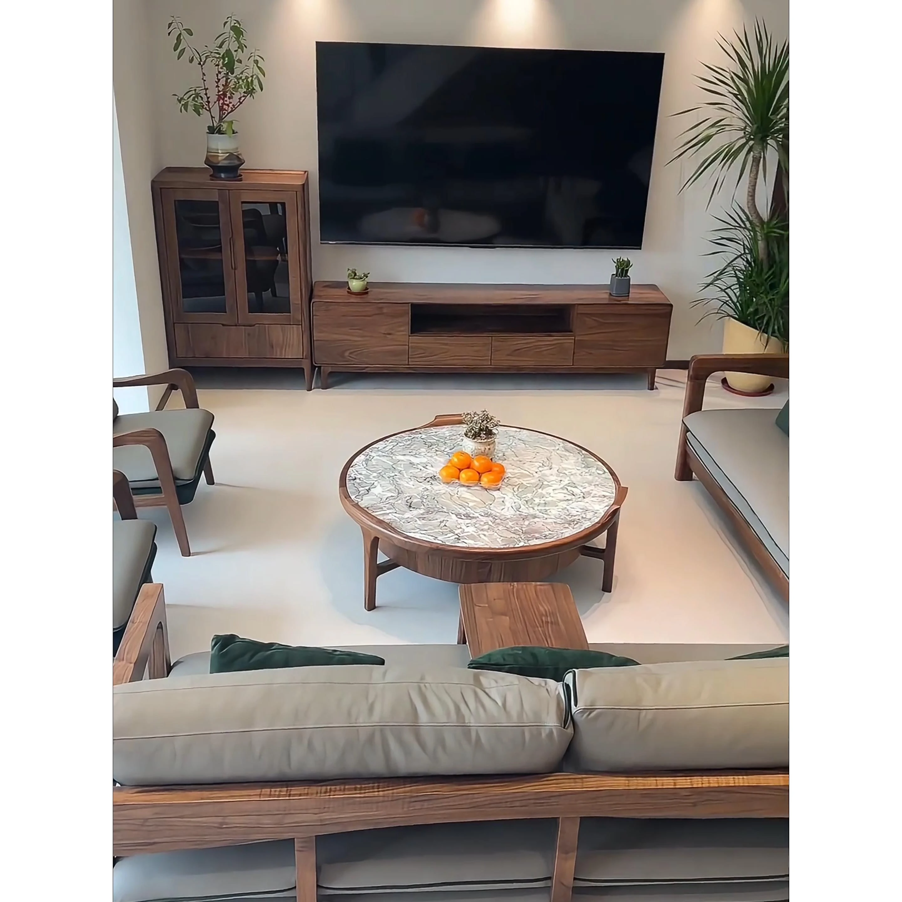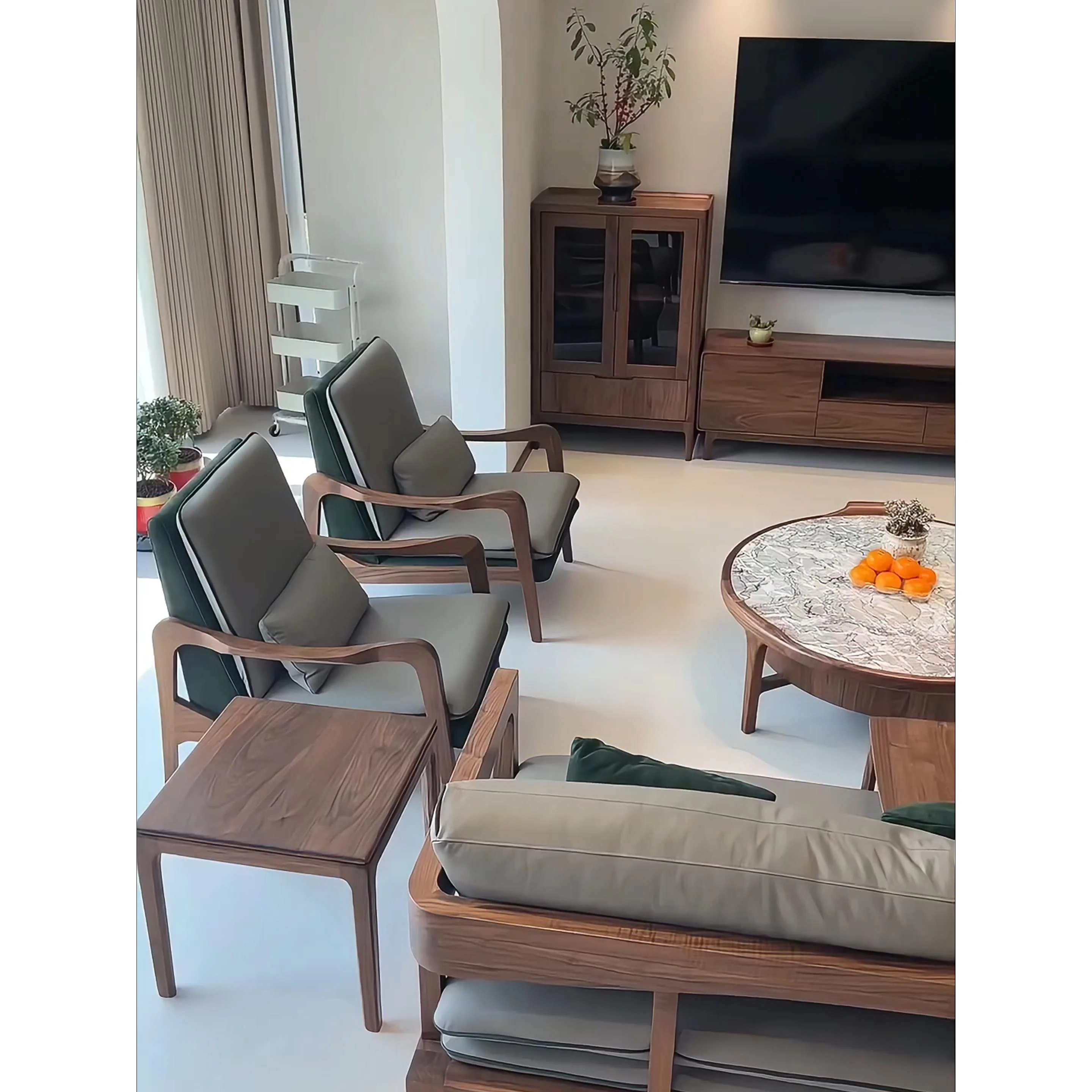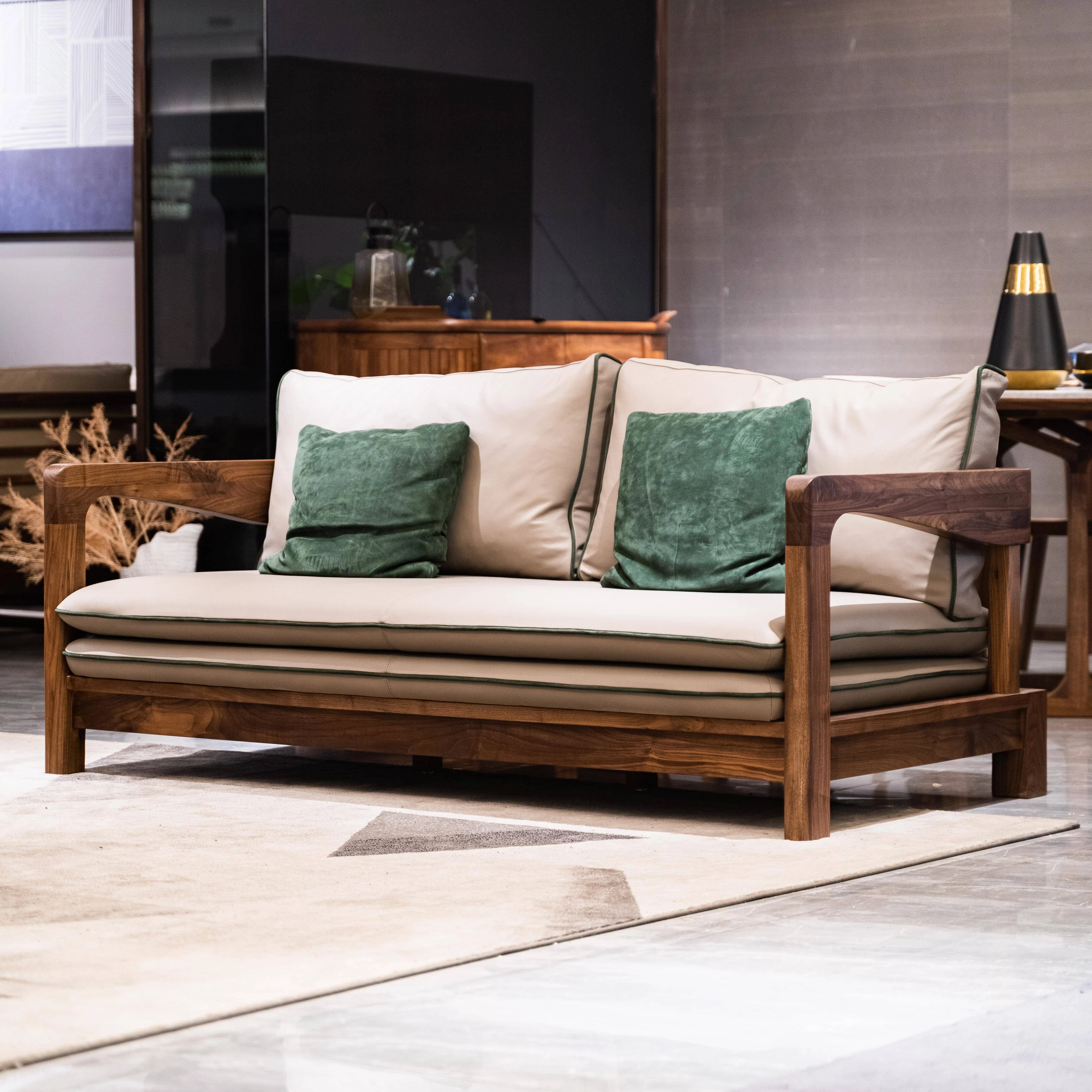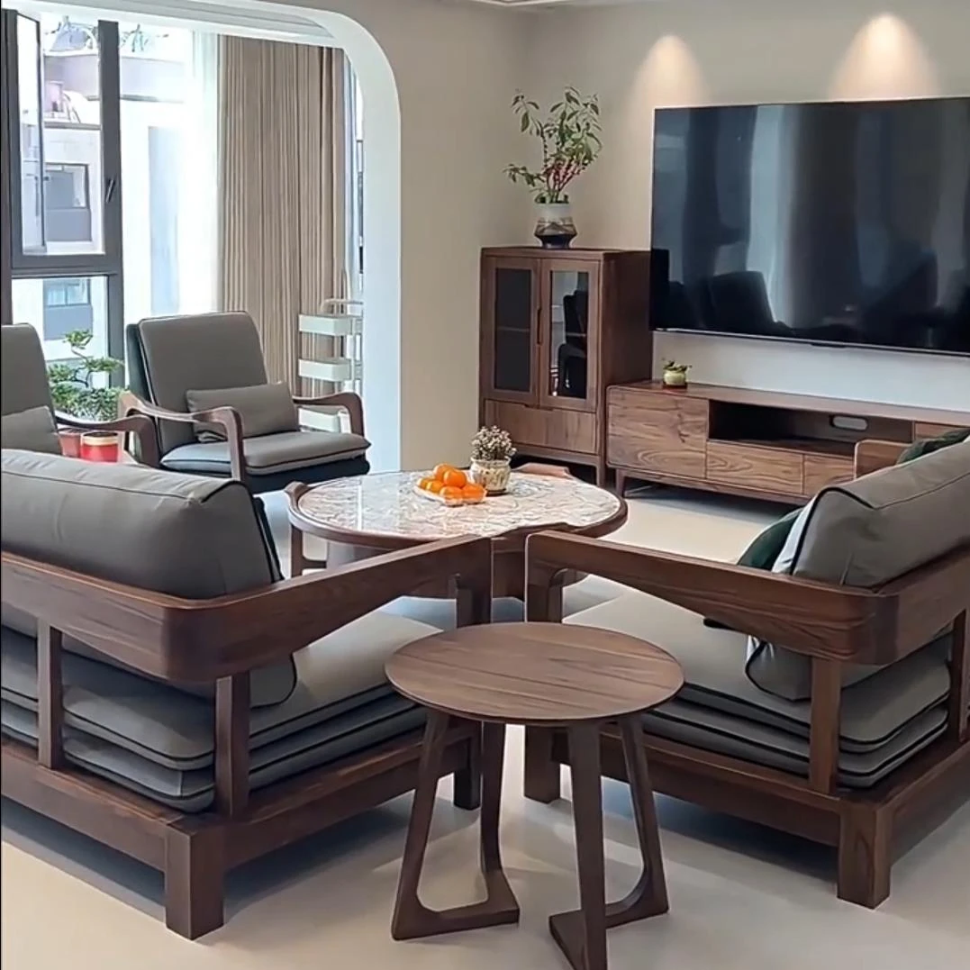 新中式スタイルの北米ブラックウォールナット無垢材ソファセット - モダンでラグジュアリーなリビングルームにぴったりなシンプルかつ広々とした無垢家具!