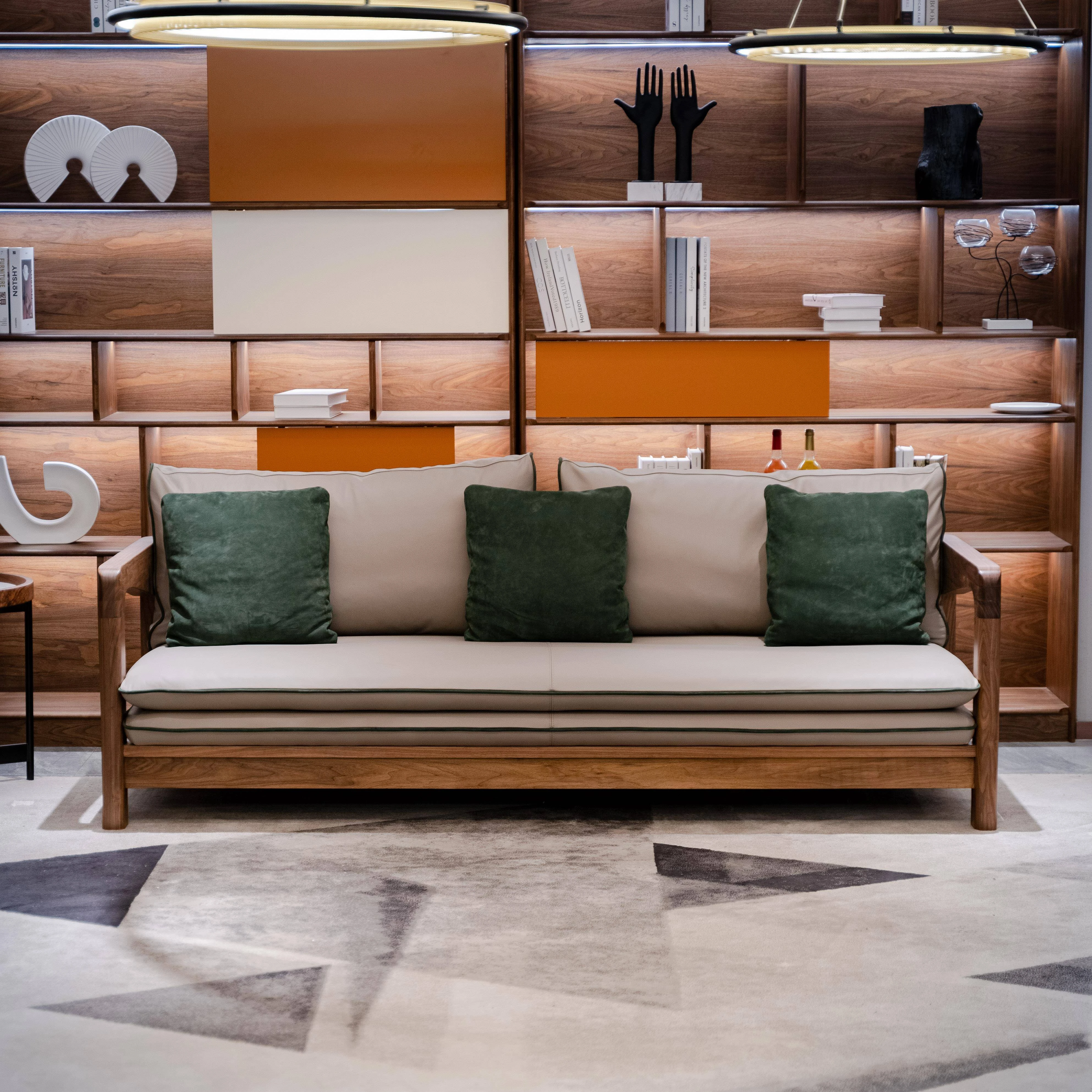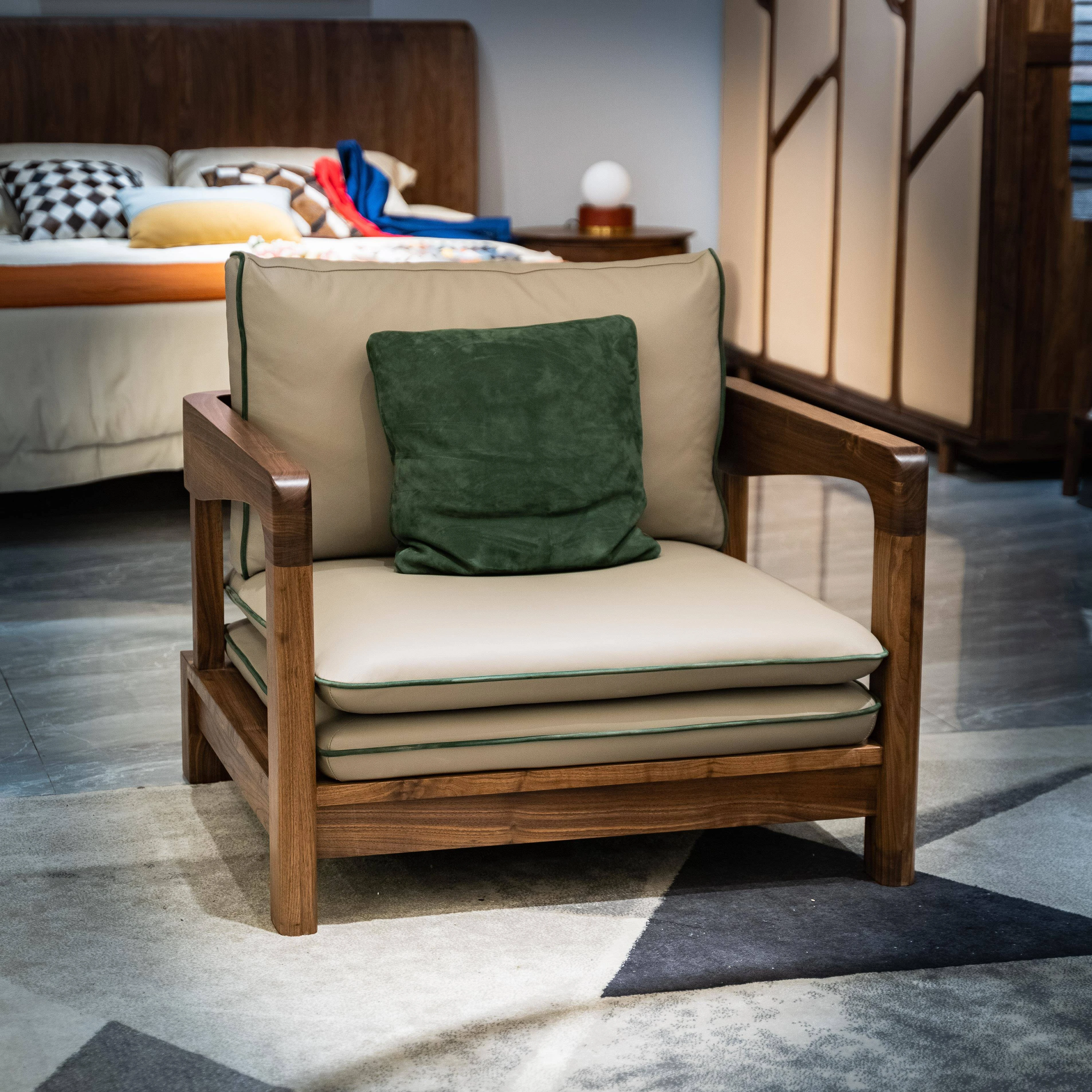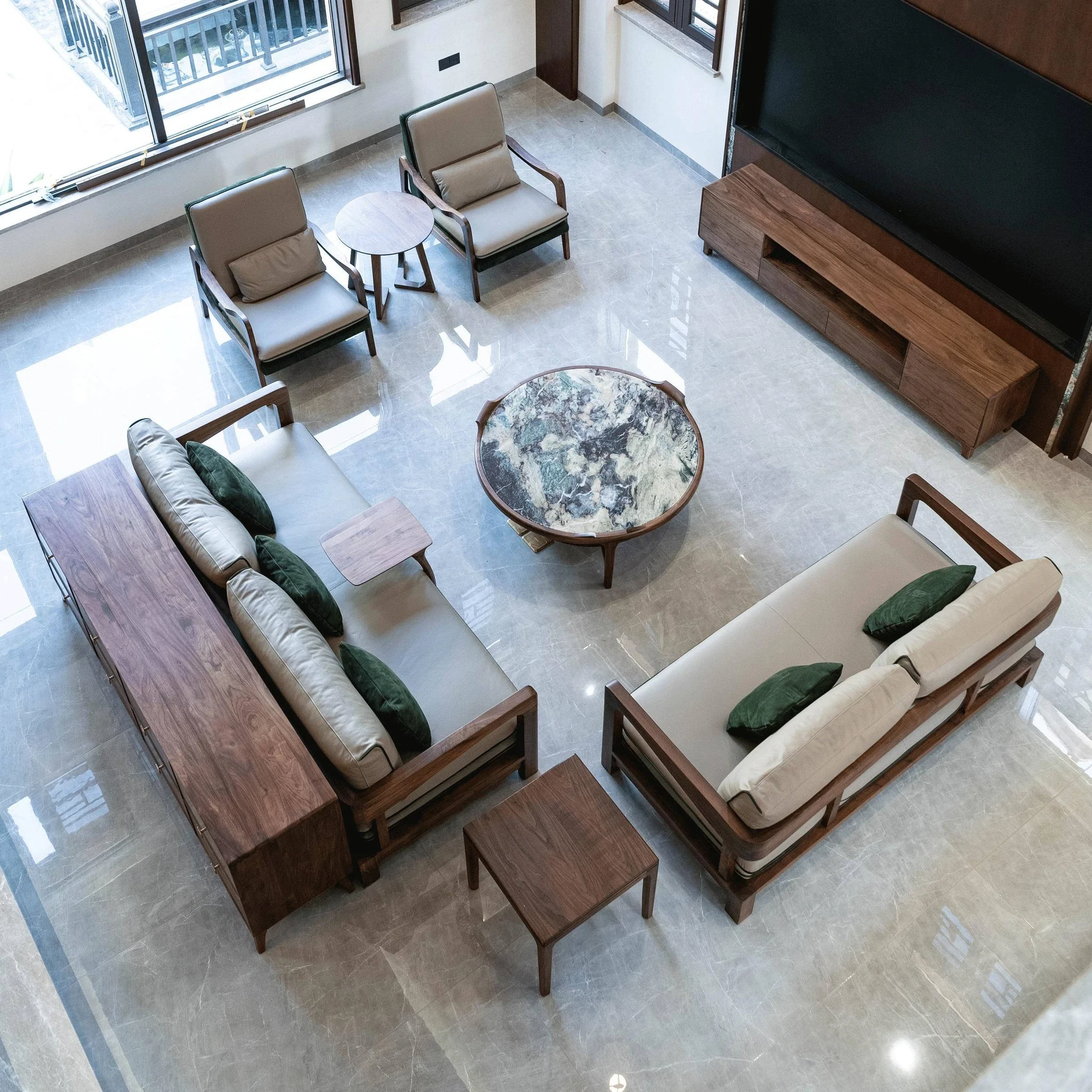 新中式スタイルの北米ブラックウォールナット無垢材ソファセット - モダンでラグジュアリーなリビングルームにぴったりなシンプルかつ広々とした無垢家具!