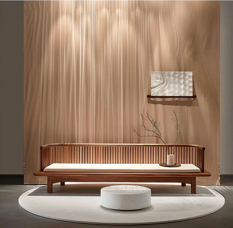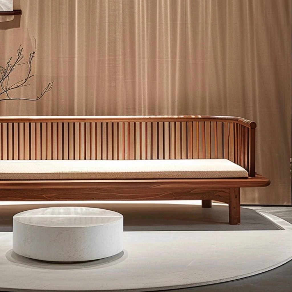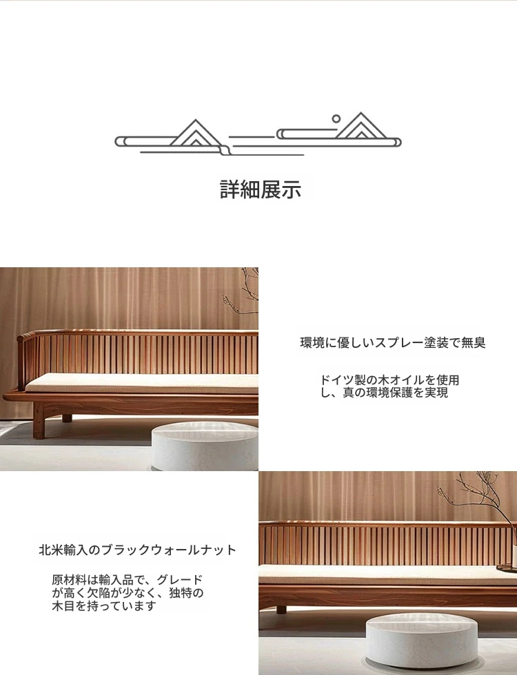 北米産ブラックウォールナット使用の新中式禅スタイル高級カウチ、モダンミニマリズムにぴったりな軽やかさを兼ね備えた贅沢なデザイン!リビングや寝室に最適な上質な貴妃椅子。
