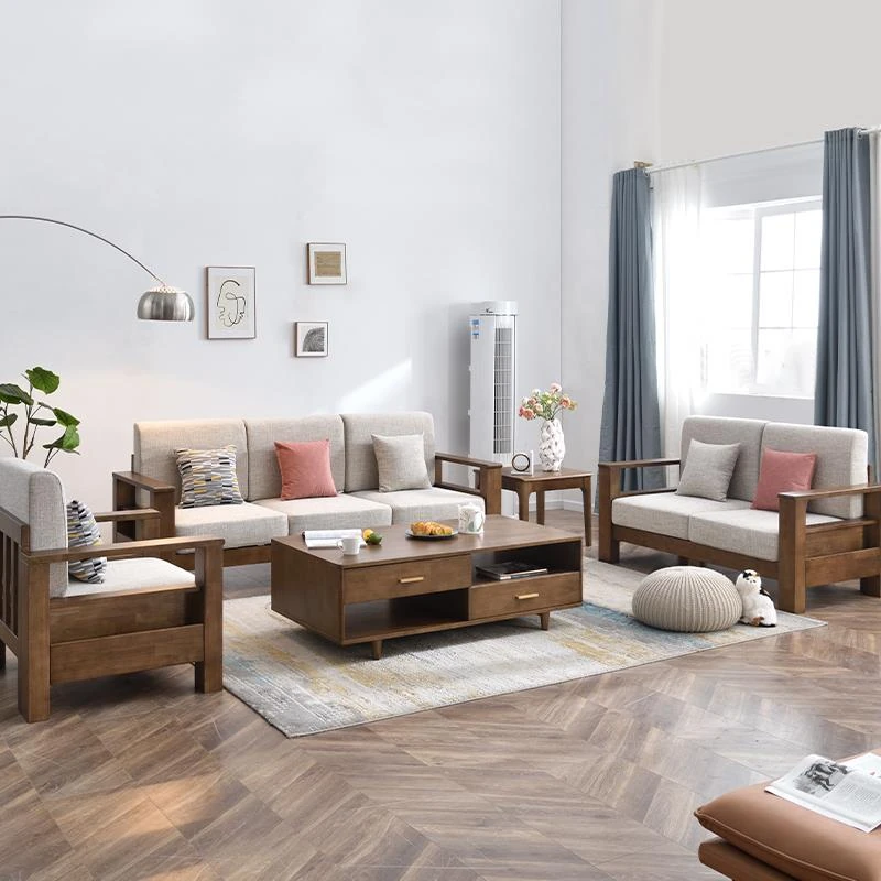 全実木製ソファ 新中式スタイル 小型モダンシンプル リビングコーナー用 貴妃スタイル 北欧風 3人掛けファブリックソファ - おしゃれで機能的、狭いスペースにもぴったり!