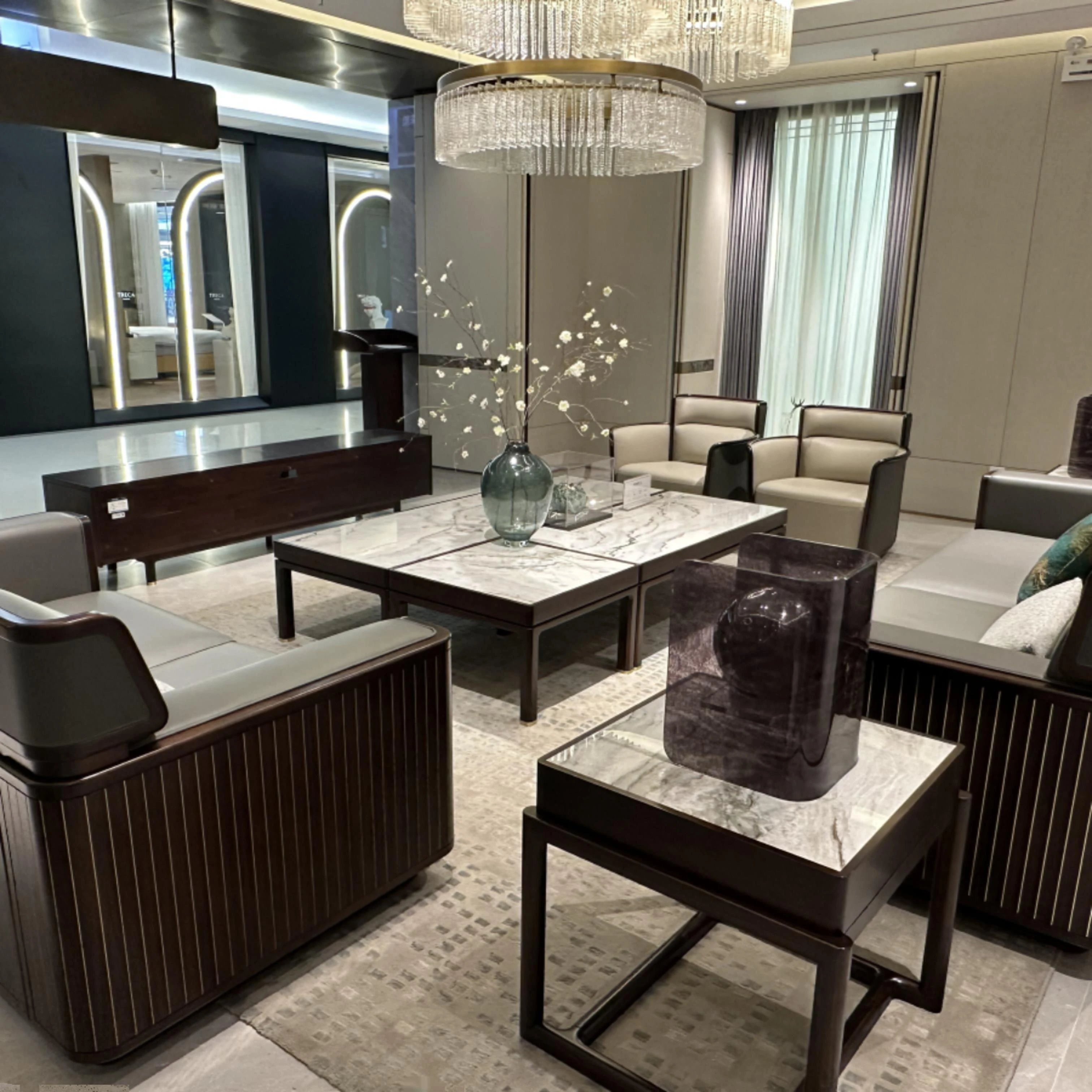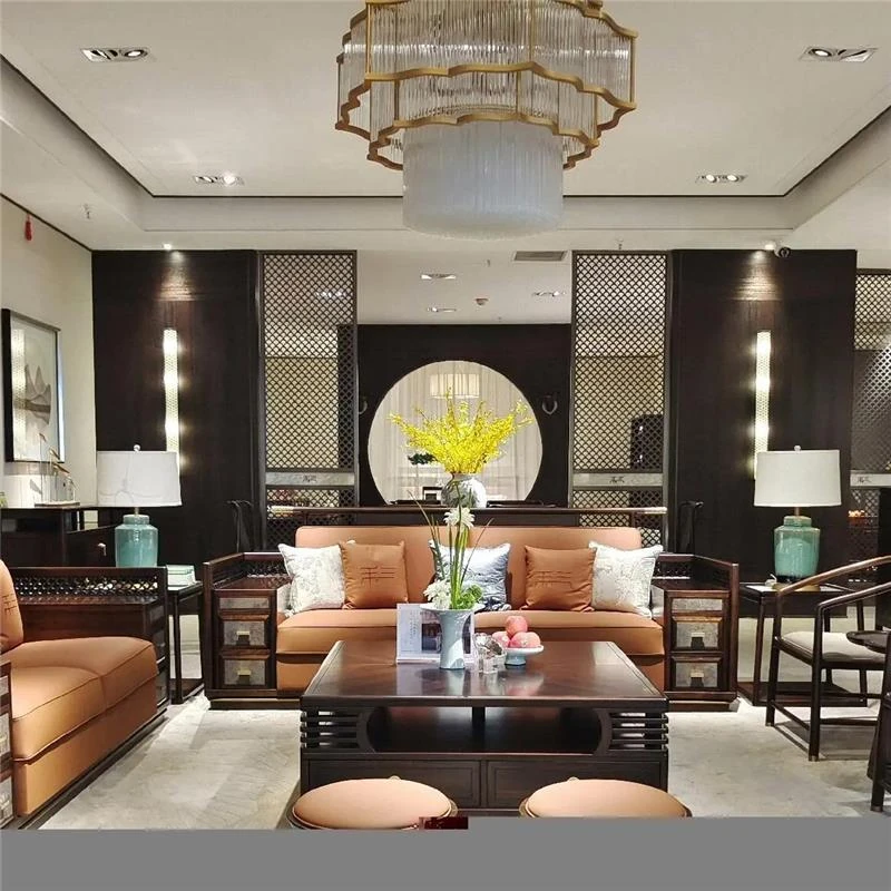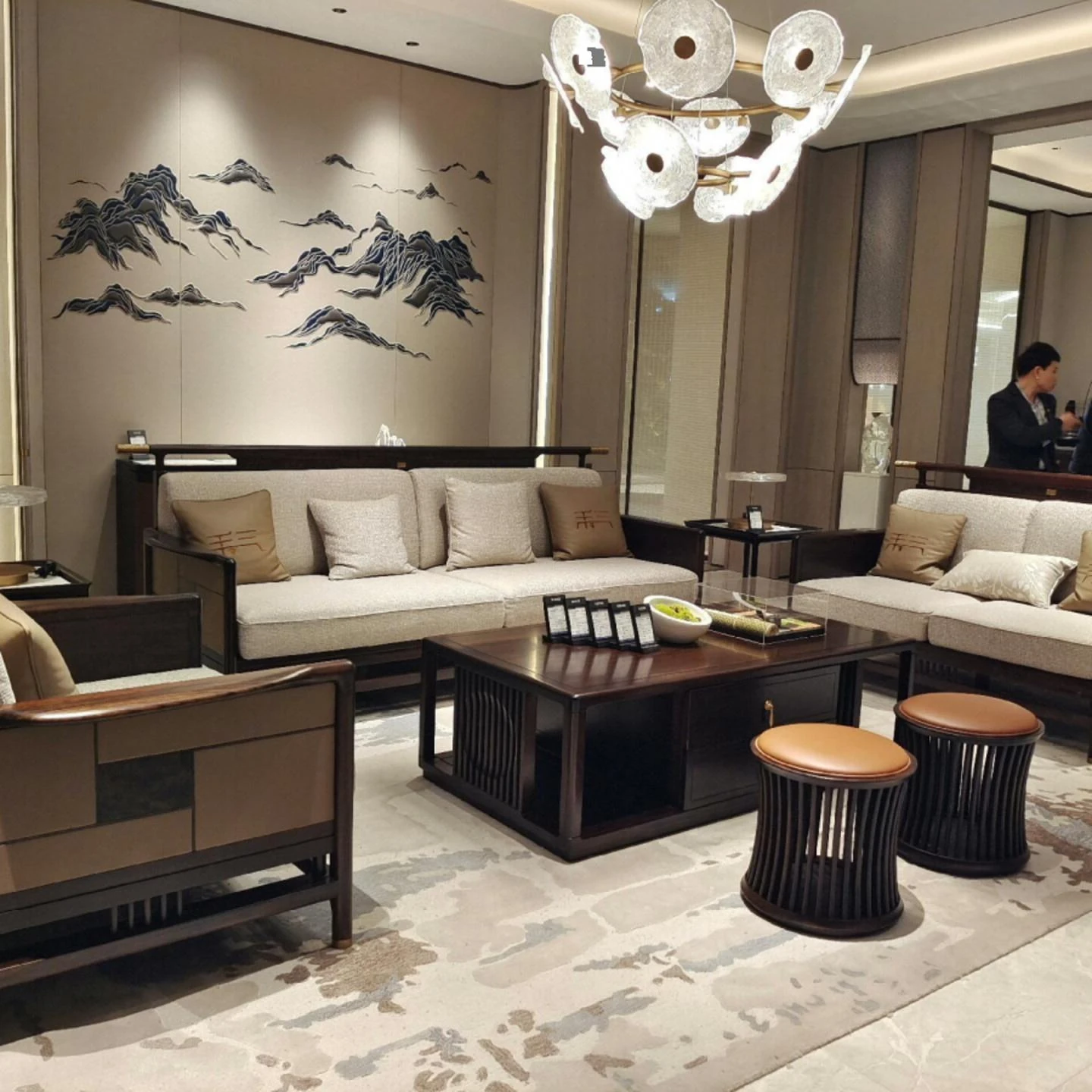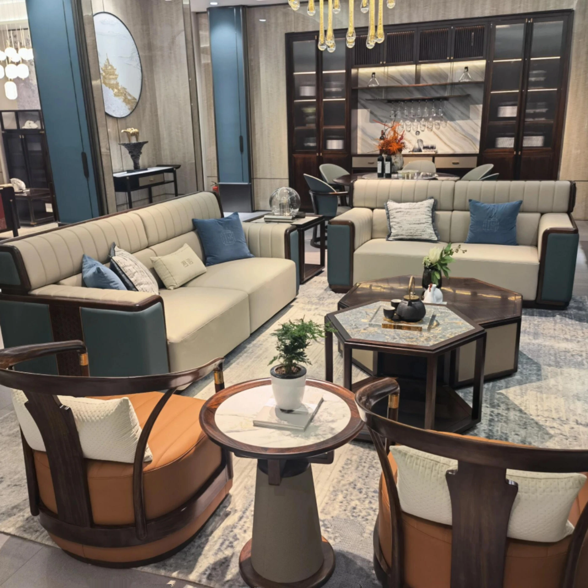 新中式ウッドソファセット - 高級感溢れるウルキン材使用!モダンでシンプルなデザイン、広々としたリビングにぴったりな豪華別荘スタイル。お客様の大切な空間を贅沢に演出します!