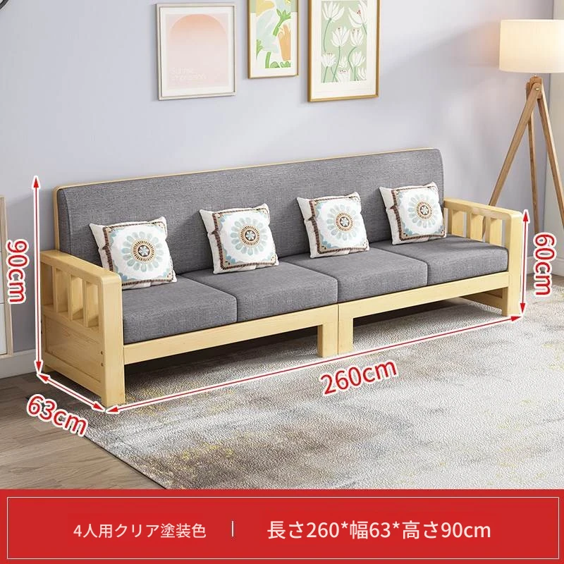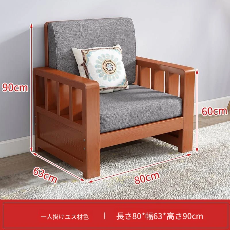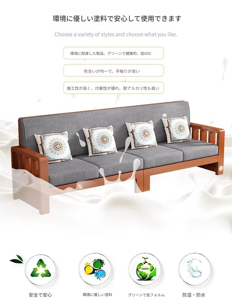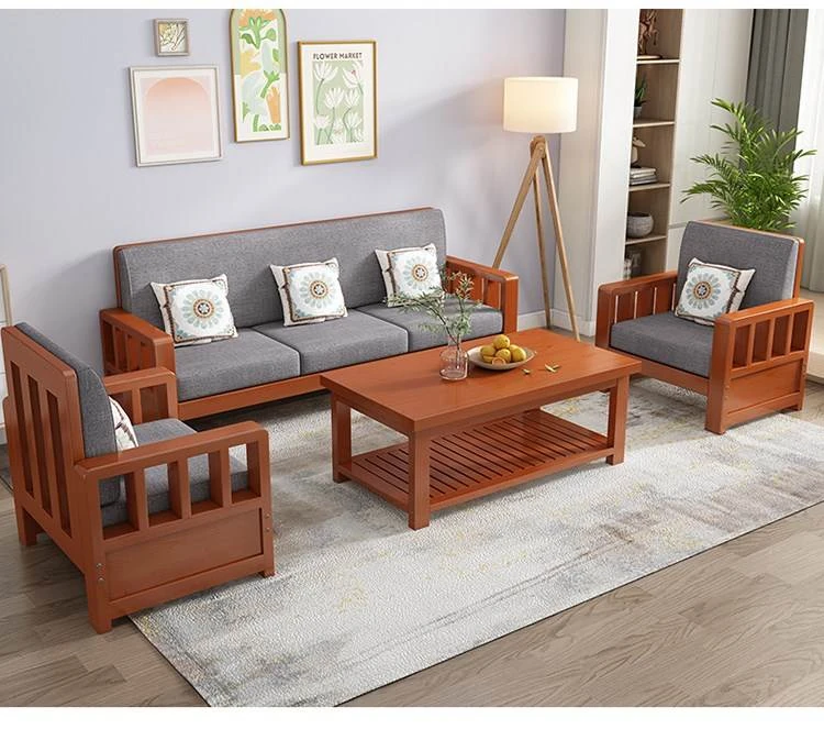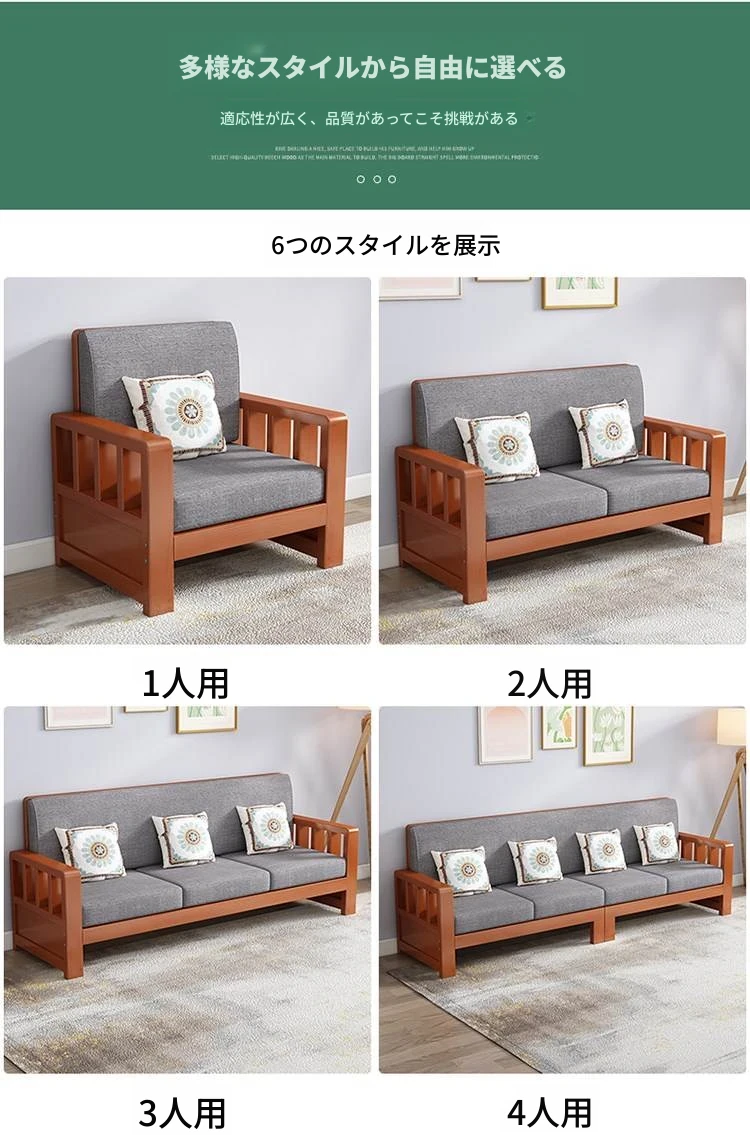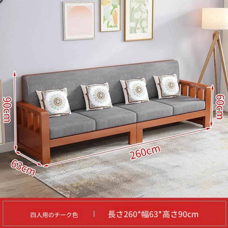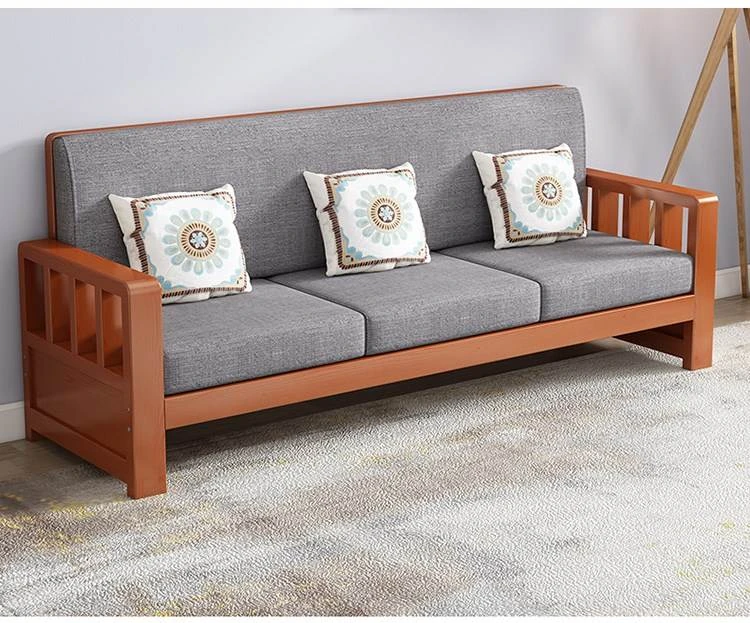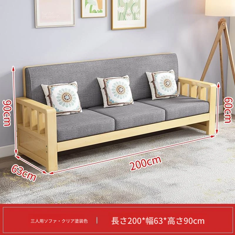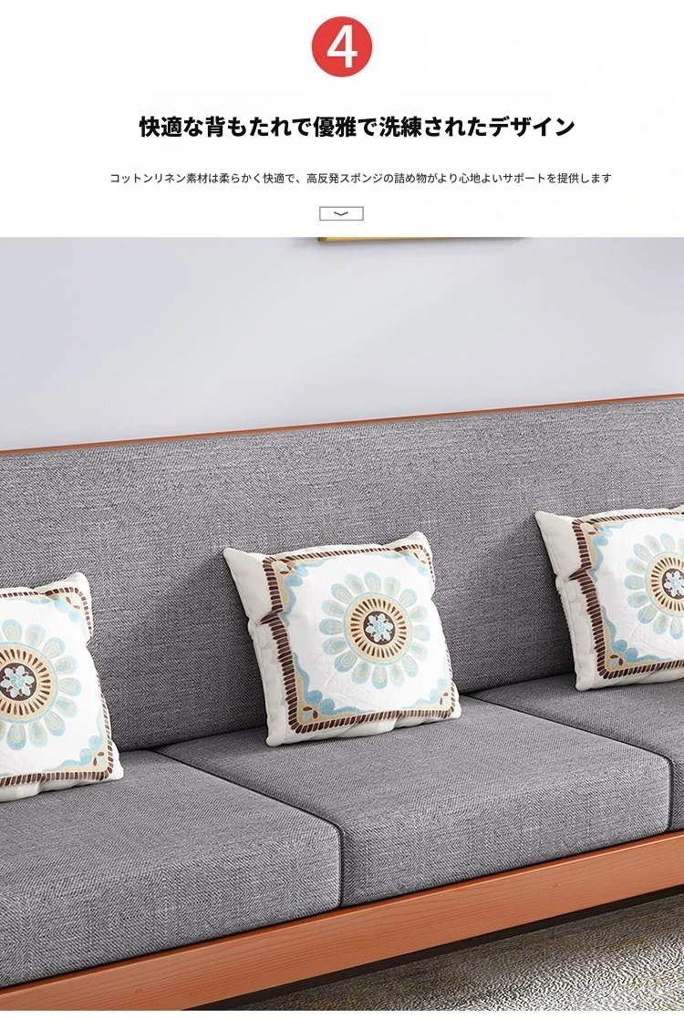 現代的なシンプルデザインの無垢材ソファセット - 布製の三人掛け、小型住居に最適な新中式スタイルのソファベッド。おしゃれで快適なリビング空間を演出します!