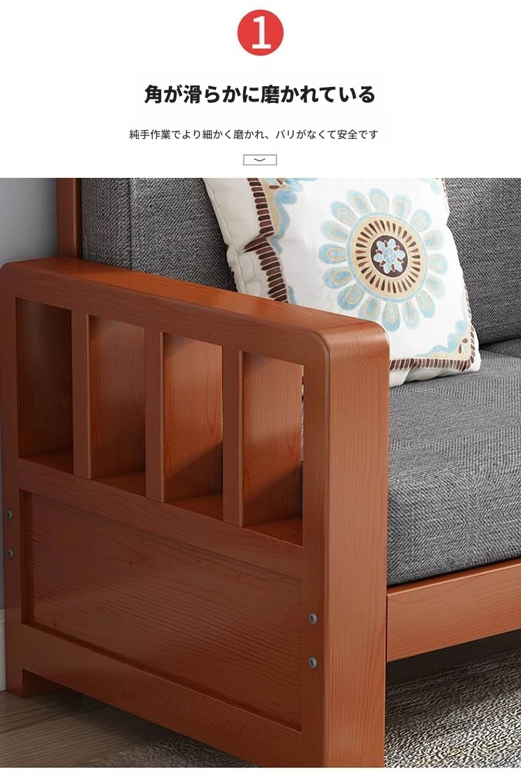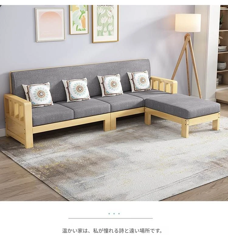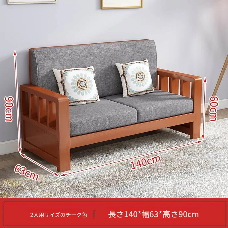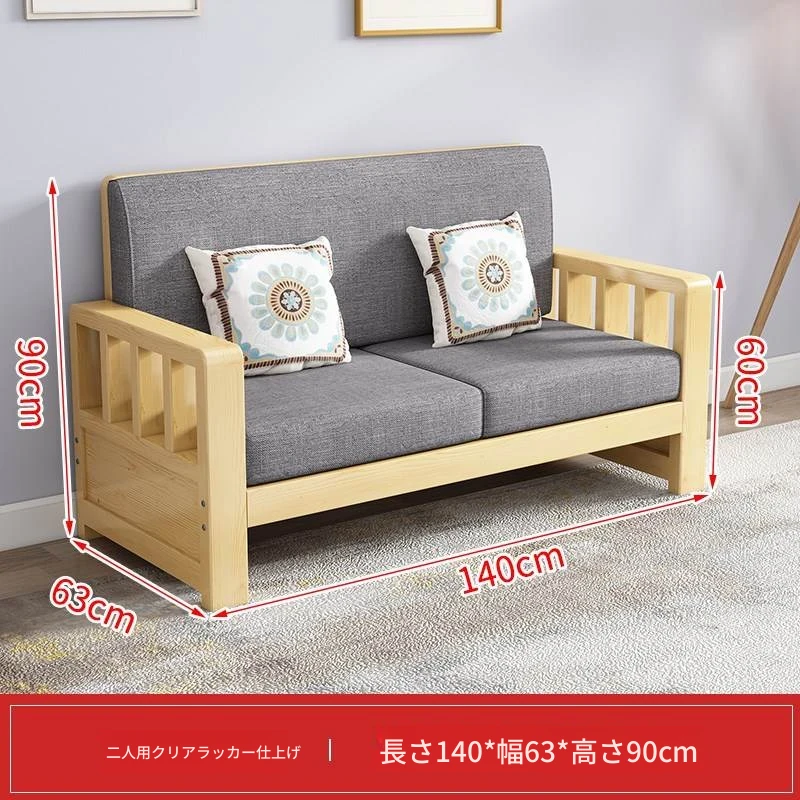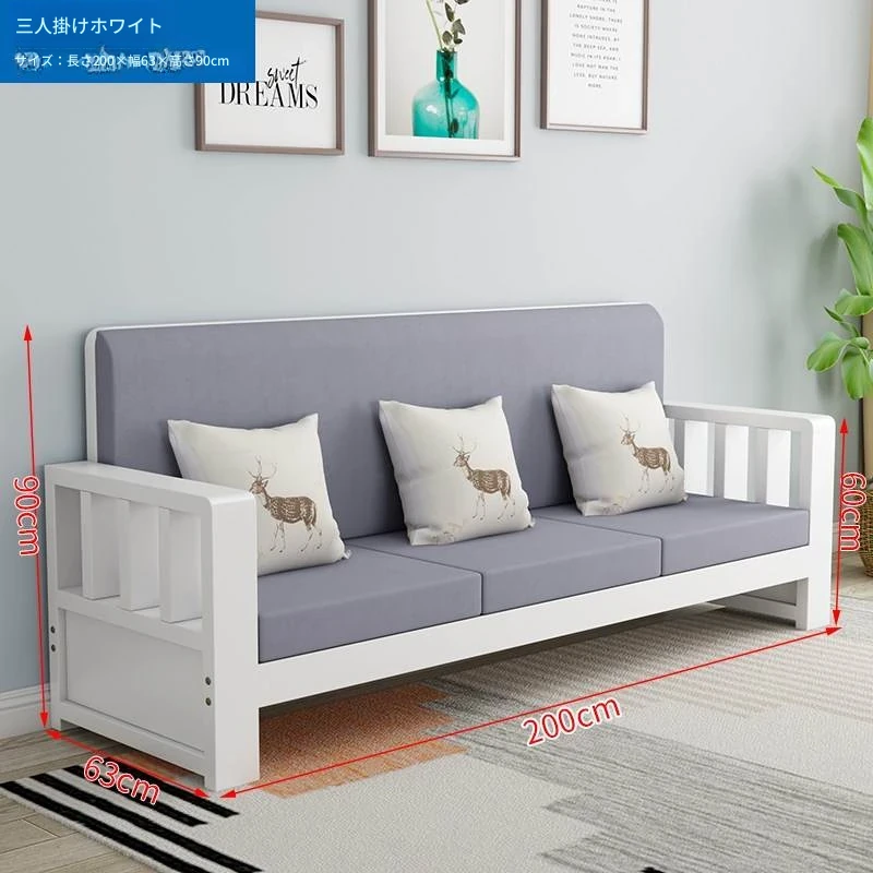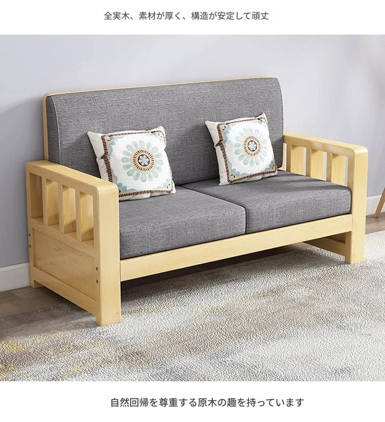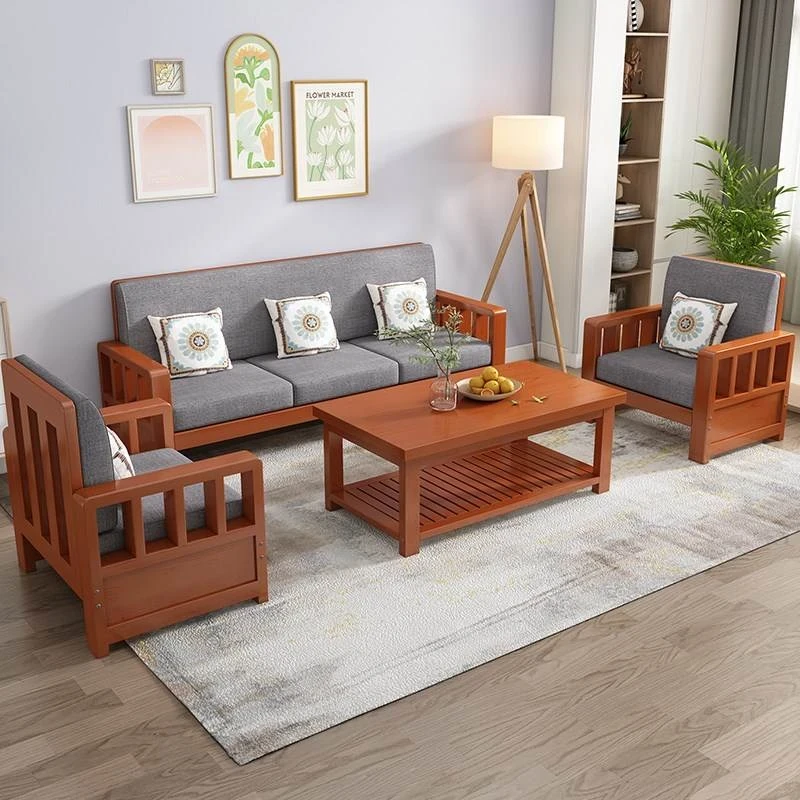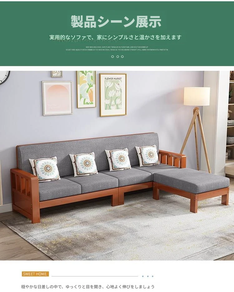 現代的なシンプルデザインの無垢材ソファセット - 布製の三人掛け、小型住居に最適な新中式スタイルのソファベッド。おしゃれで快適なリビング空間を演出します!