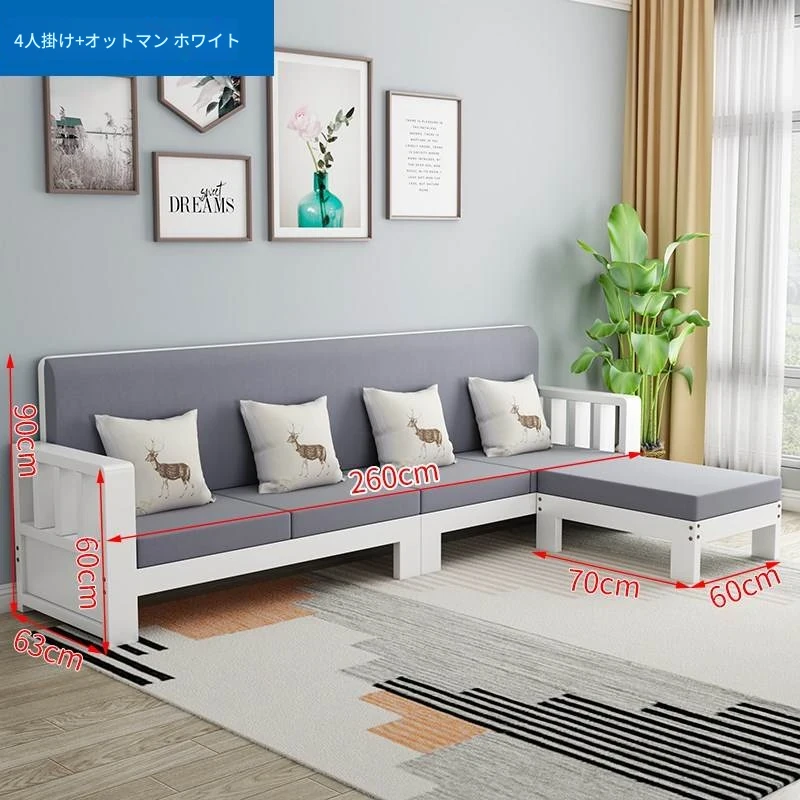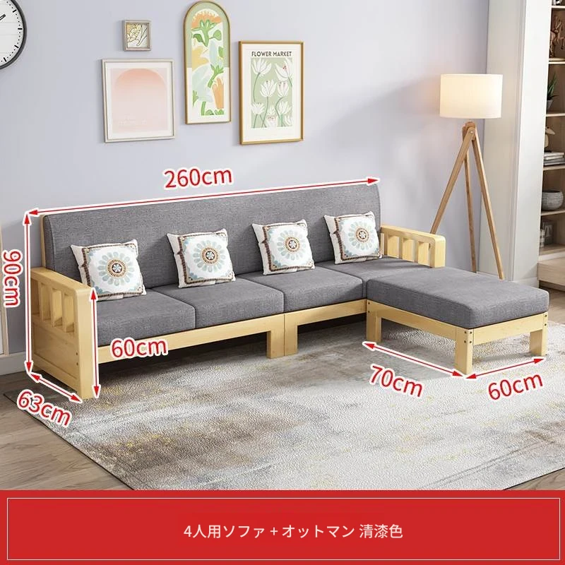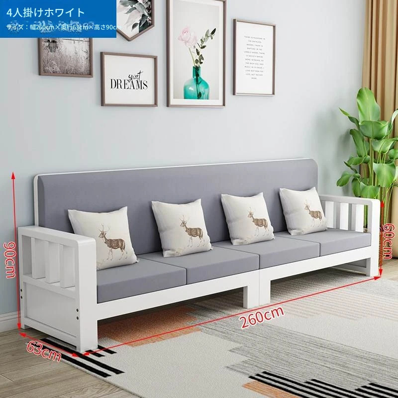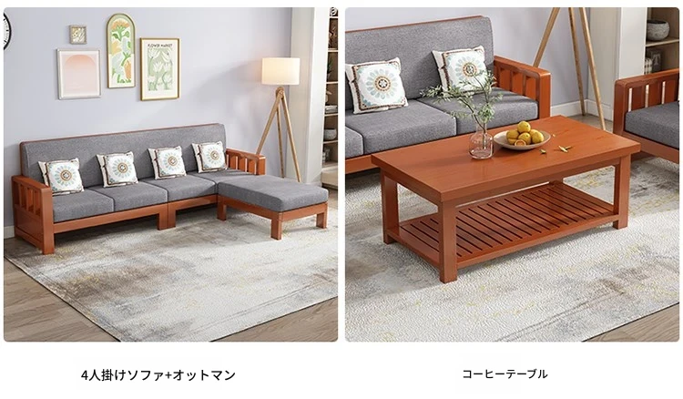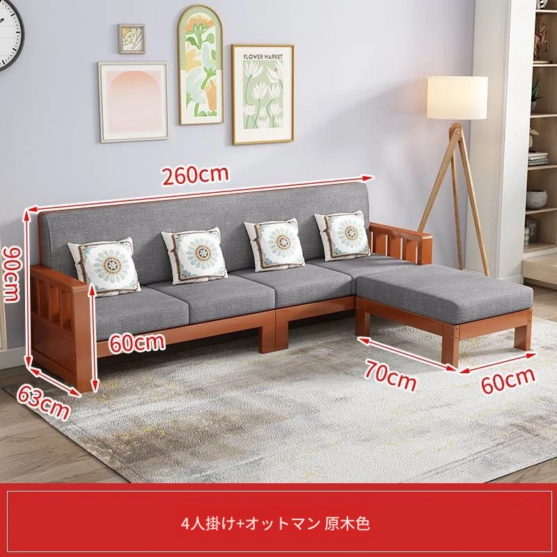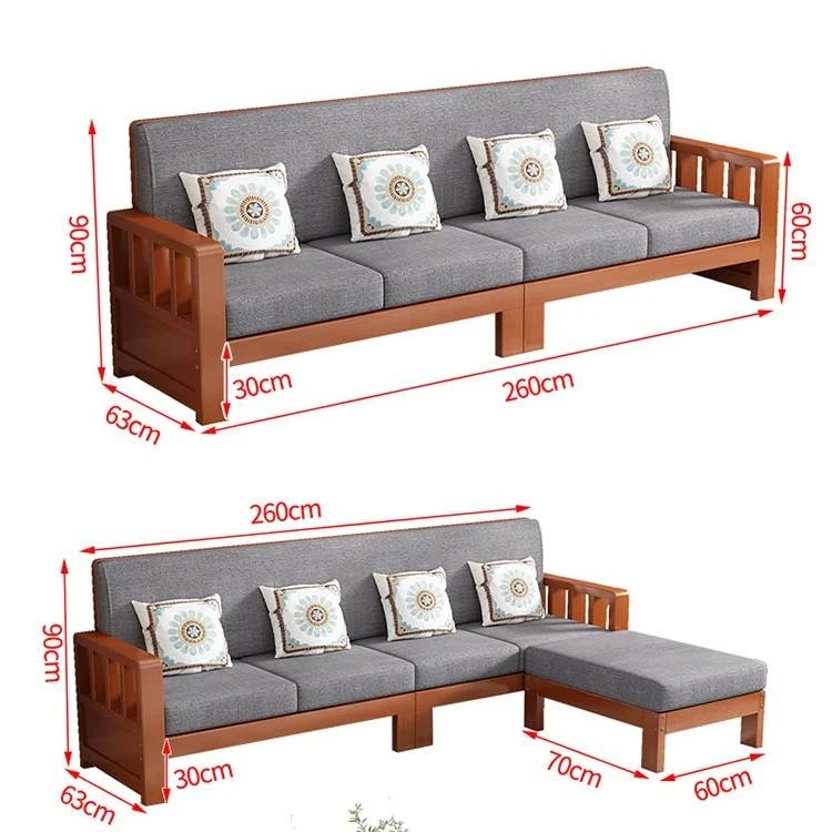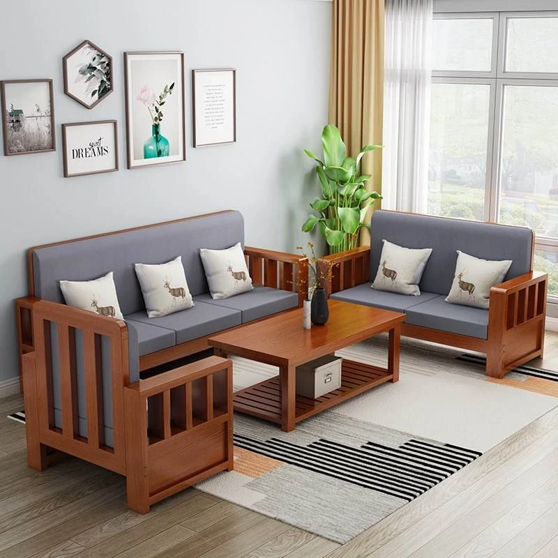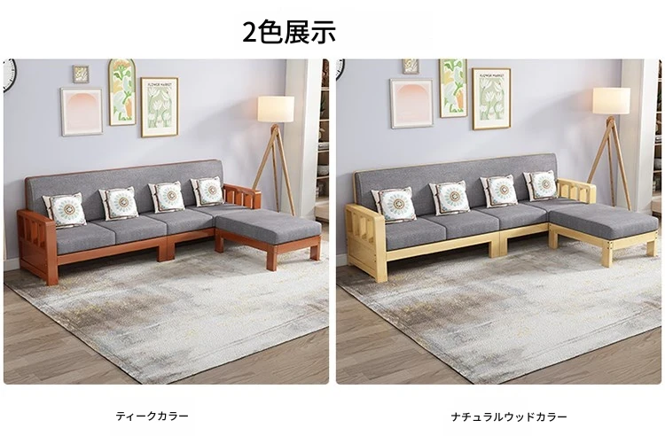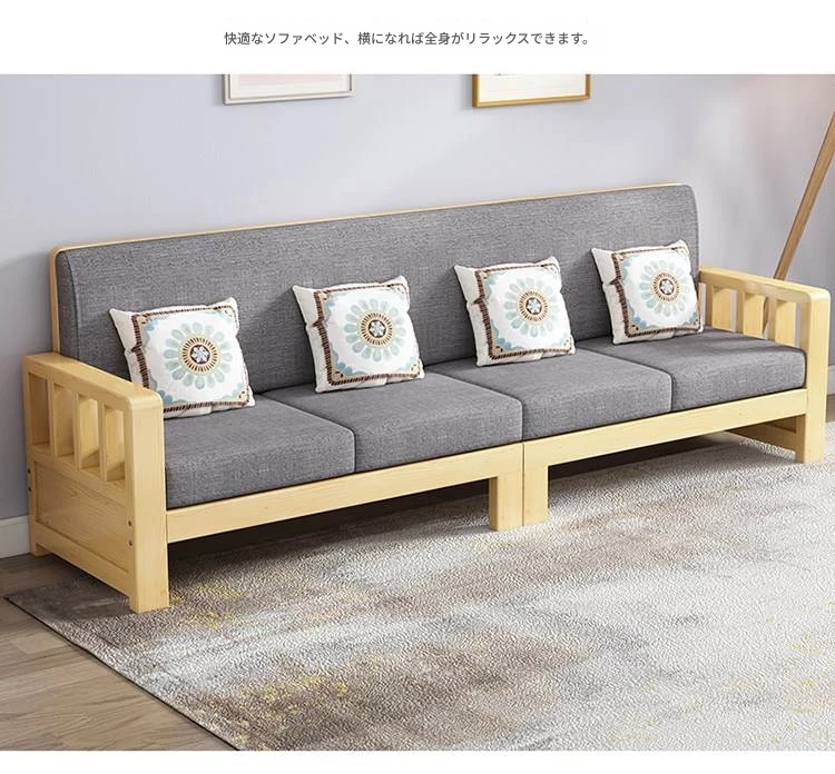 現代的なシンプルデザインの無垢材ソファセット - 布製の三人掛け、小型住居に最適な新中式スタイルのソファベッド。おしゃれで快適なリビング空間を演出します!